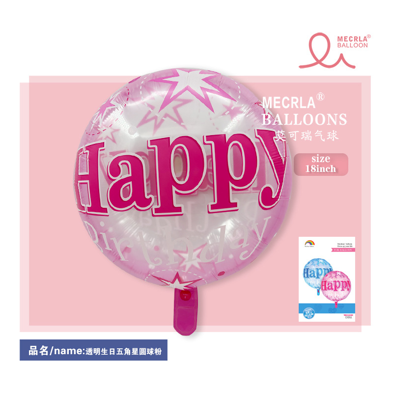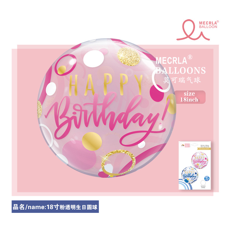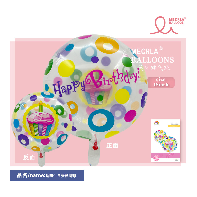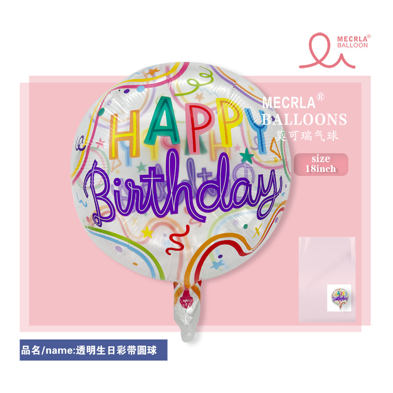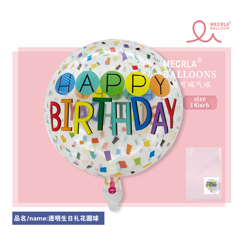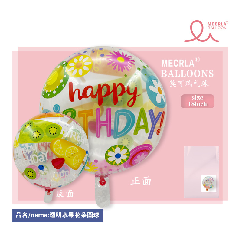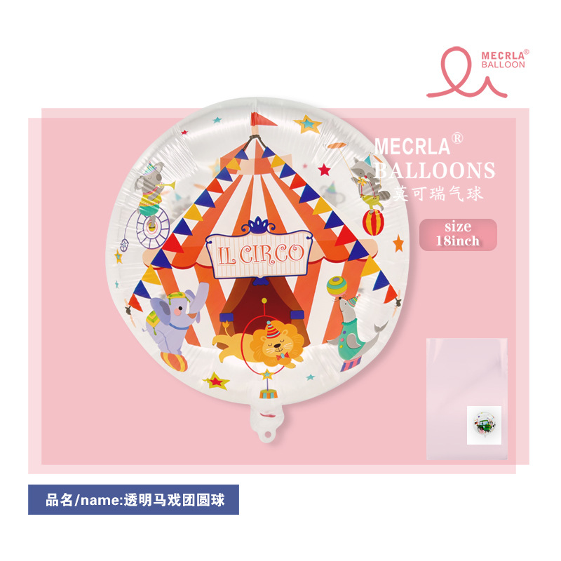 18寸透明英语西语生日快乐蛋糕美人鱼马戏团熊猫恐龙派对装饰圆球