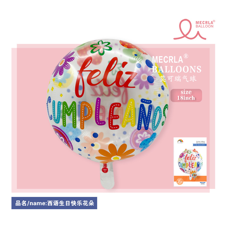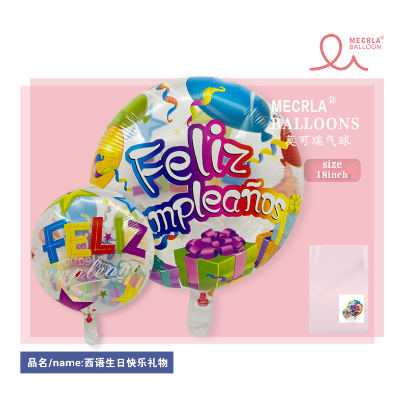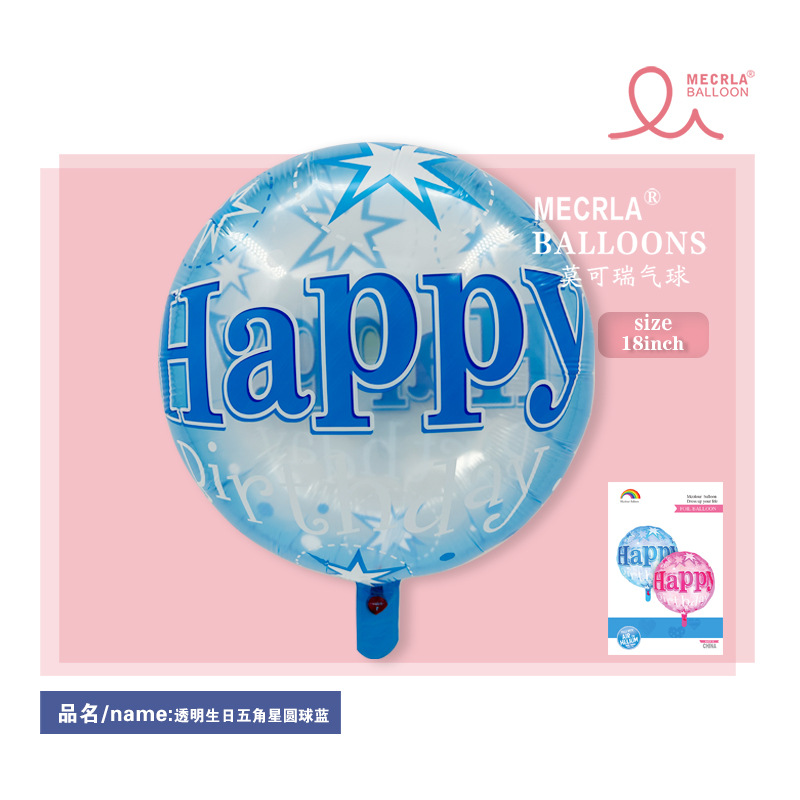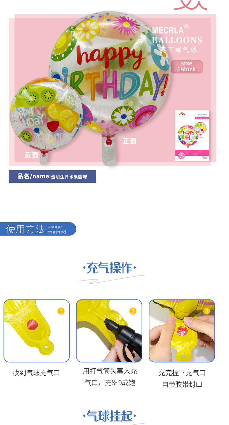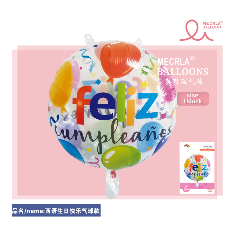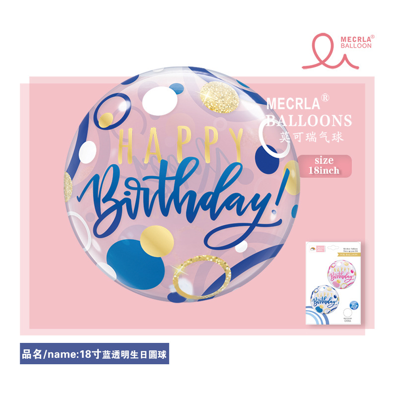 18寸透明英语西语生日快乐蛋糕美人鱼马戏团熊猫恐龙派对装饰圆球