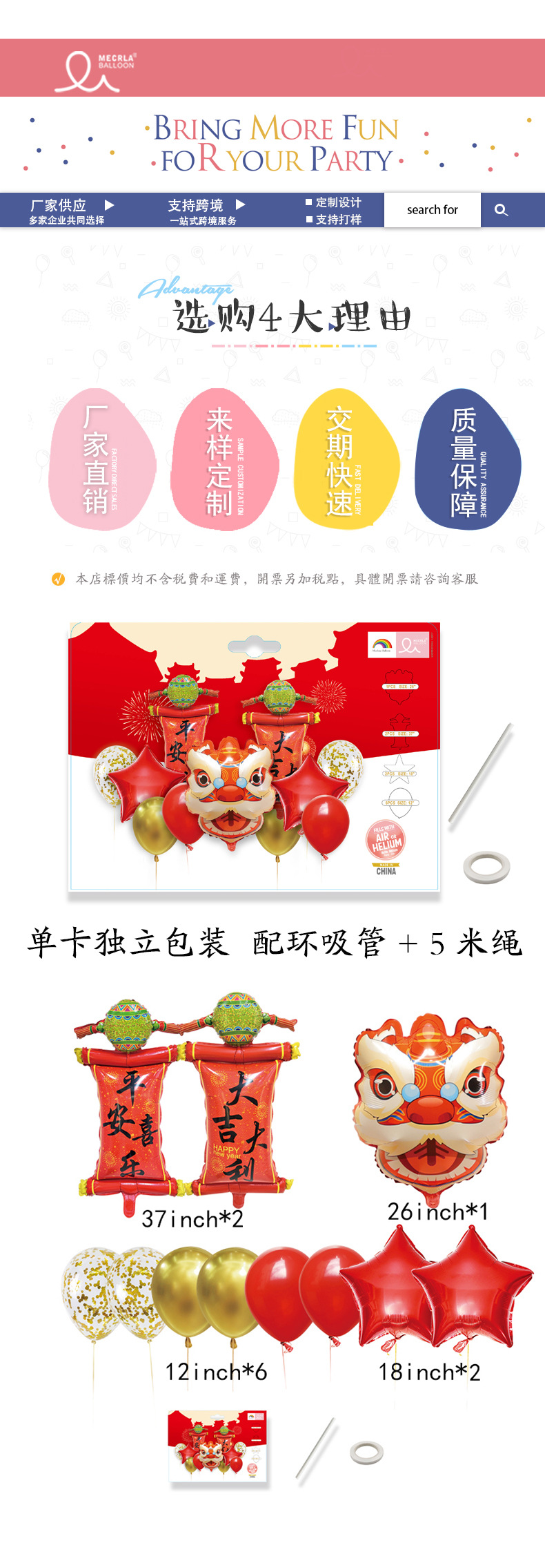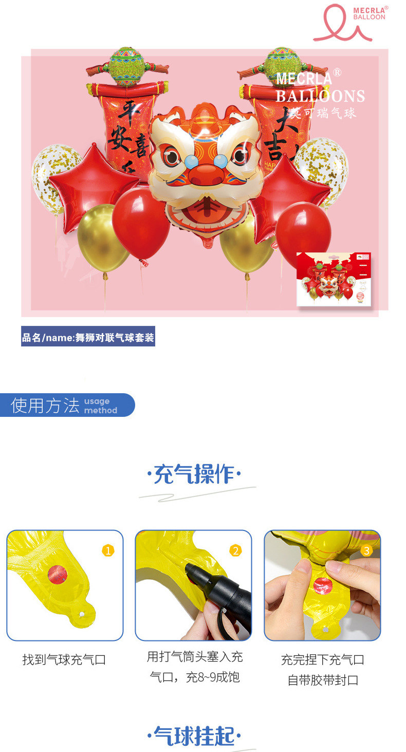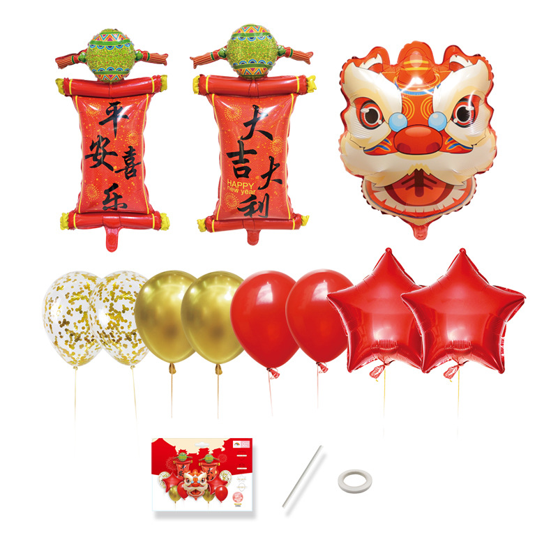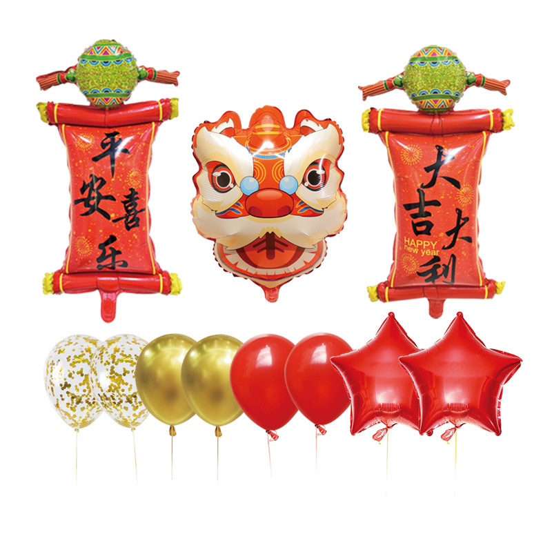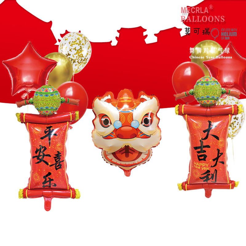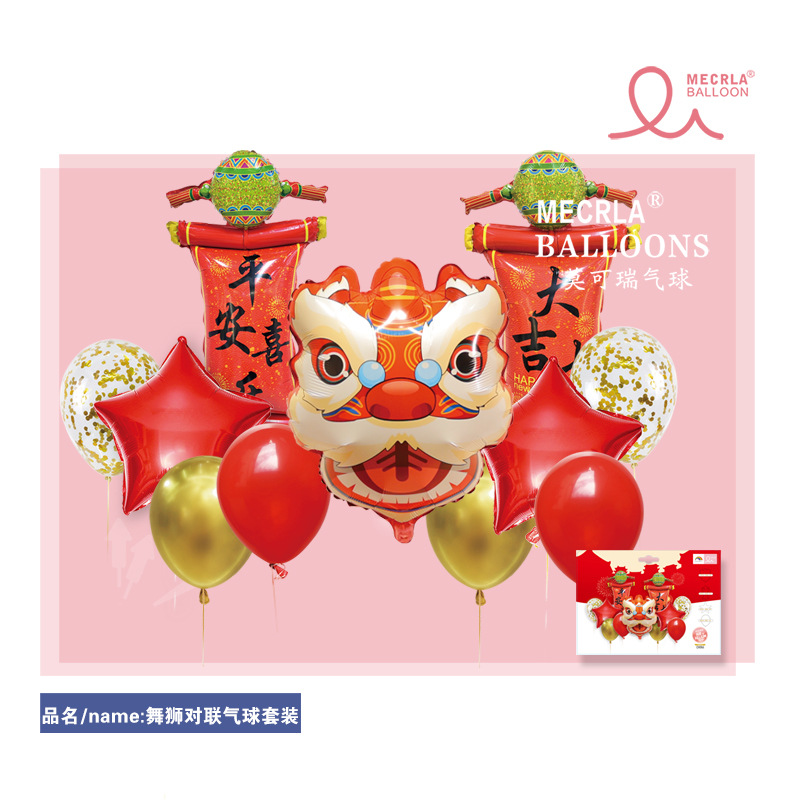 2024新年春节新春醒狮国潮舞狮采青对联开业装饰派对布置铝膜气球