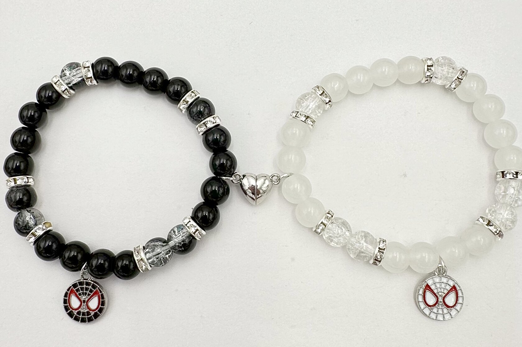 跨境热销万圣节蜘蛛爱心磁性相吸手链 串珠弹力可调情侣节日手链
