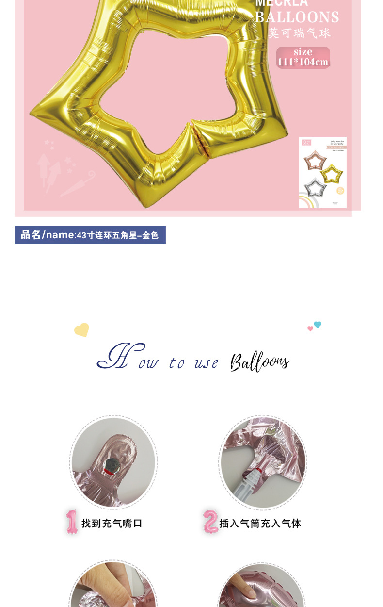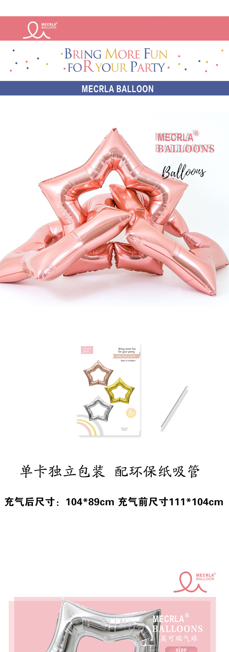 43寸创意大镂空五角星生日商场活动生日新年橱窗场景布置铝膜气球