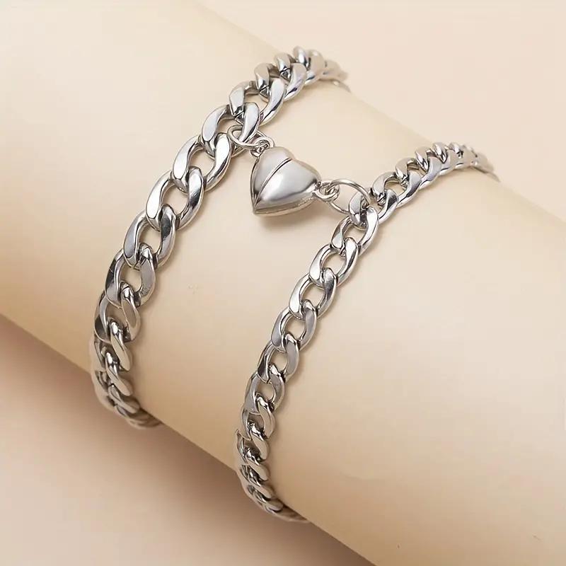 欧美爆款冷淡风爱心手链个性磁铁相吸手链做旧一对吸铁石情侣手饰