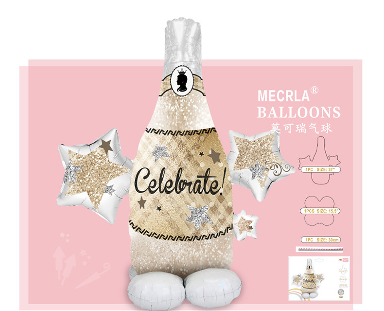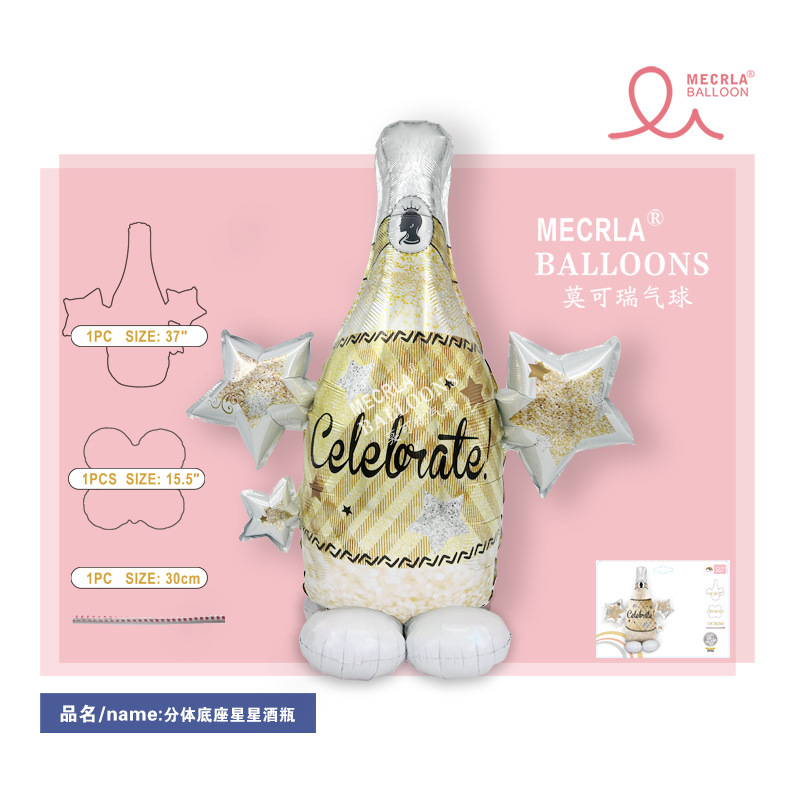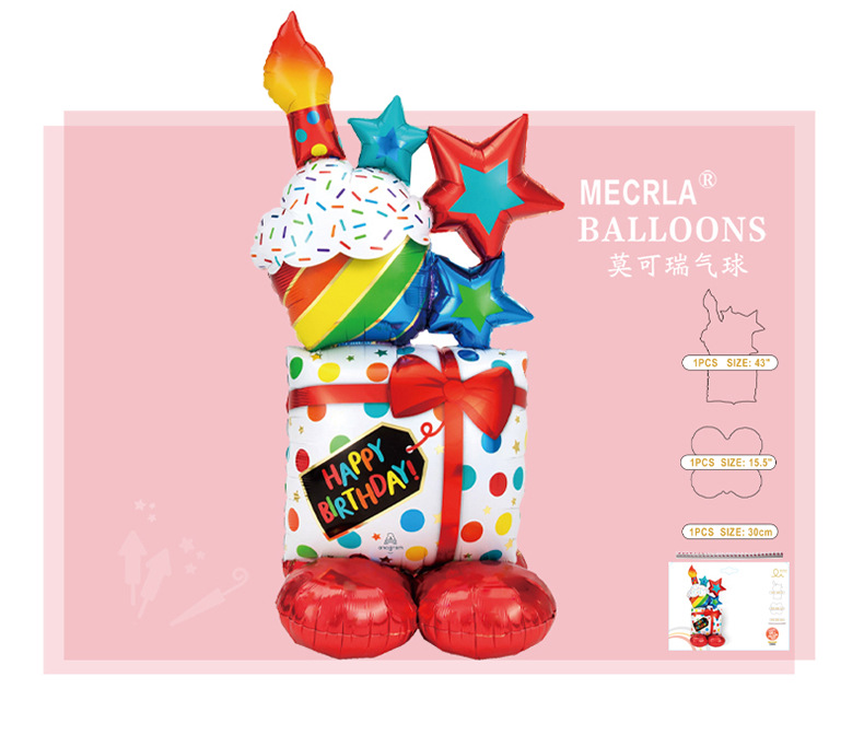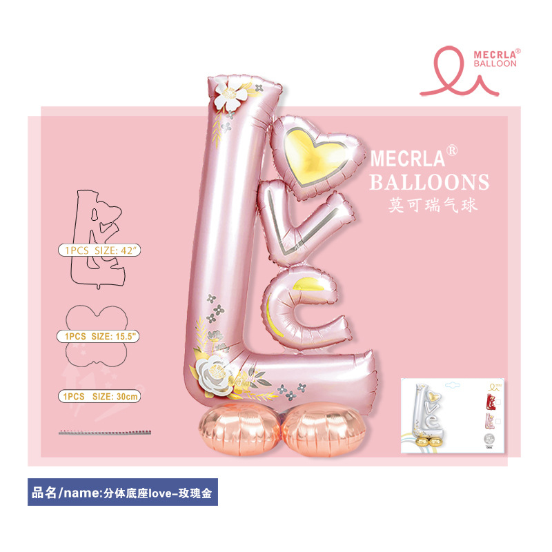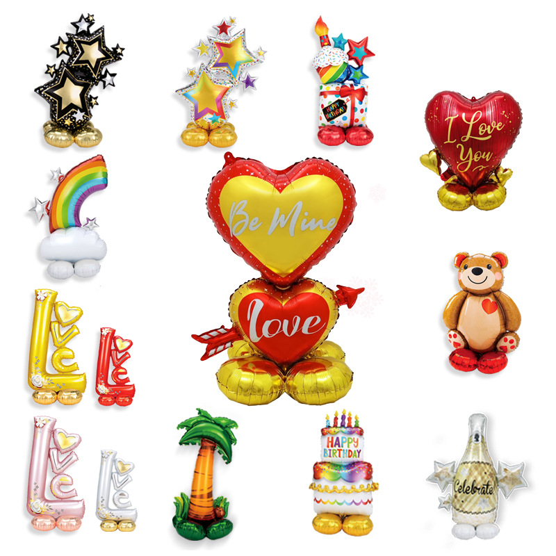 站立底座情人节爱心熊love五角星星生日蛋糕椰子树酒瓶彩虹气球