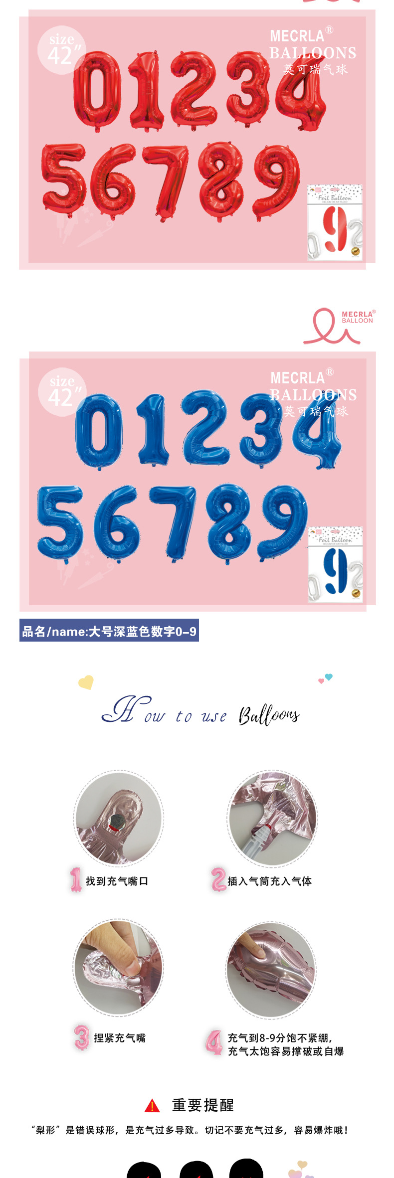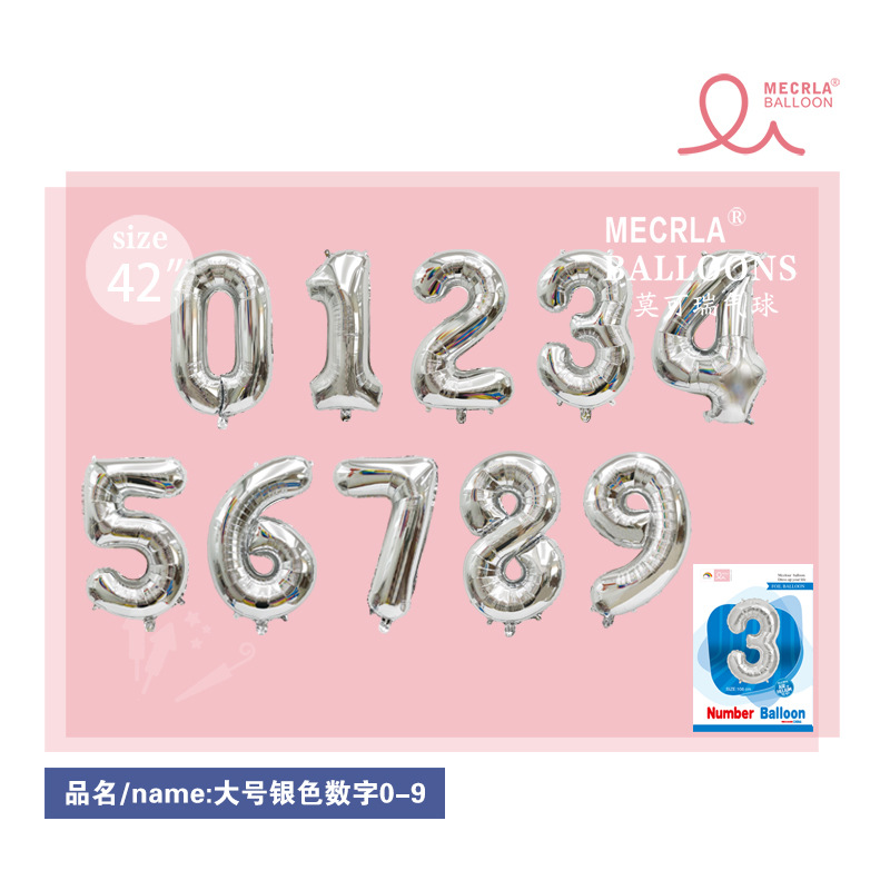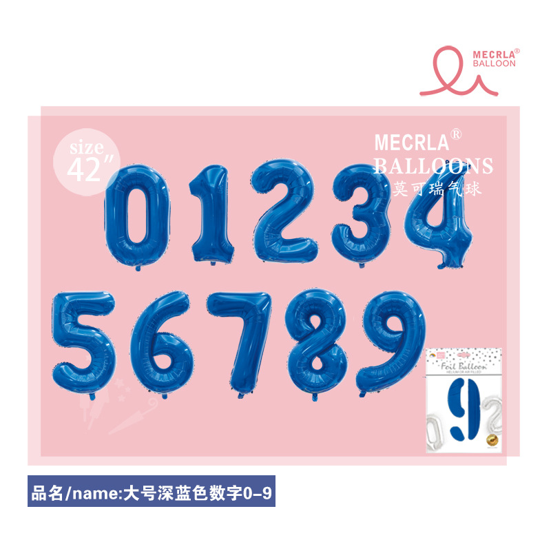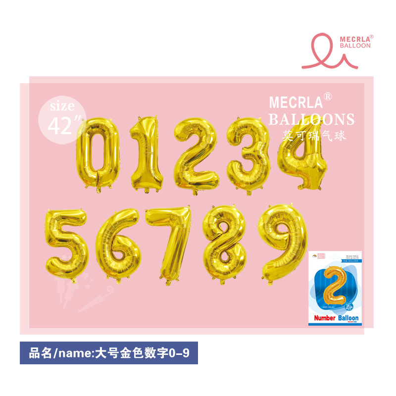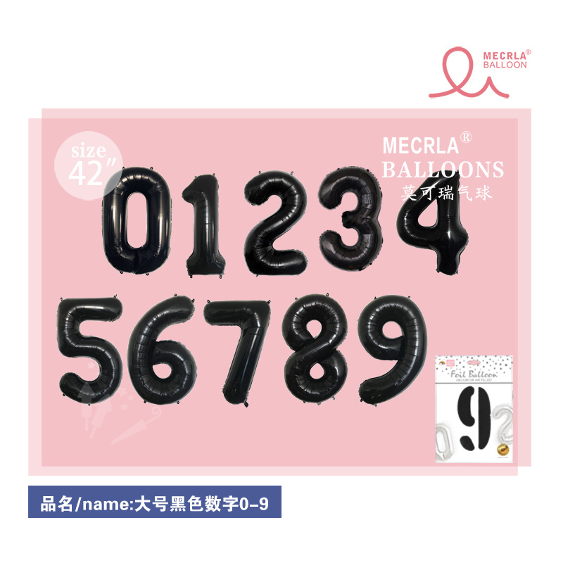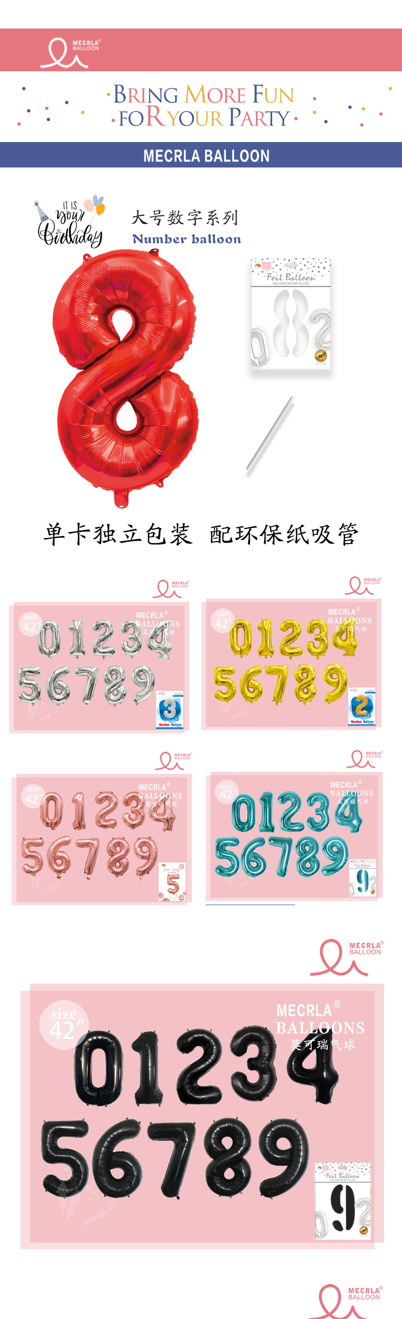 42寸大号美版数字0-9金银红黑蓝尼蓝紫生日派对装饰铝膜气球套装