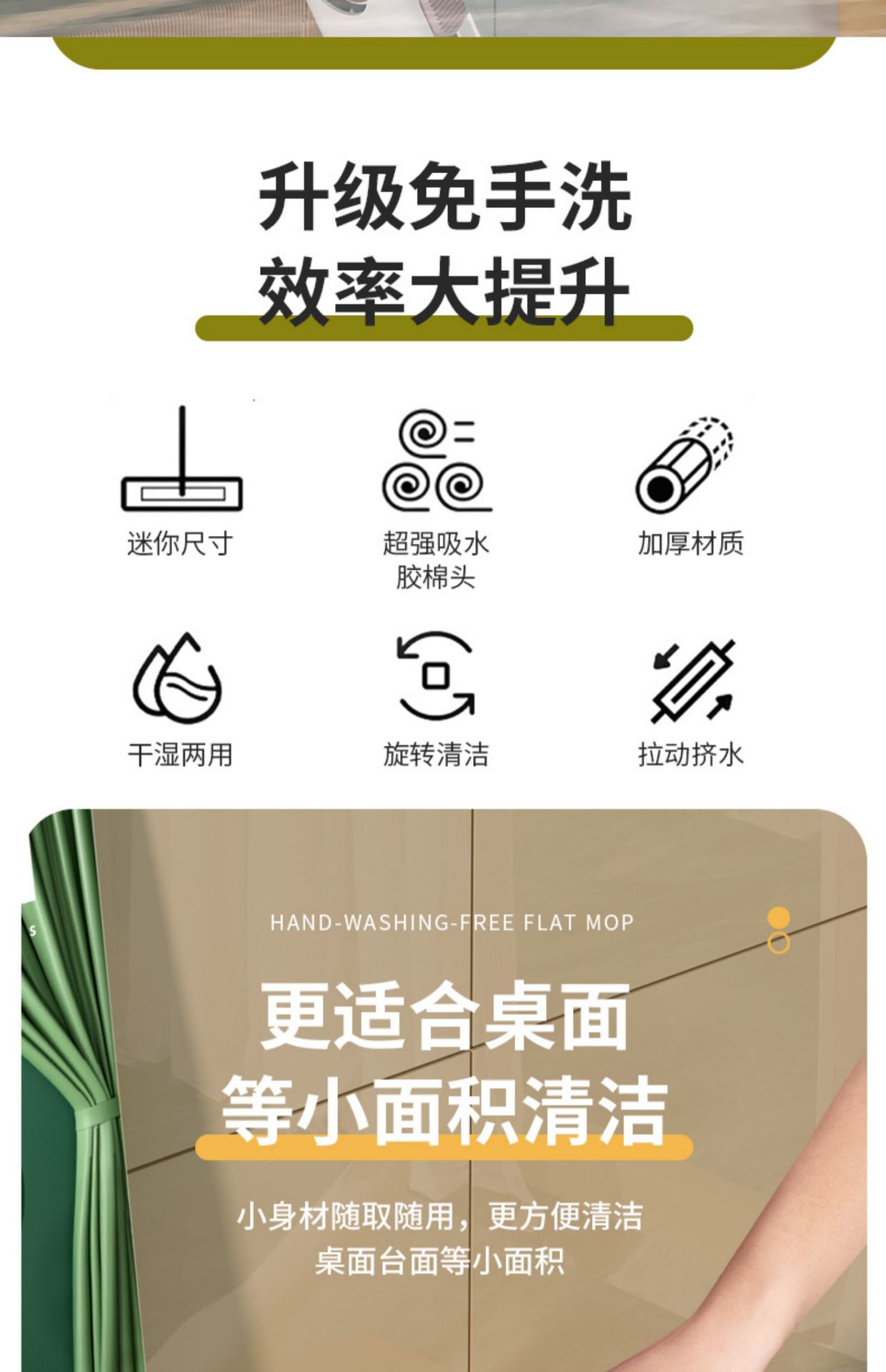 新款桌面迷你小拖把厨房海绵拖把便携免手洗车用拖把轻便胶棉拖把