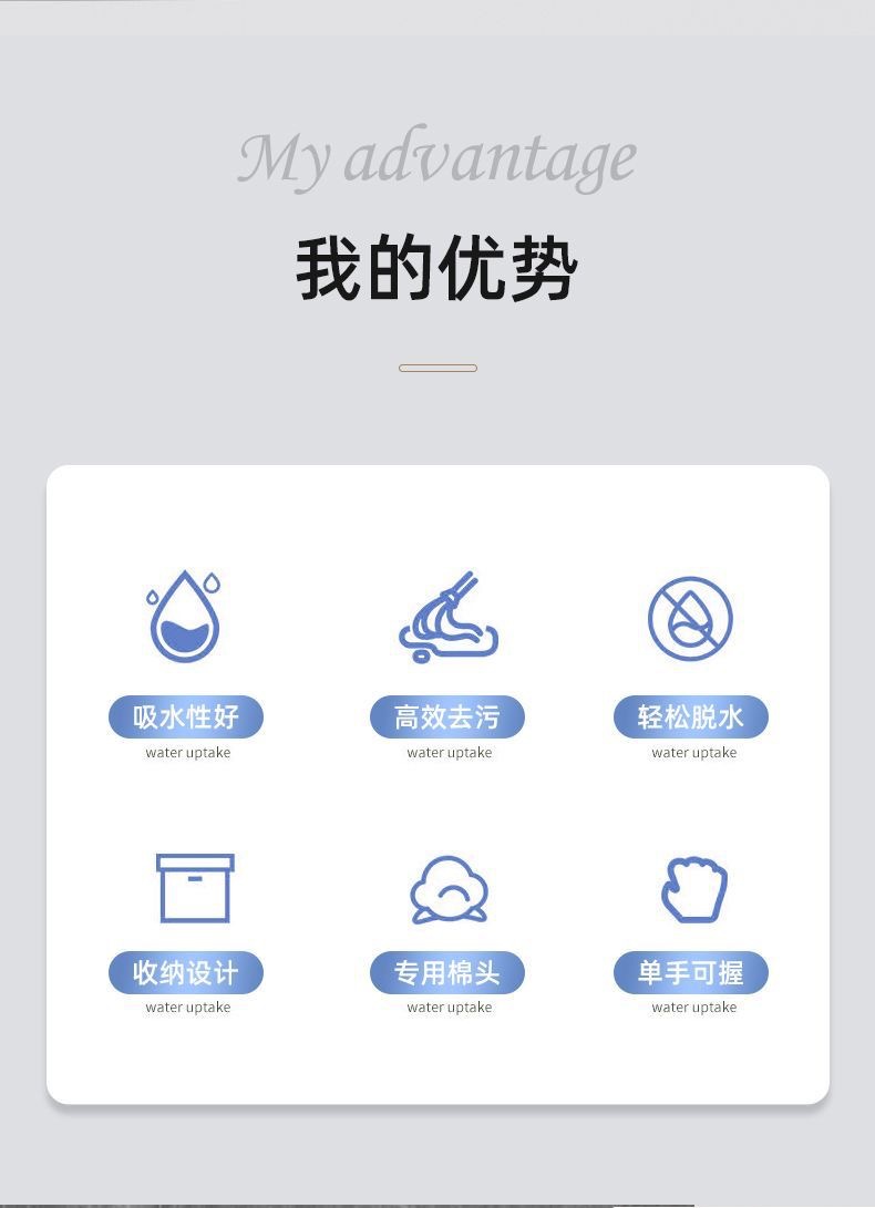| hand wash-free small mop +2 collodion cotton head in total(免手洗小拖把+共2个胶棉头) | USD $0.96 | 666596 piece available |
