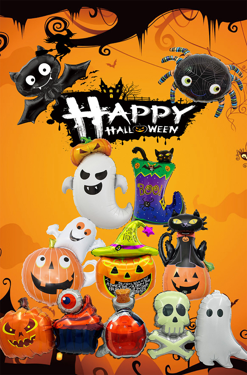 万圣节气球跨境热销幽灵南瓜蝙蝠蜘蛛南瓜猫靴子场景派对装饰气球
