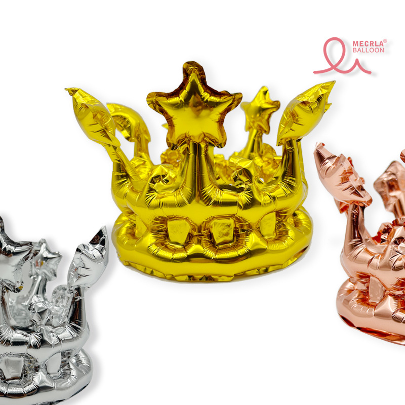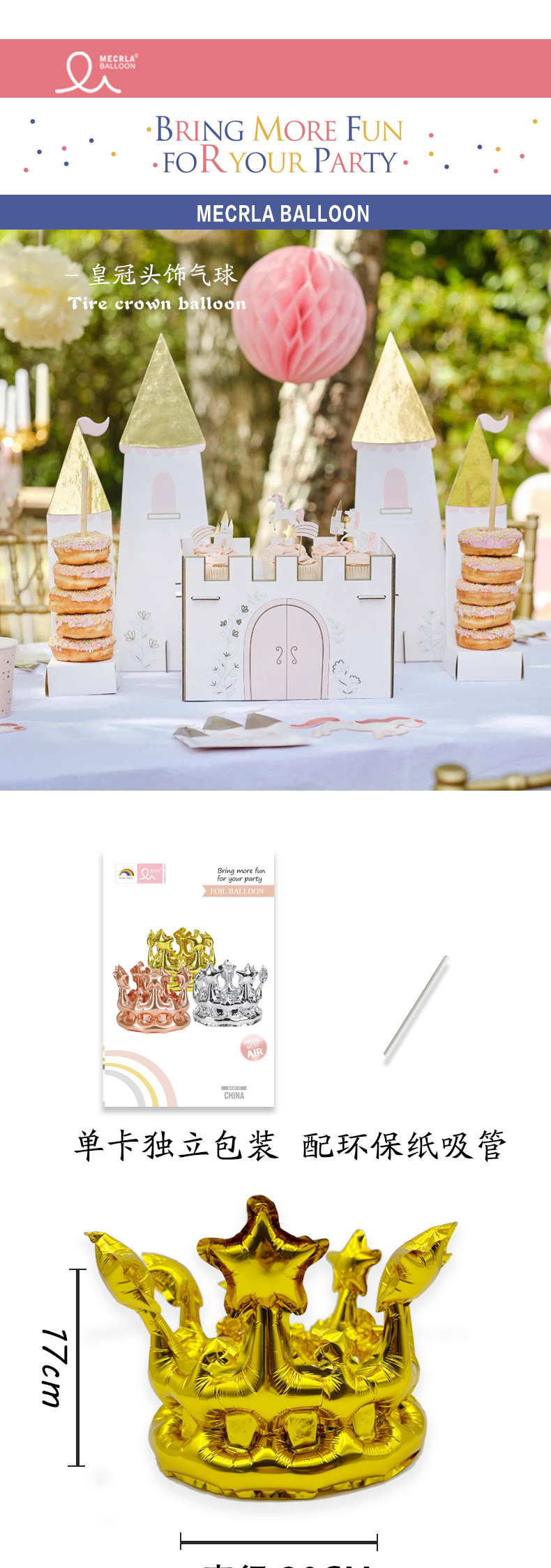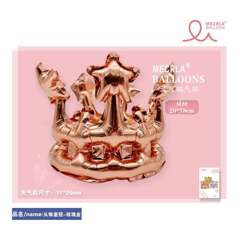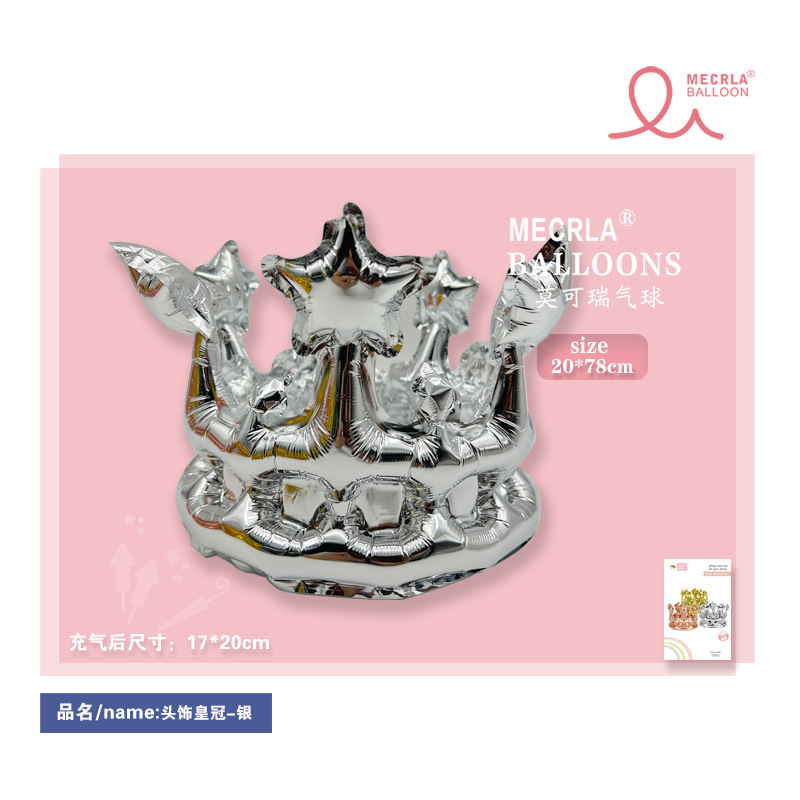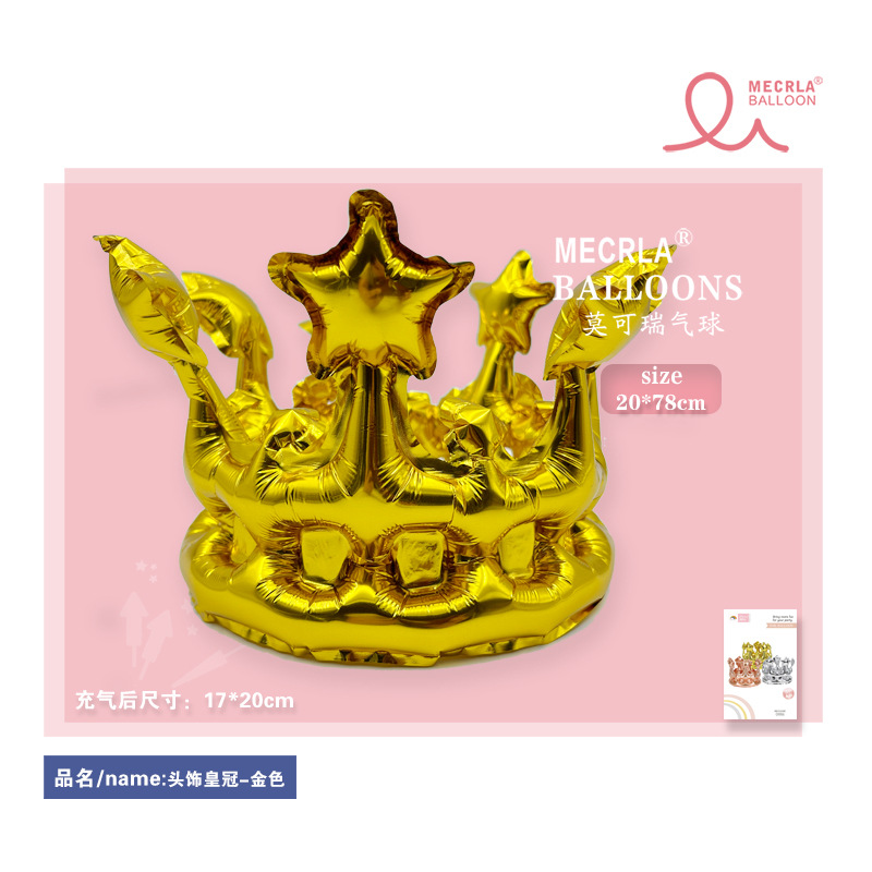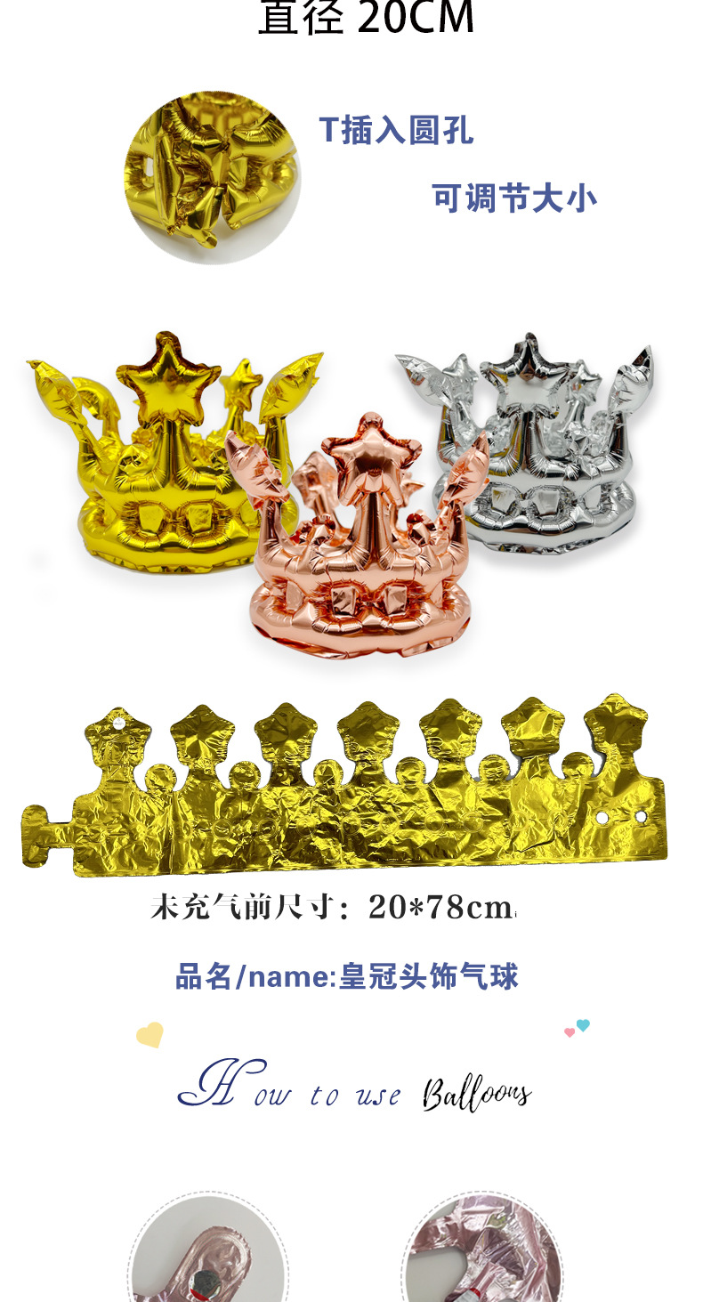 新镭射皇冠铝膜气球头饰金色银色玫瑰金排队生日装饰国王拍照道具