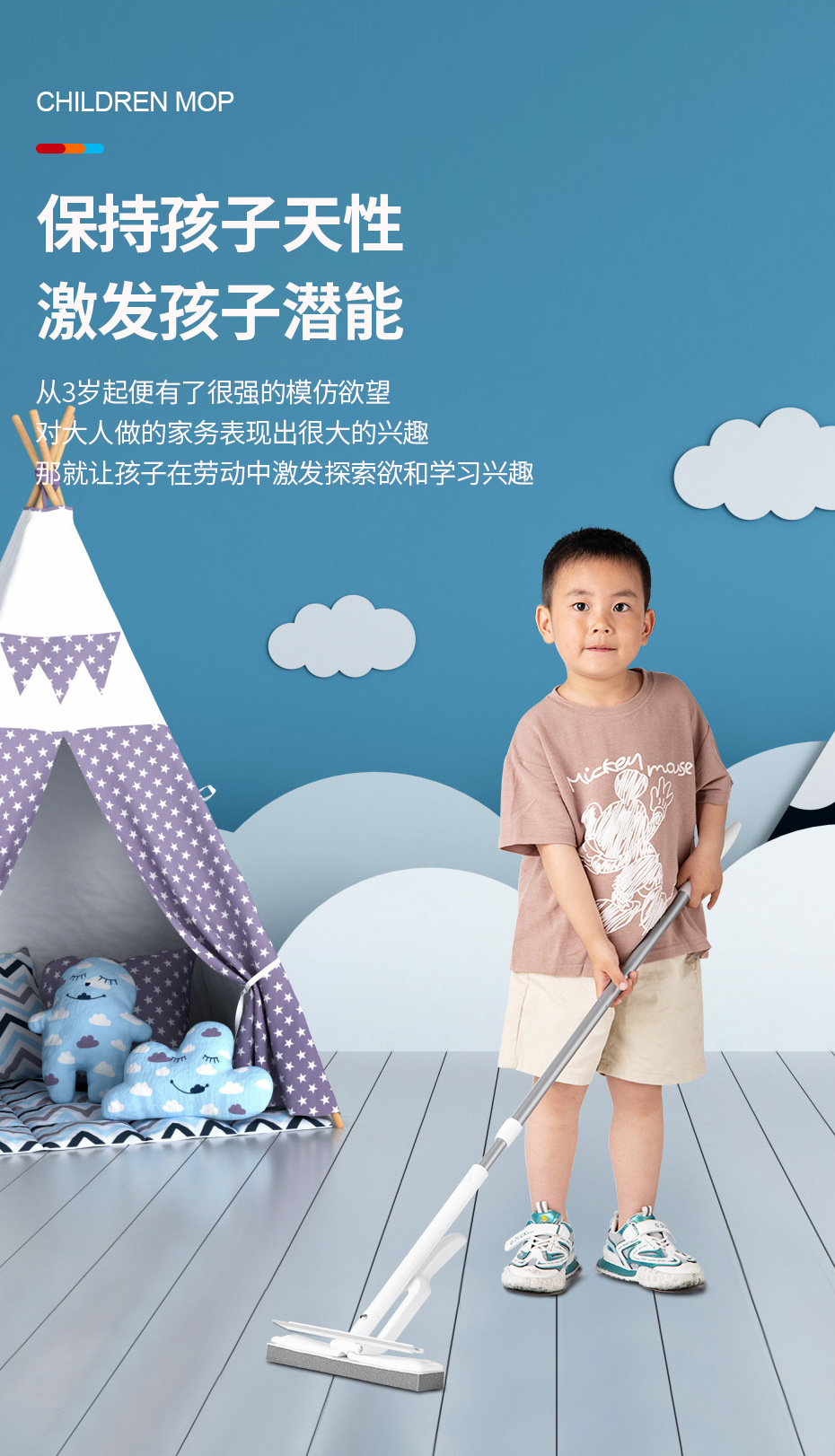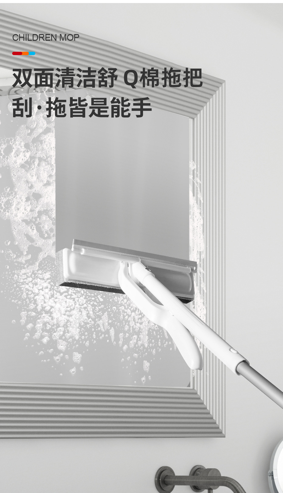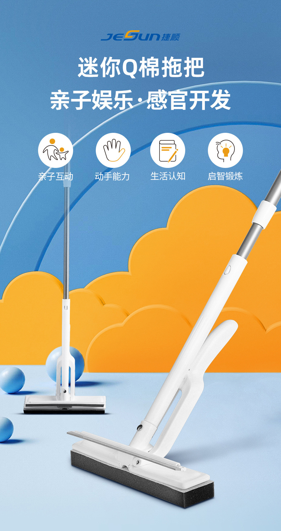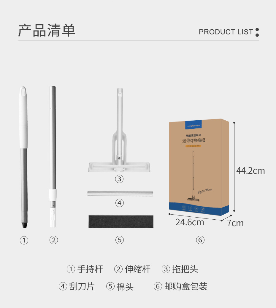 捷顺儿童胶棉拖把平板懒人小号挤水拖把轻便清洁工具迷你海绵拖把