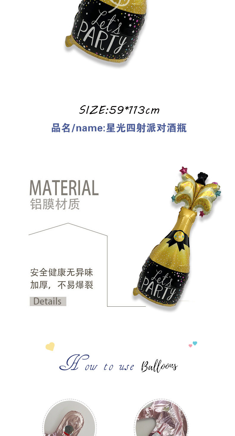 新款跨境亚马逊热卖大号星光香槟酒瓶生日派对婚礼铝膜气球装饰