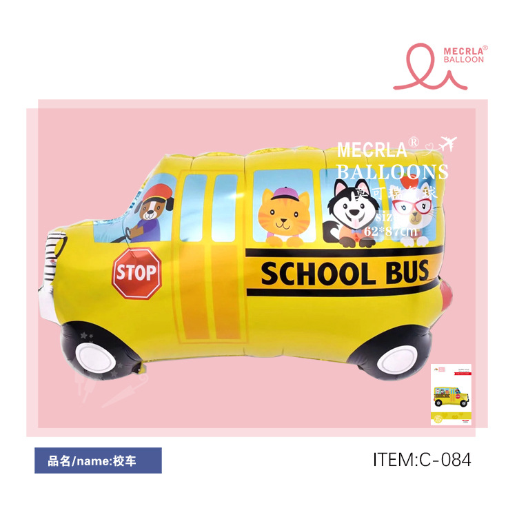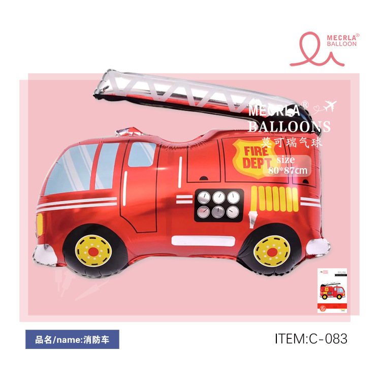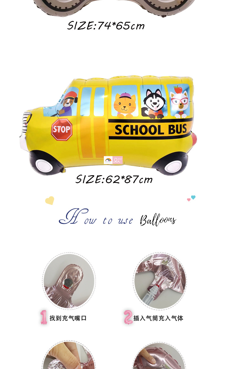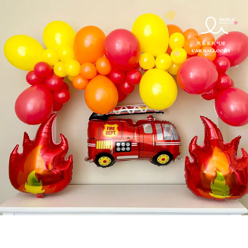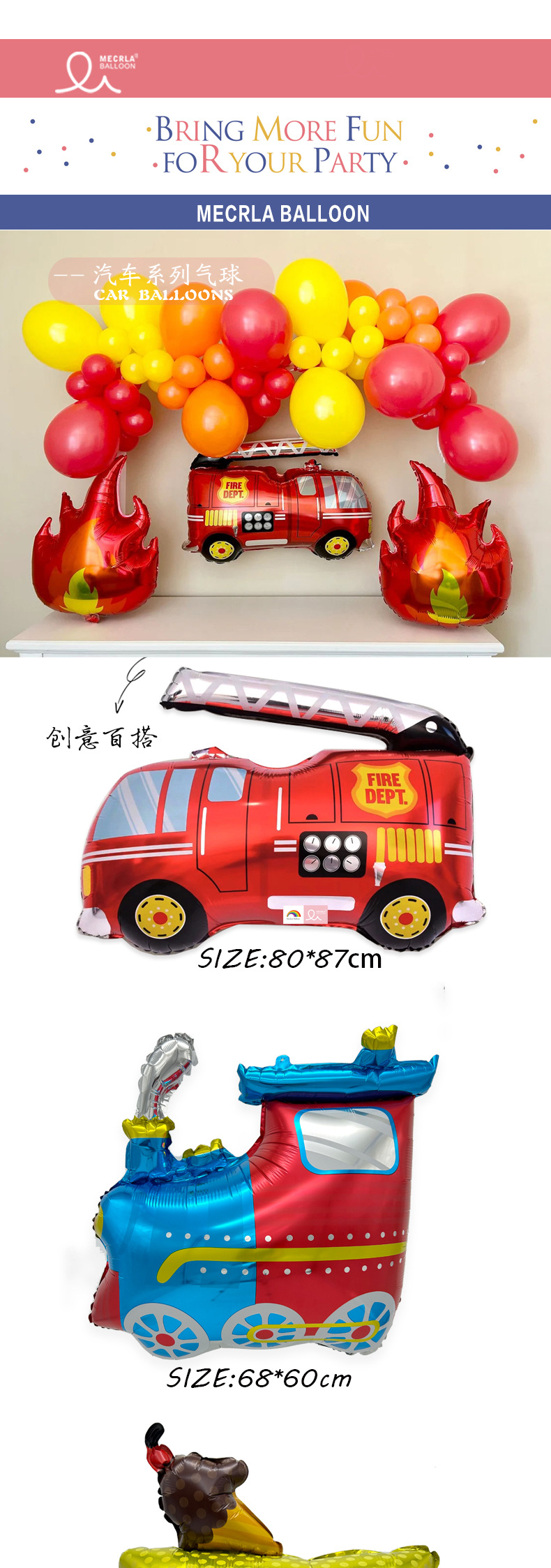 新款生日男孩交通工具校车警车消防车火车儿童节生日气球装饰布置