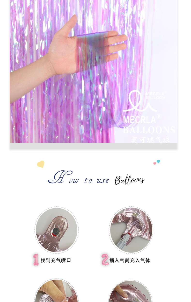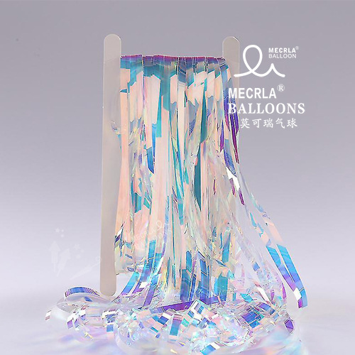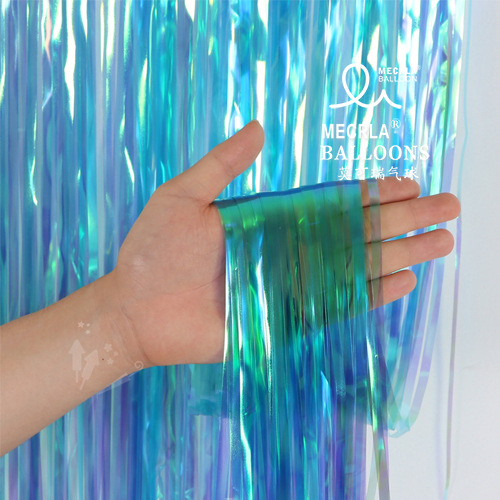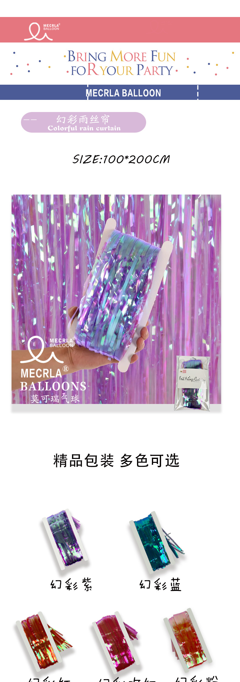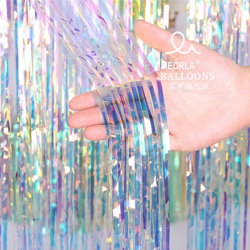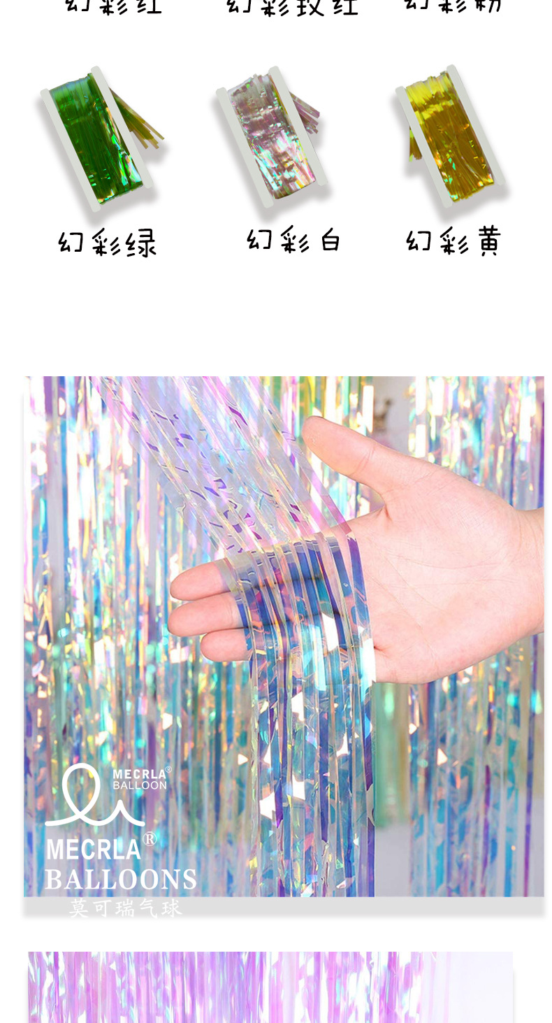 七彩镭射透明炫彩雨丝帘门流苏帘吊顶派对装饰背景墙布置带包装