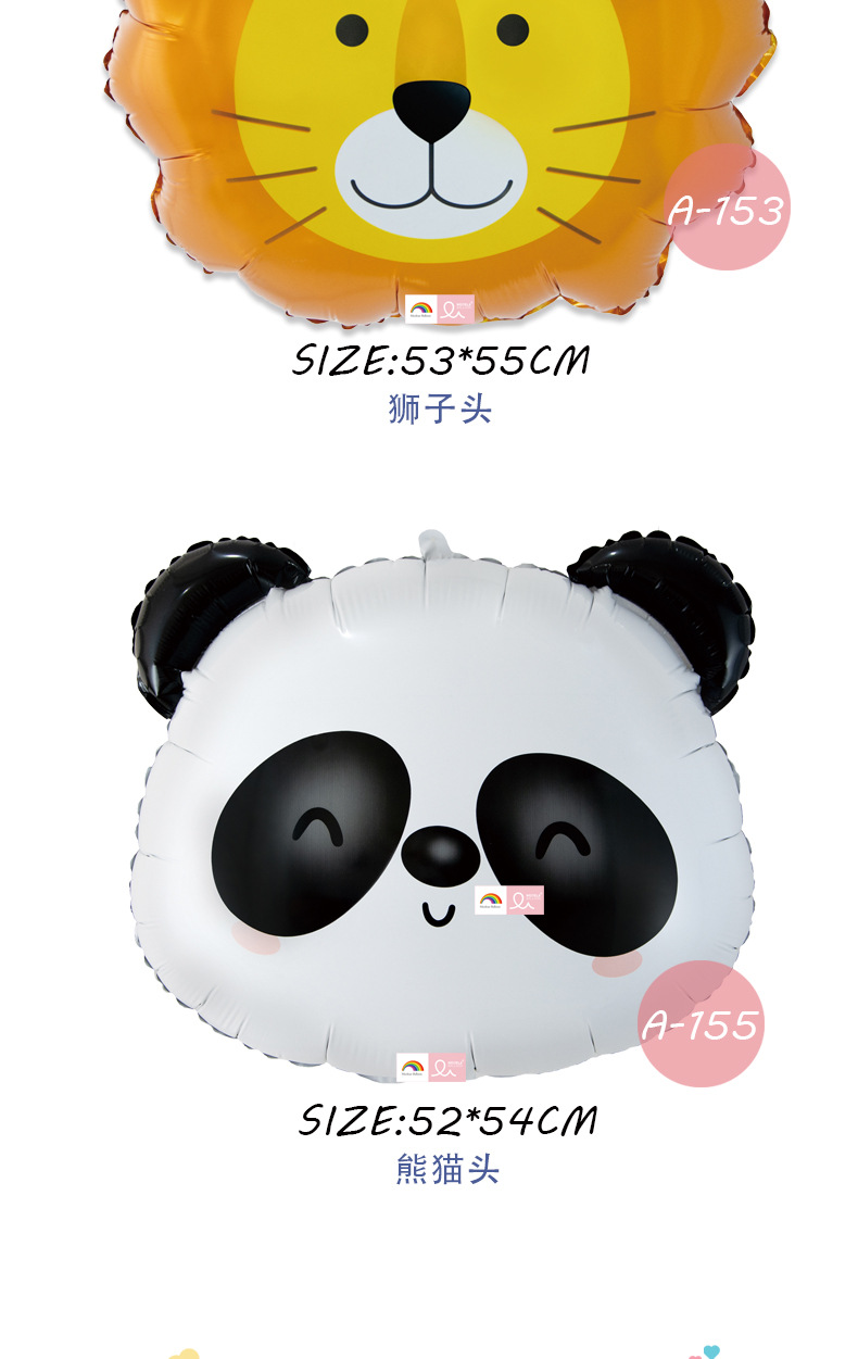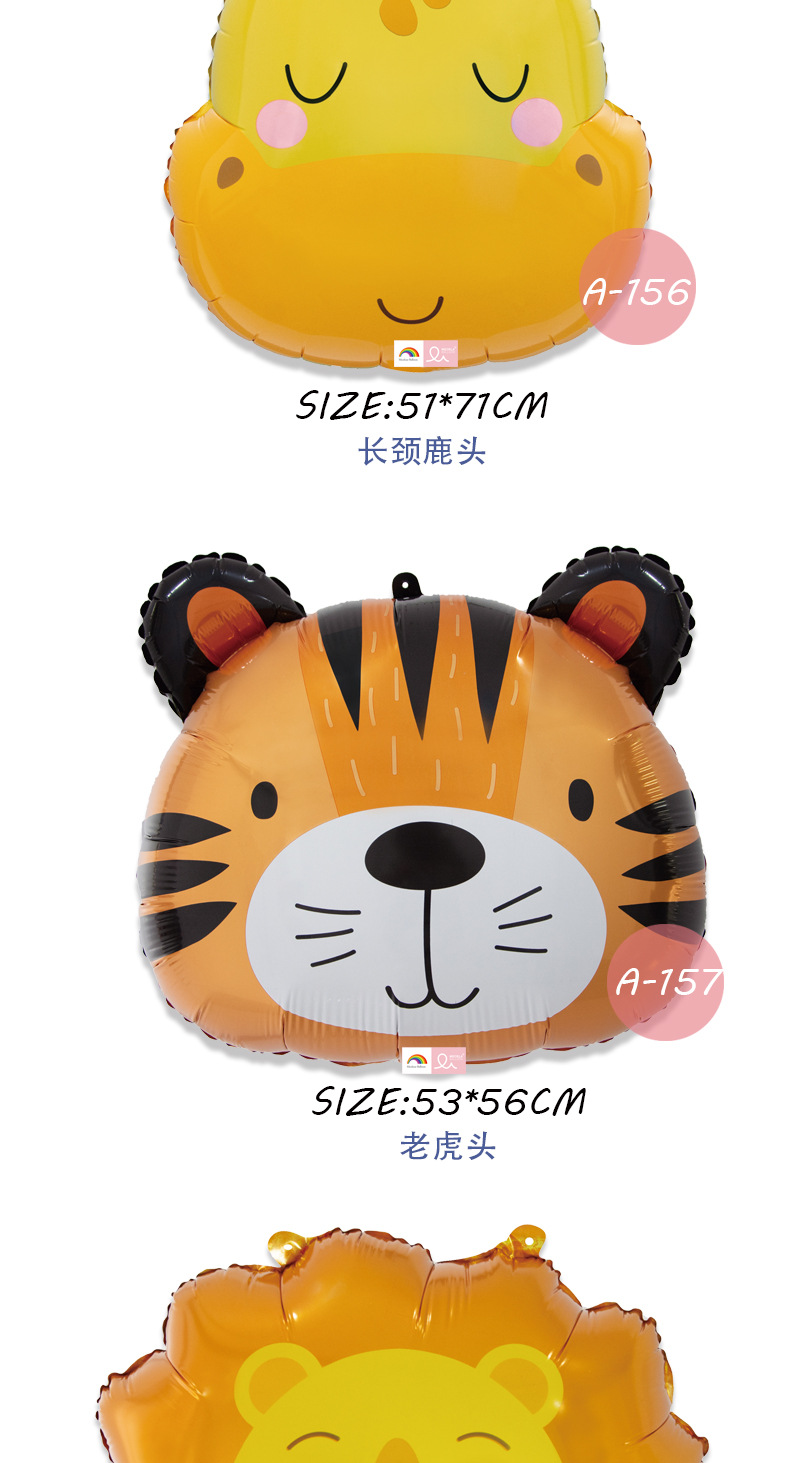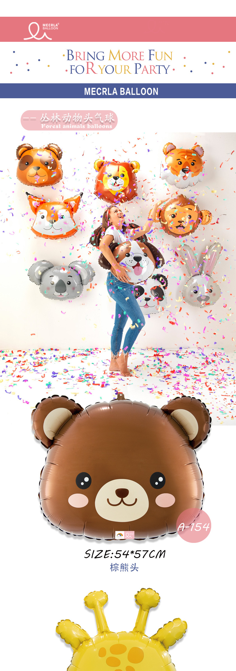 中号动物头气球丛林长颈鹿老虎熊猫棕熊狮子派对装饰铝膜气球精装