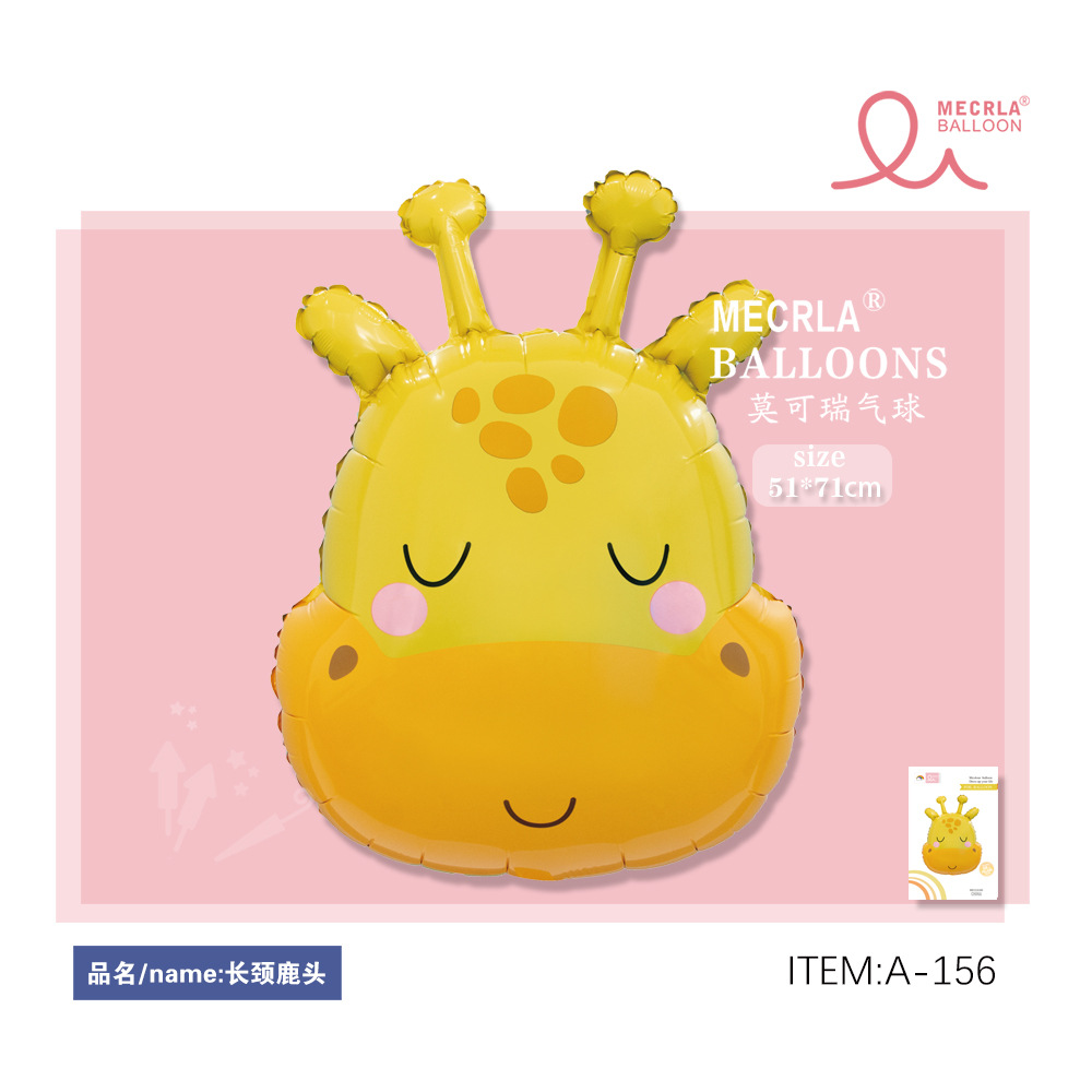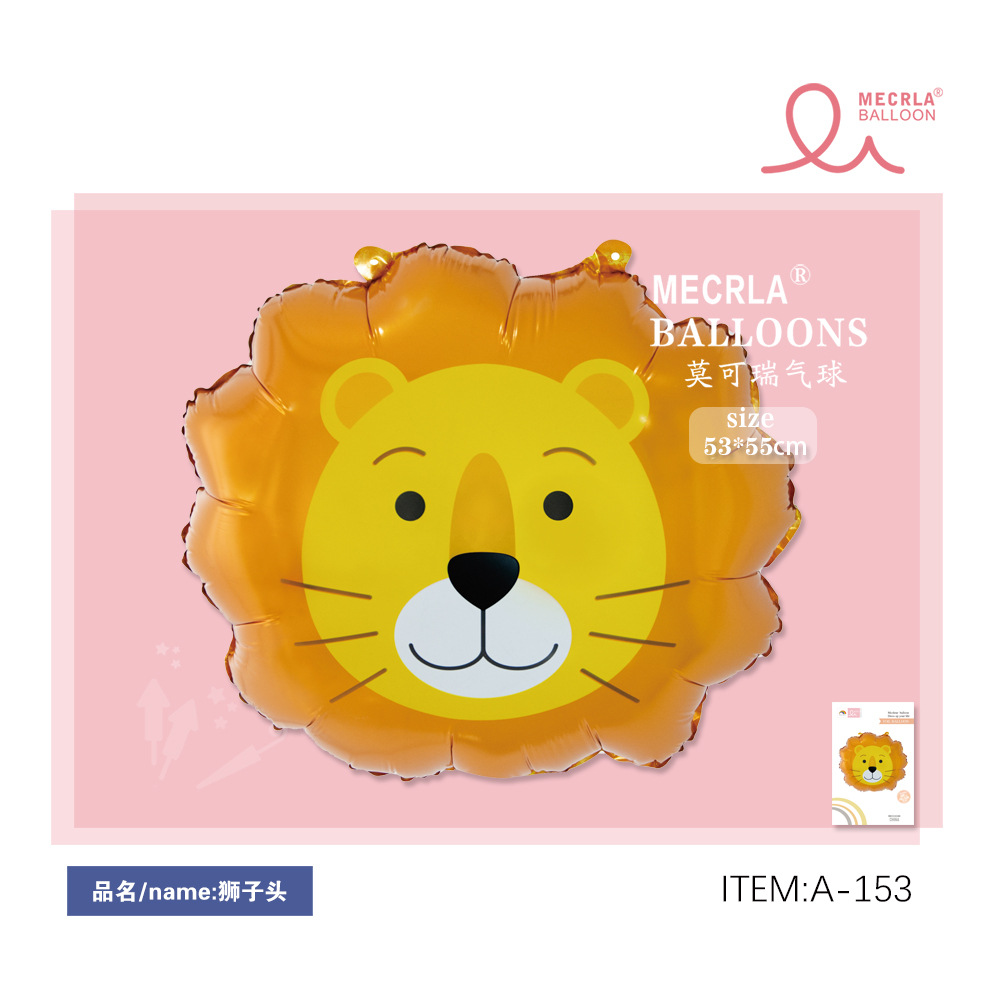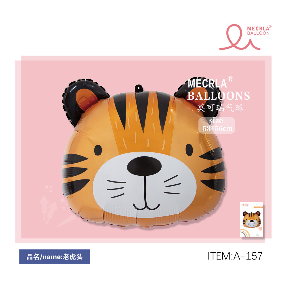 中号动物头气球丛林长颈鹿老虎熊猫棕熊狮子派对装饰铝膜气球精装