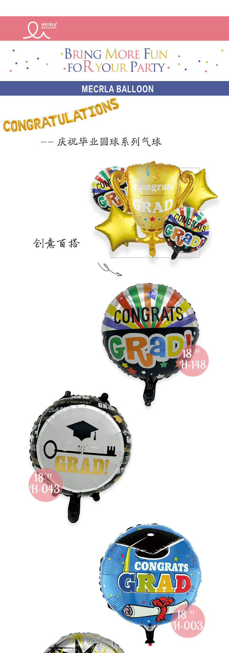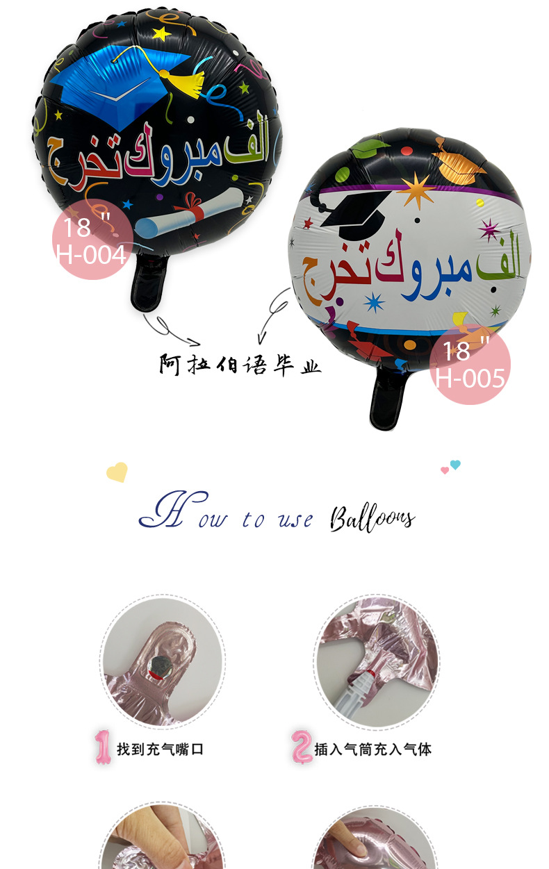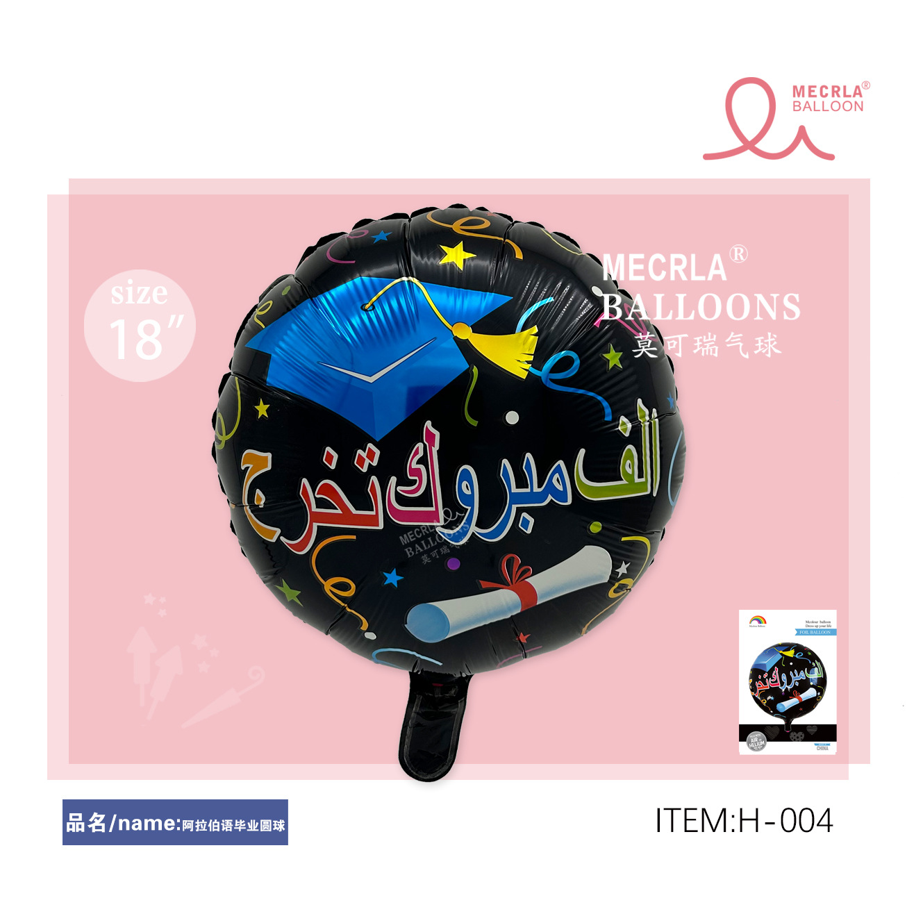 新款跨境热销毕业季18寸庆祝英文GRAD阿拉伯语同学会派对铝膜气球