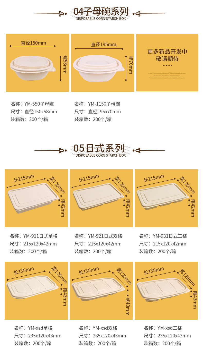 拿样食品级玉米淀粉餐盒圆碗多格外卖打包盒一次性餐盒饭盒快餐盒