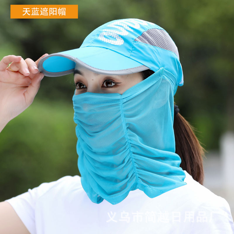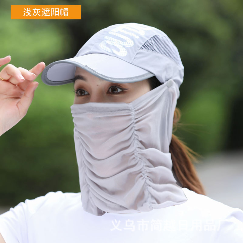 夏季防晒护颈速干采茶帽钓鱼帽 面纱帽子二合一折叠鸭舌帽遮阳帽