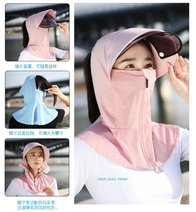 遮阳帽女2024夏季新款防晒帽面罩防紫外线太阳帽子骑车采茶沙滩帽