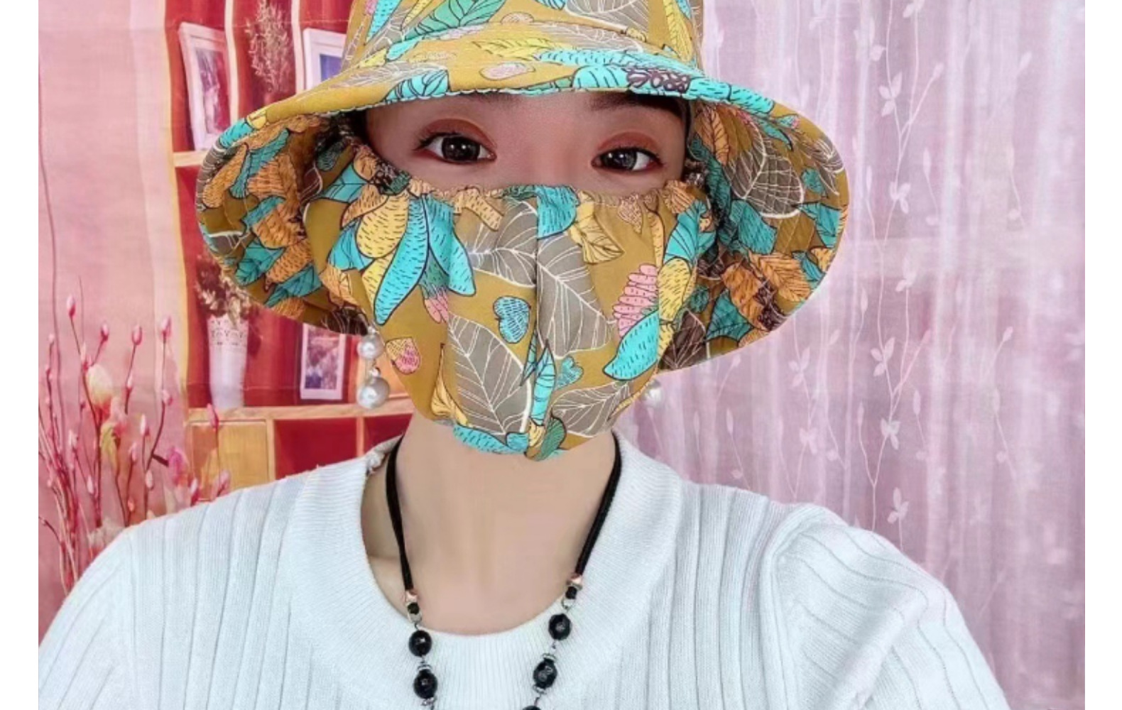 新款防晒口罩一体帽夏季户外遮阳透气采茶帽防紫外线碎花太阳帽子