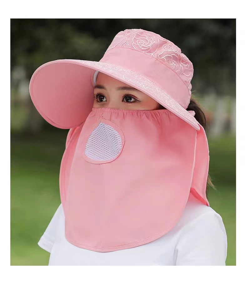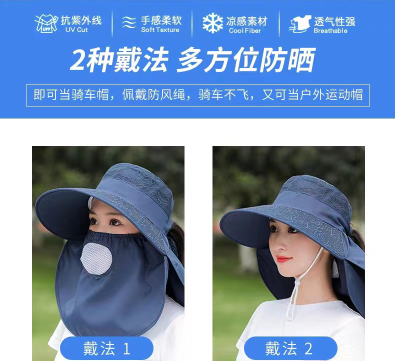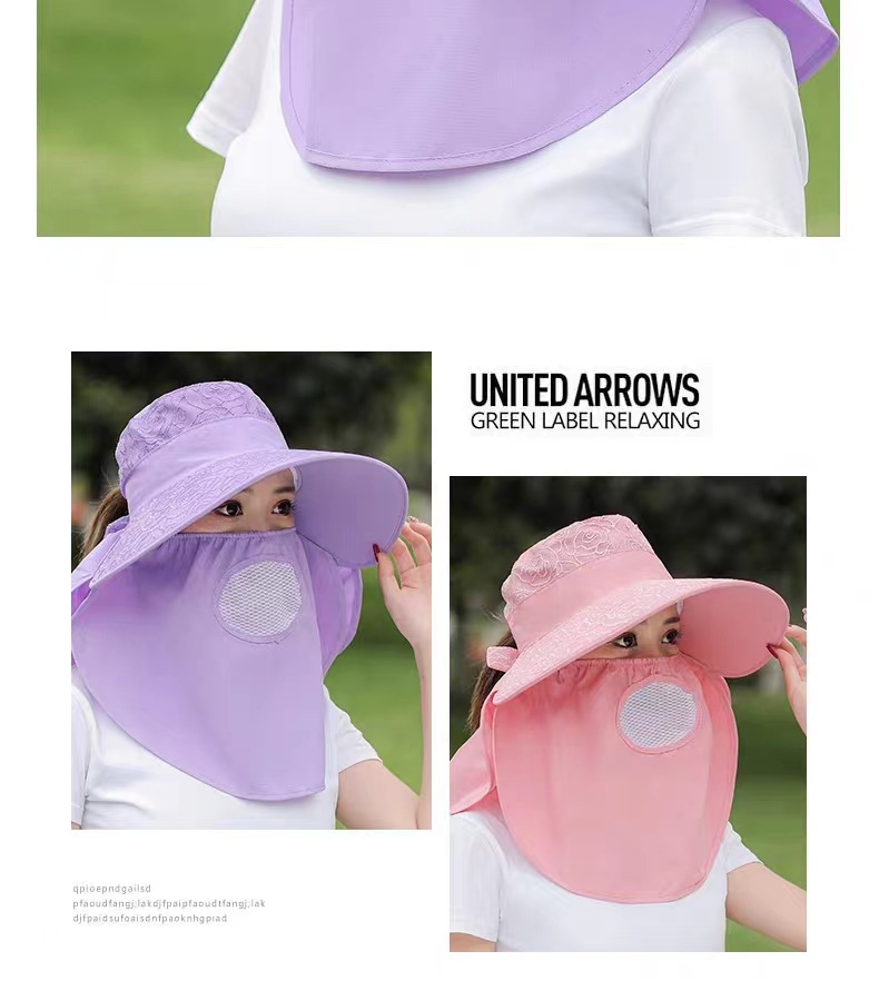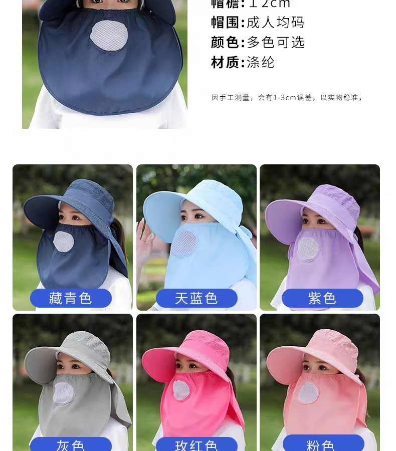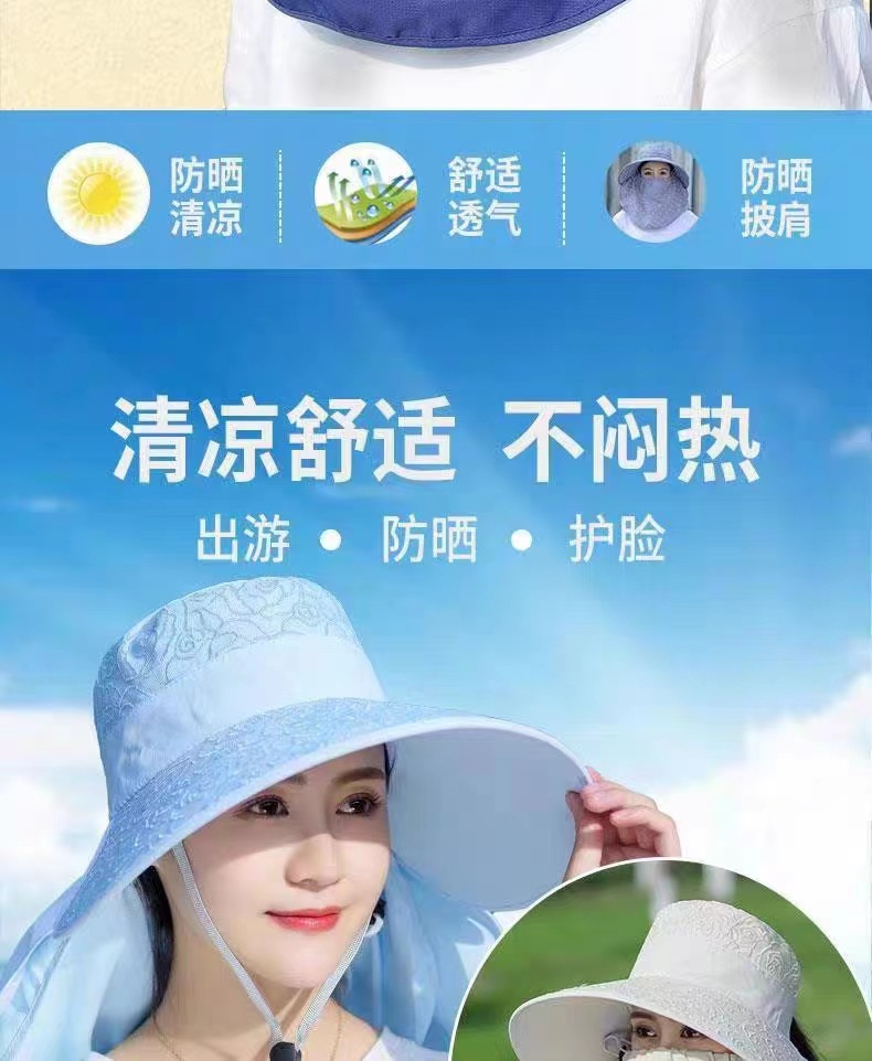 防晒帽全脸防紫外线采茶帽子女夏季遮脸遮阳帽大帽檐面纱罩太阳帽