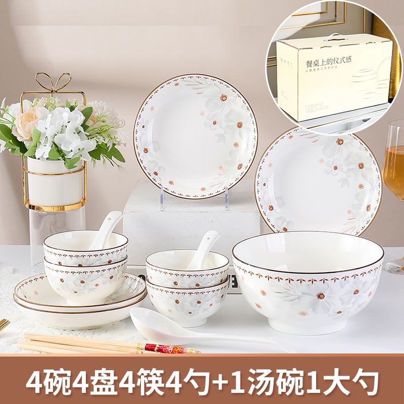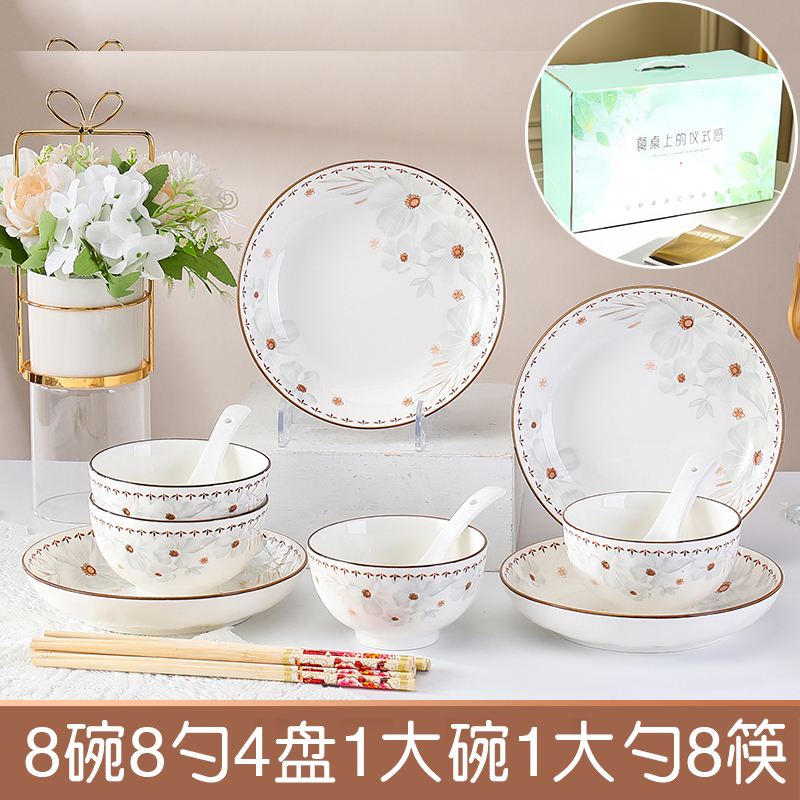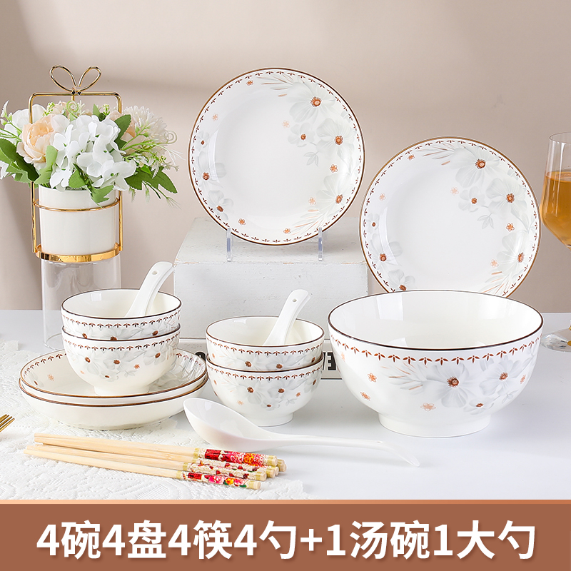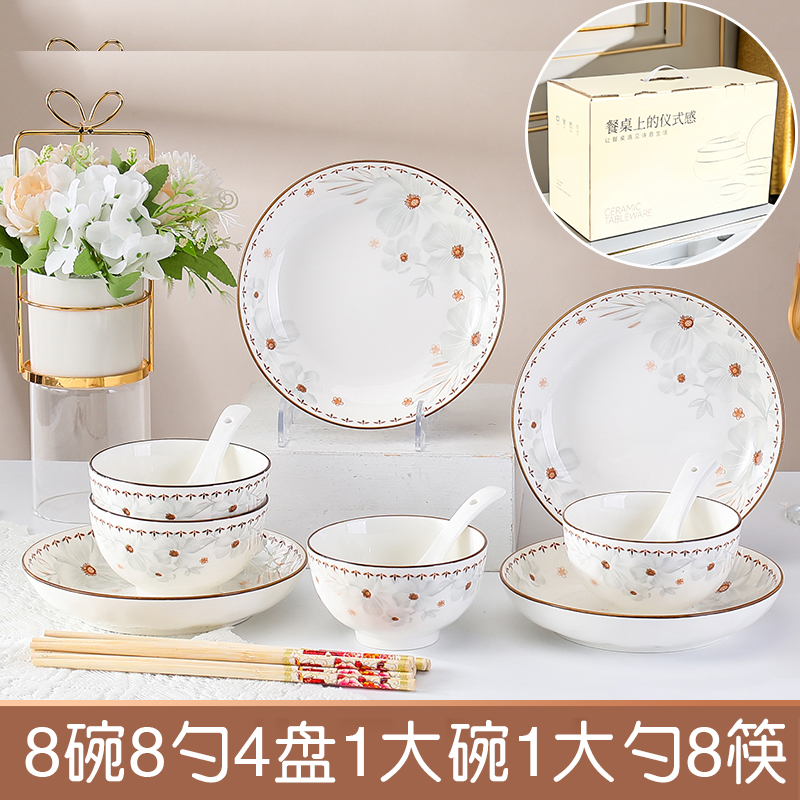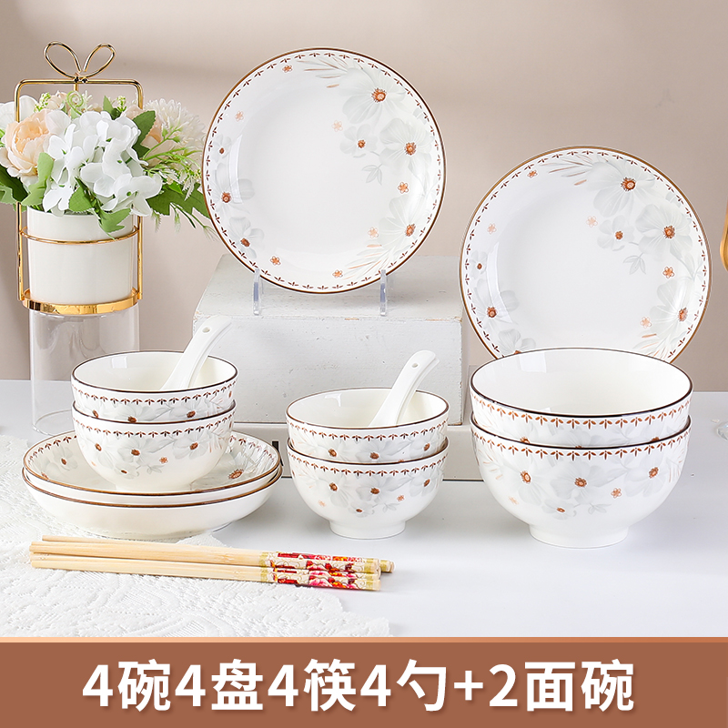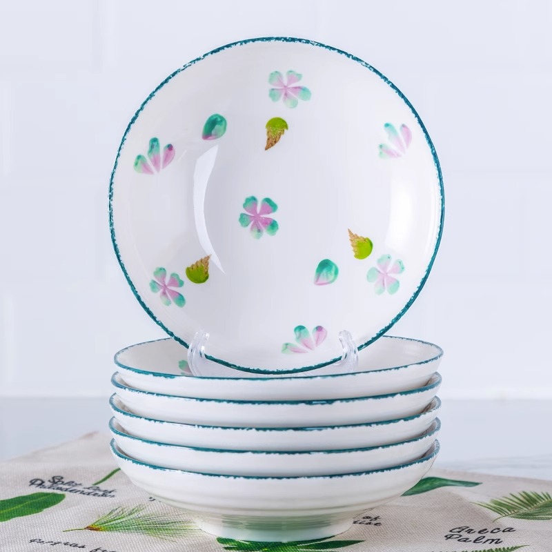 家用陶瓷盘子菜盘餐盘深汤菜盘字简约陶瓷餐具圆盘碟子可微波林祥