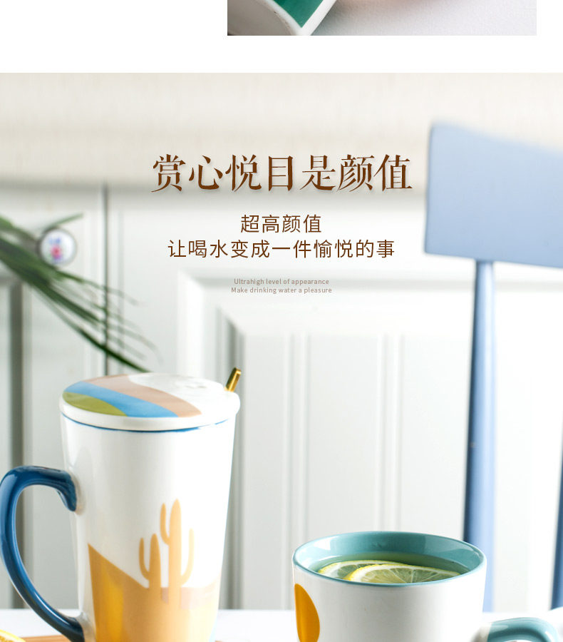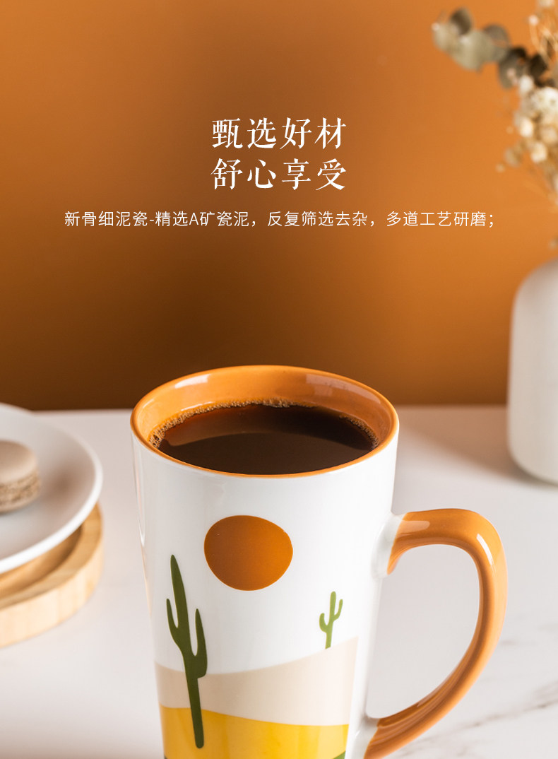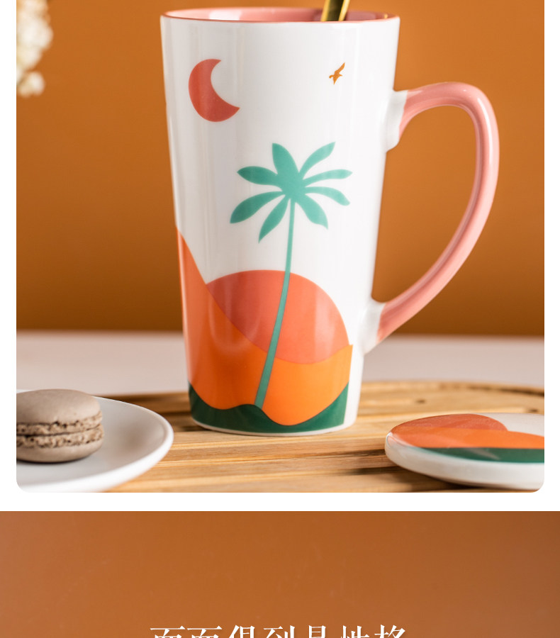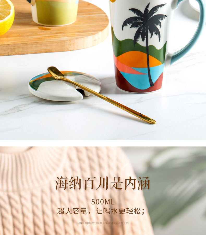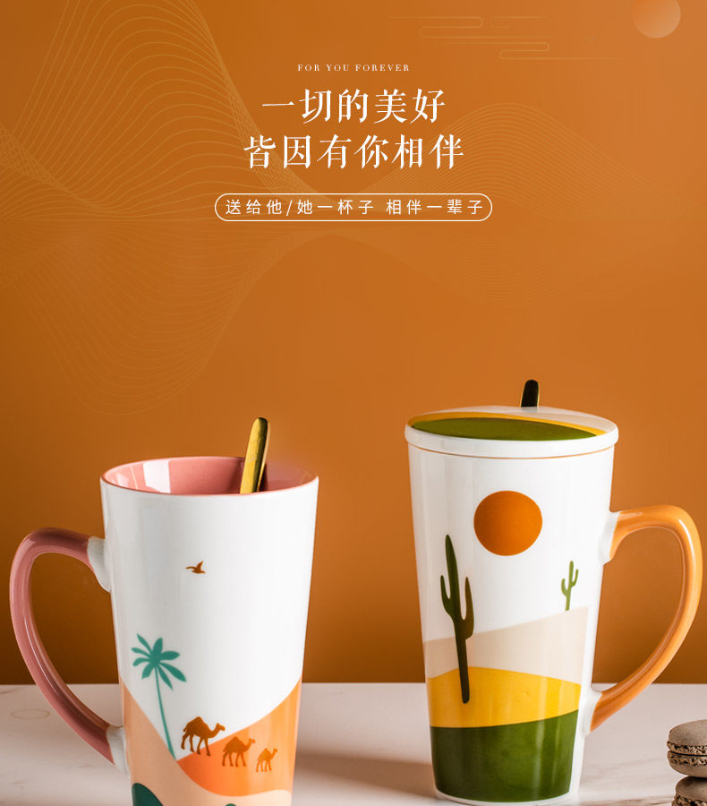 61K3欧式超大容量马克杯带盖勺子咖啡杯家用陶瓷杯情侣水杯子办公