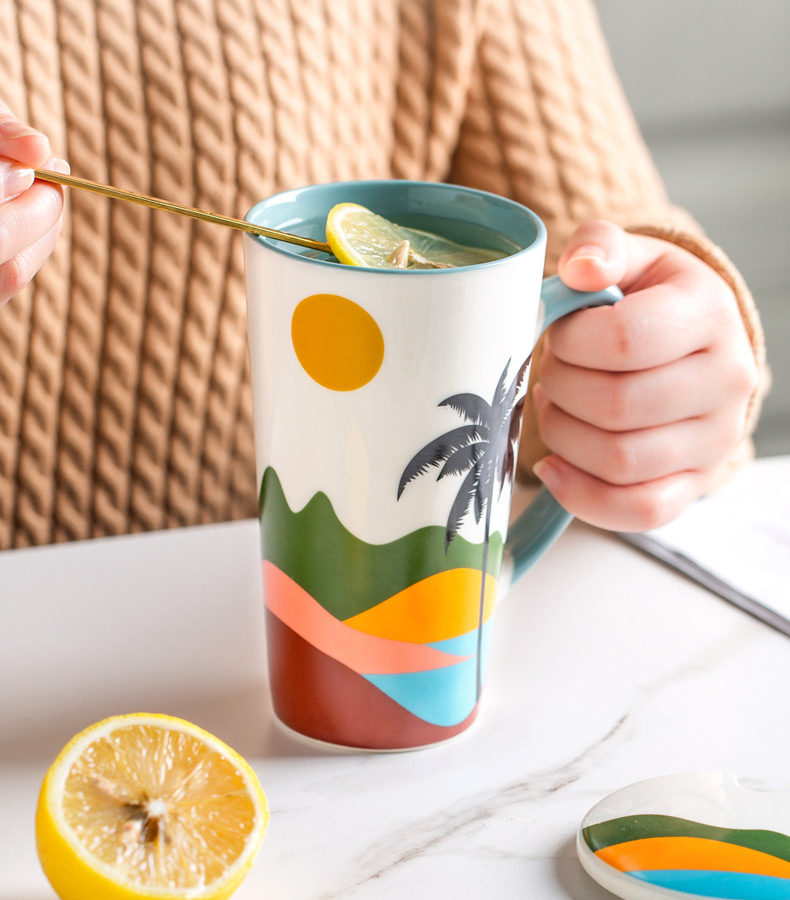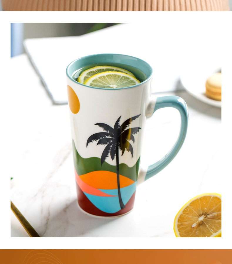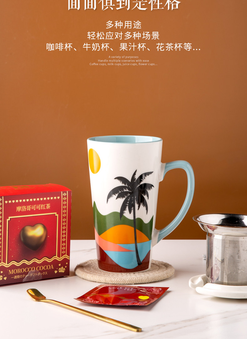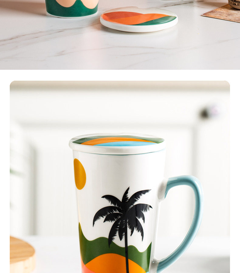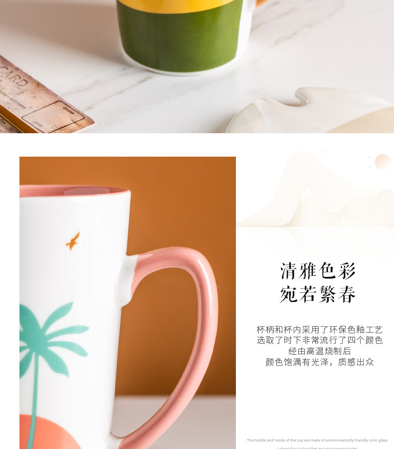 61K3欧式超大容量马克杯带盖勺子咖啡杯家用陶瓷杯情侣水杯子办公