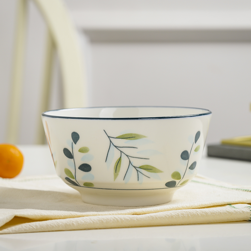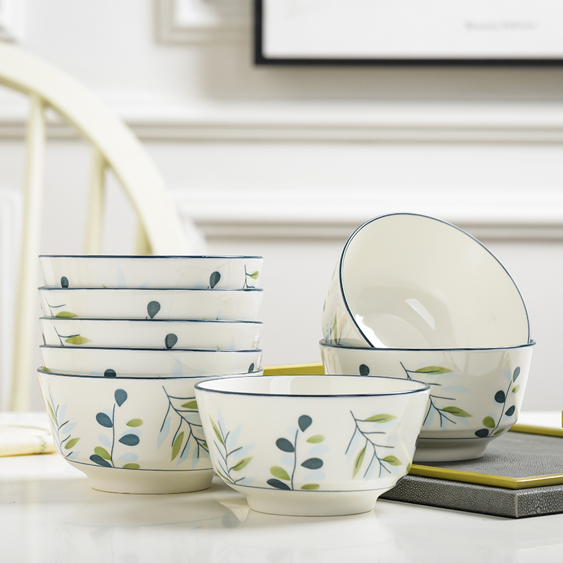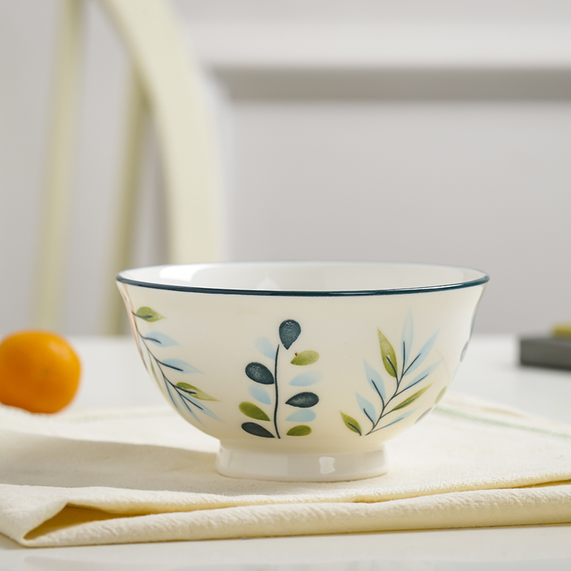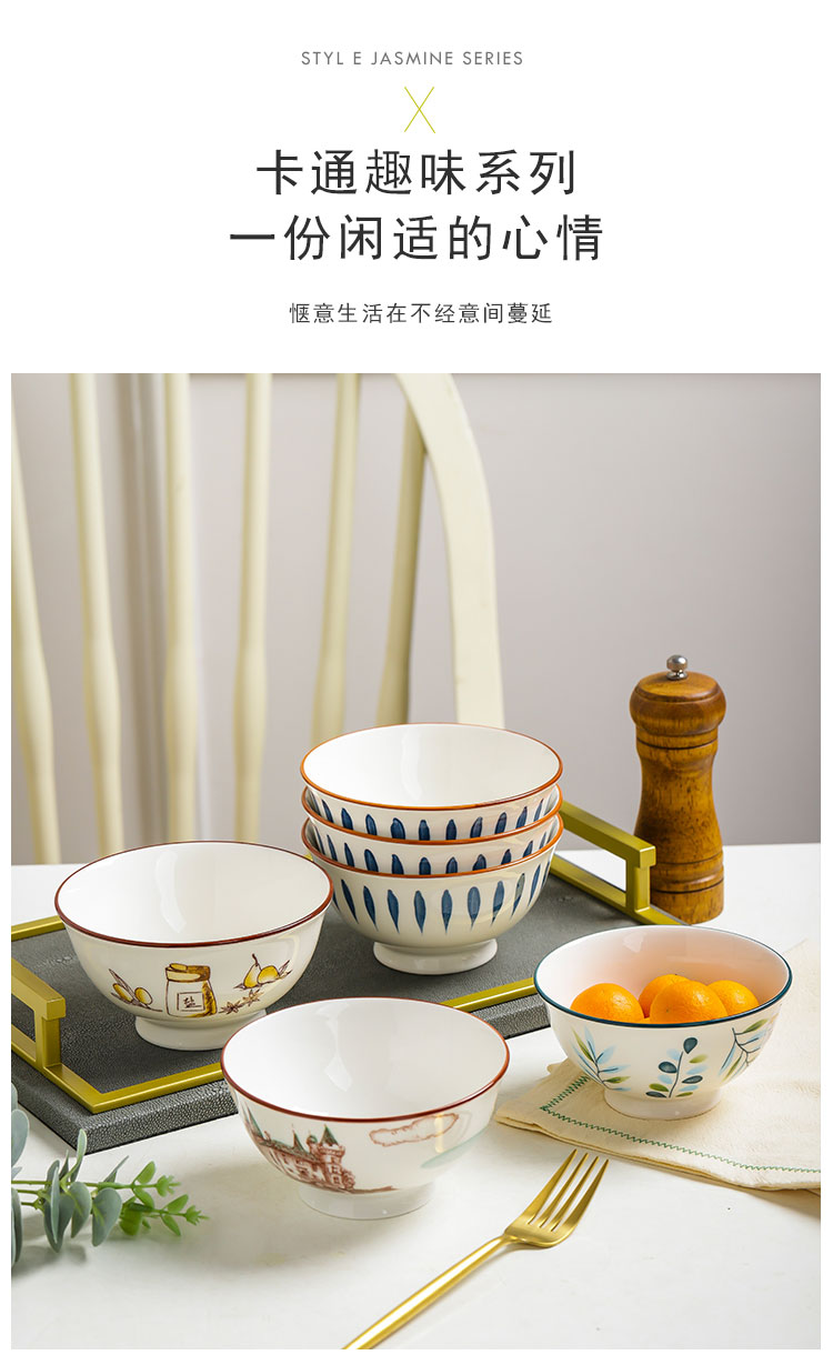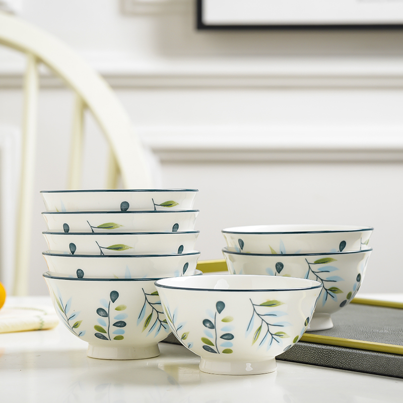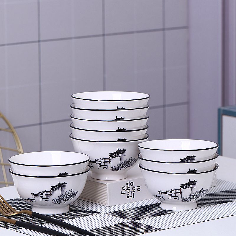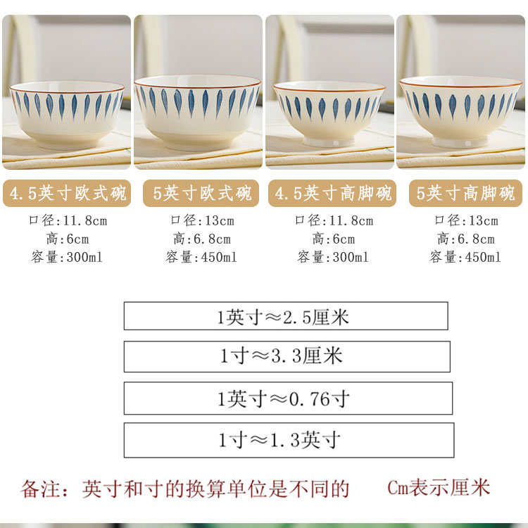 10个5英寸欧式家用吃饭饭陶瓷碗套装高脚防烫加厚中式釉中彩声奇