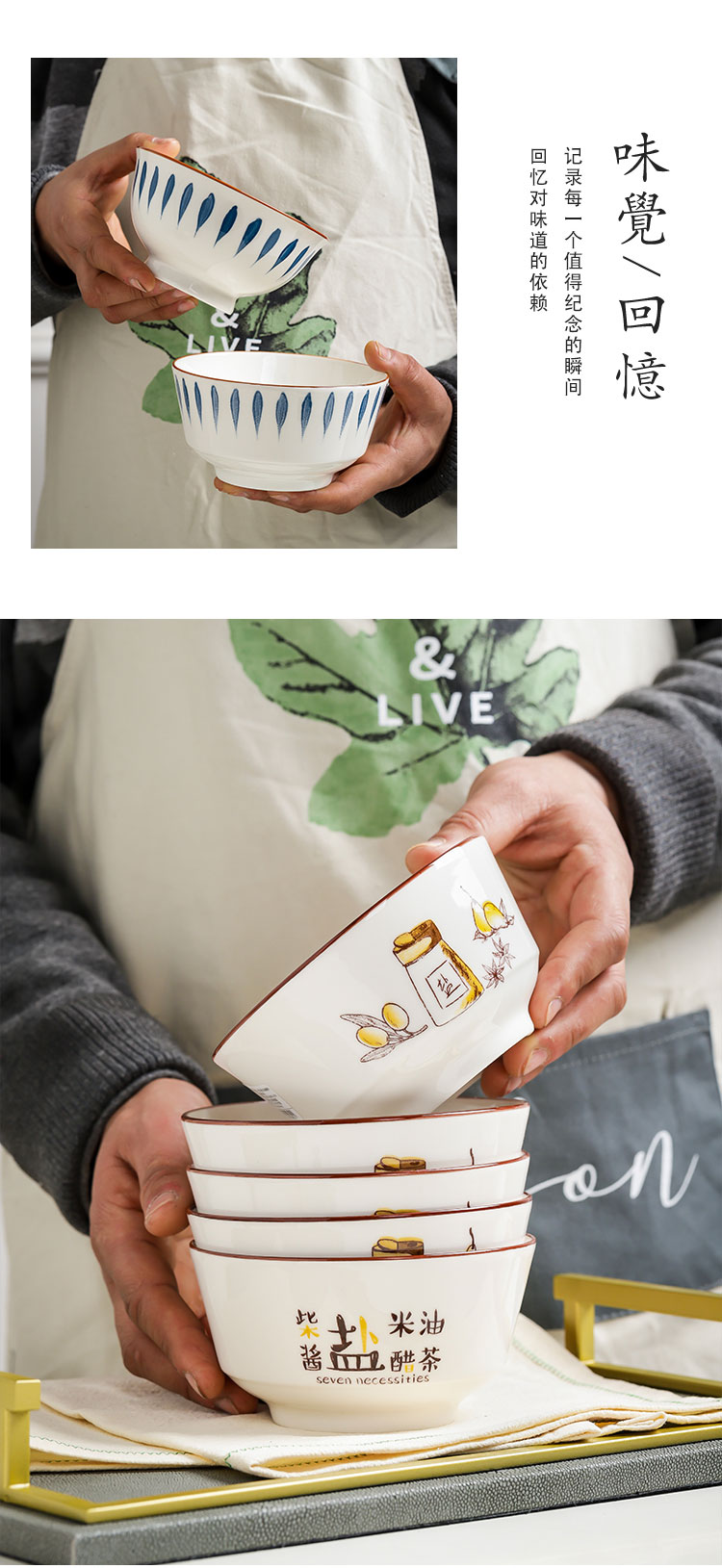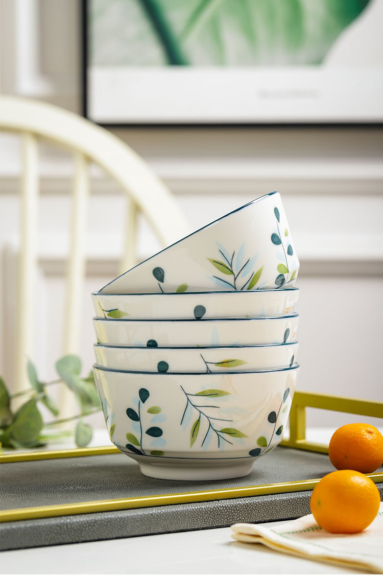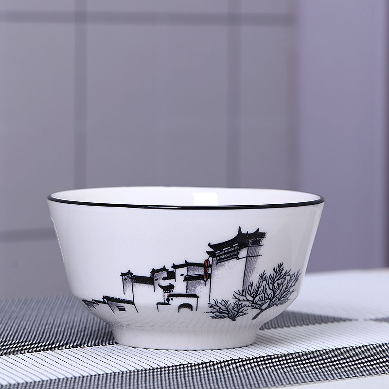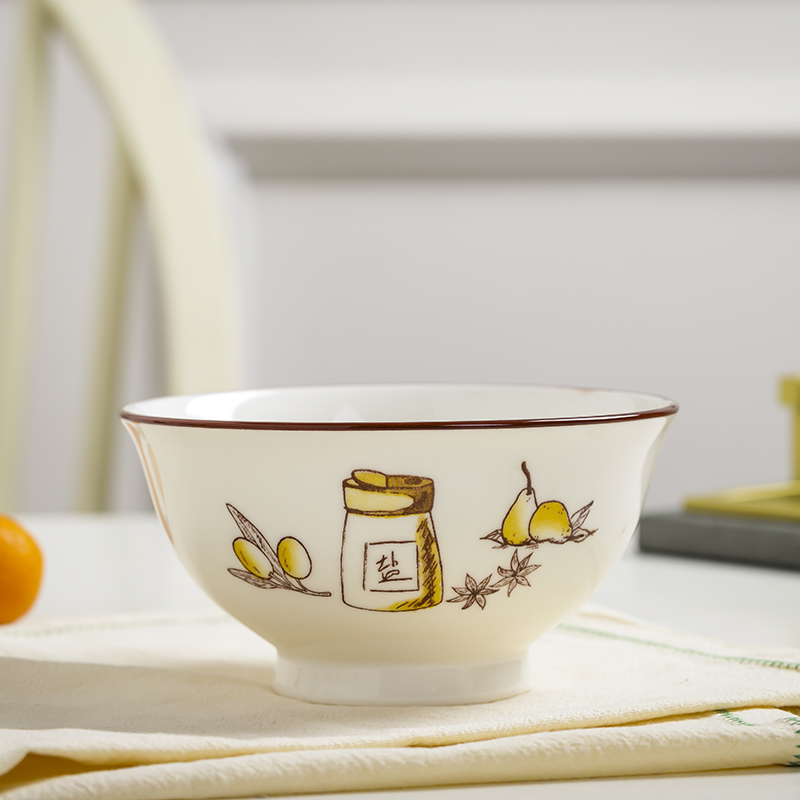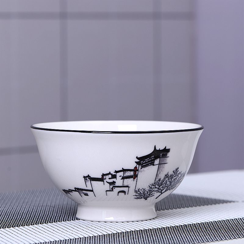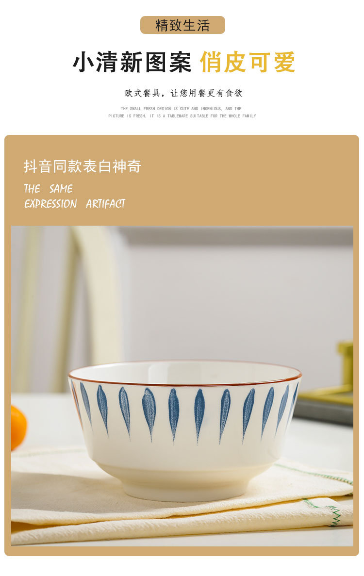 10个5英寸欧式家用吃饭饭陶瓷碗套装高脚防烫加厚中式釉中彩声奇