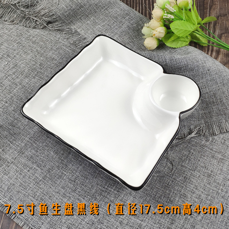 欧式子母盘寿司盘子陶瓷创意 圆形有格带醋碟子水饺子盘小吃佑宁