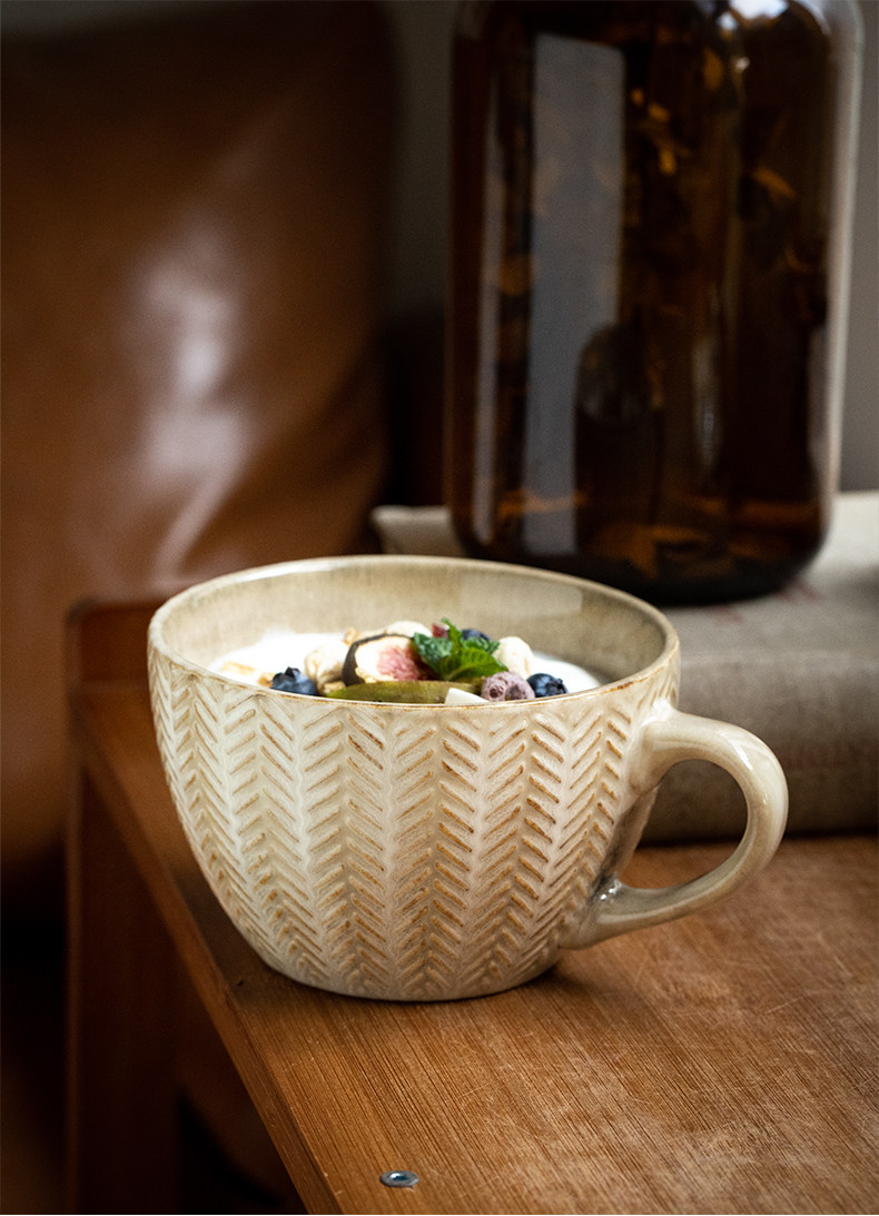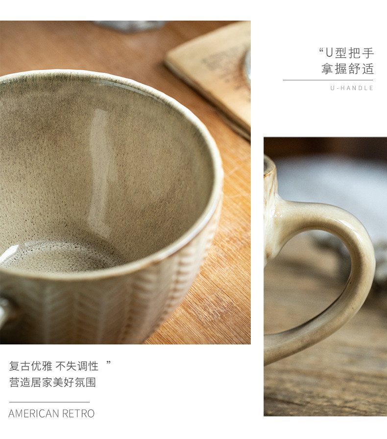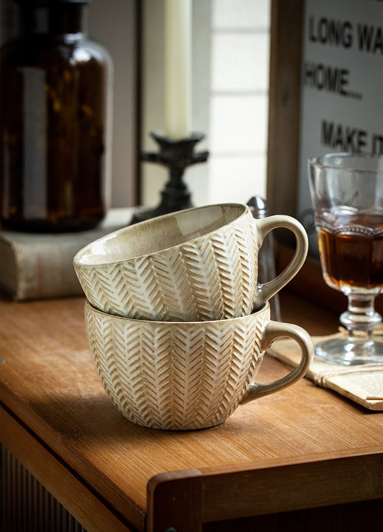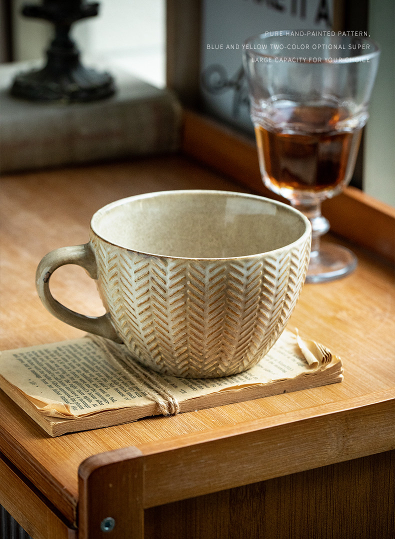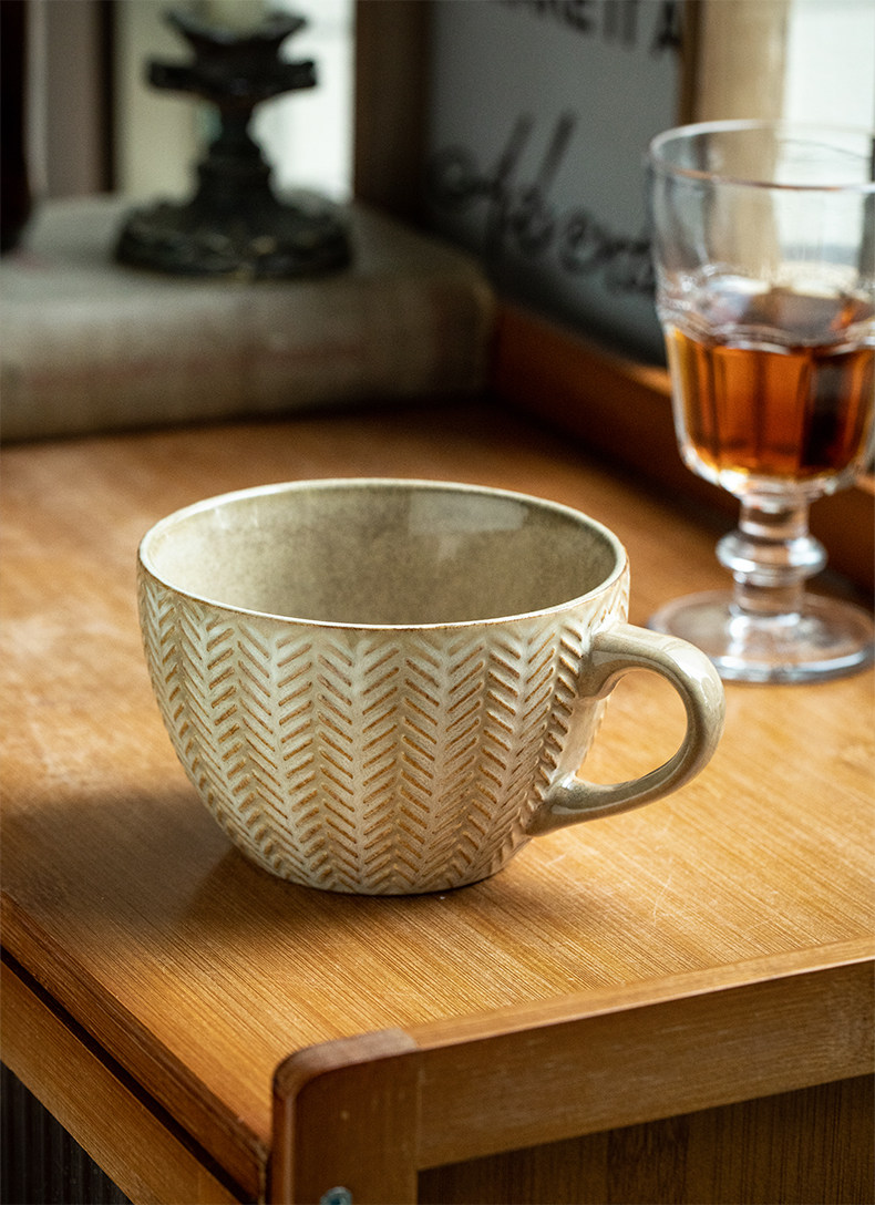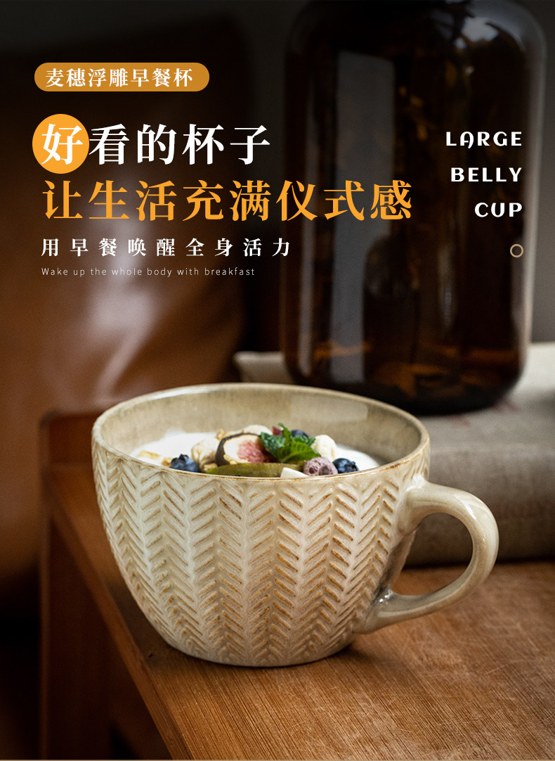 bx62 alley tail [wheat cup in love at first sight] vintage embossed breakfast cup kiln baked mug water cup