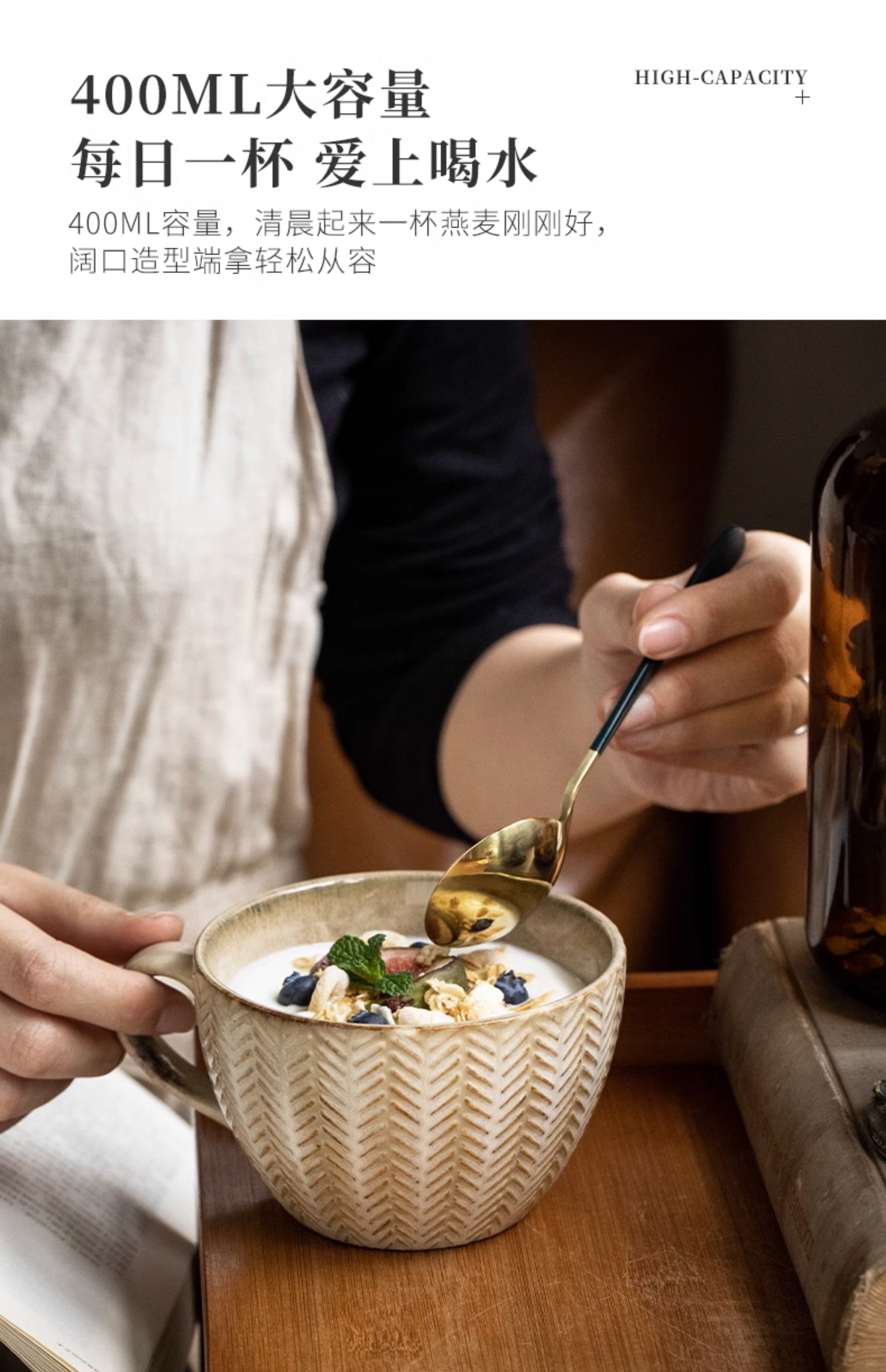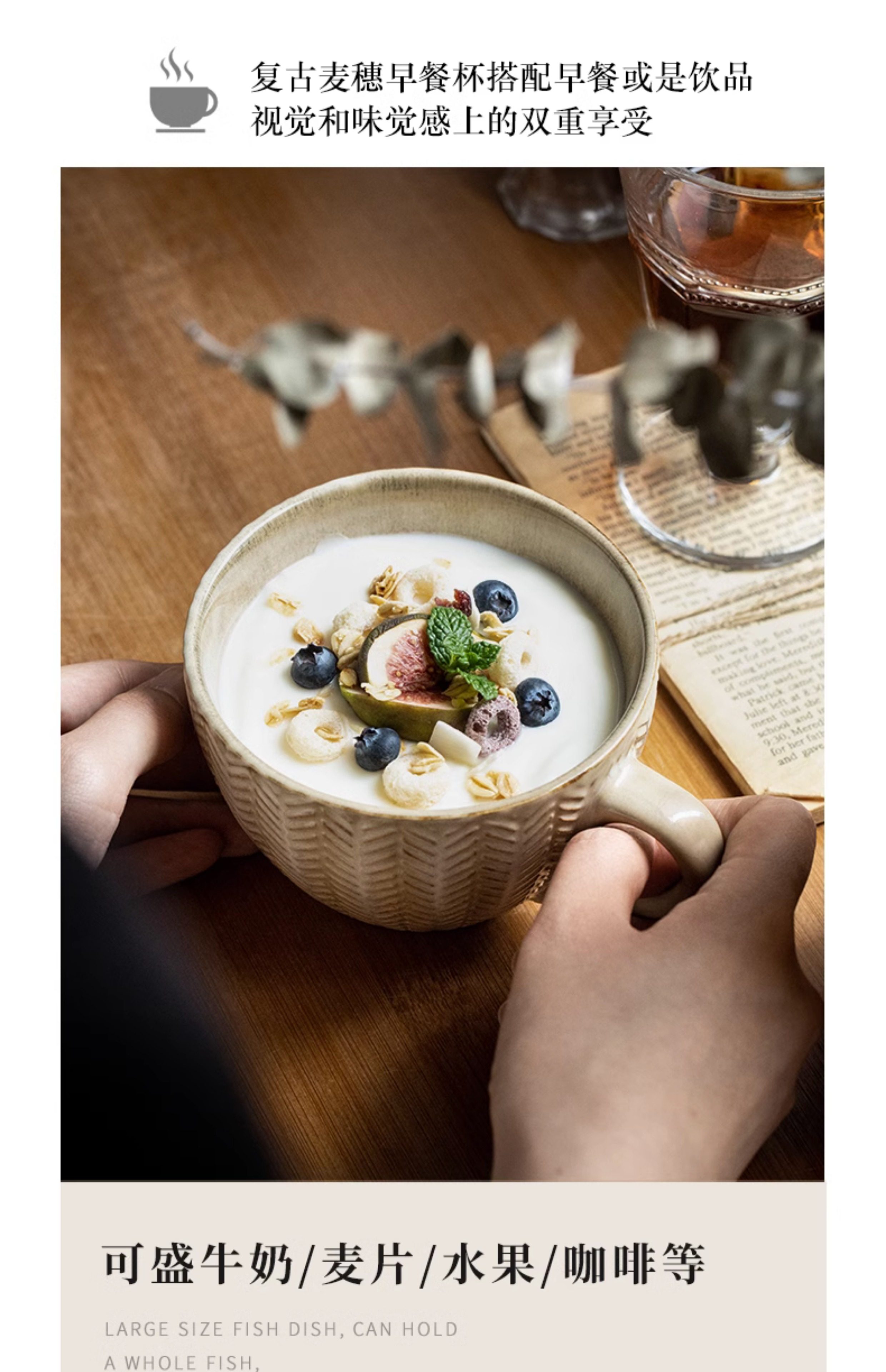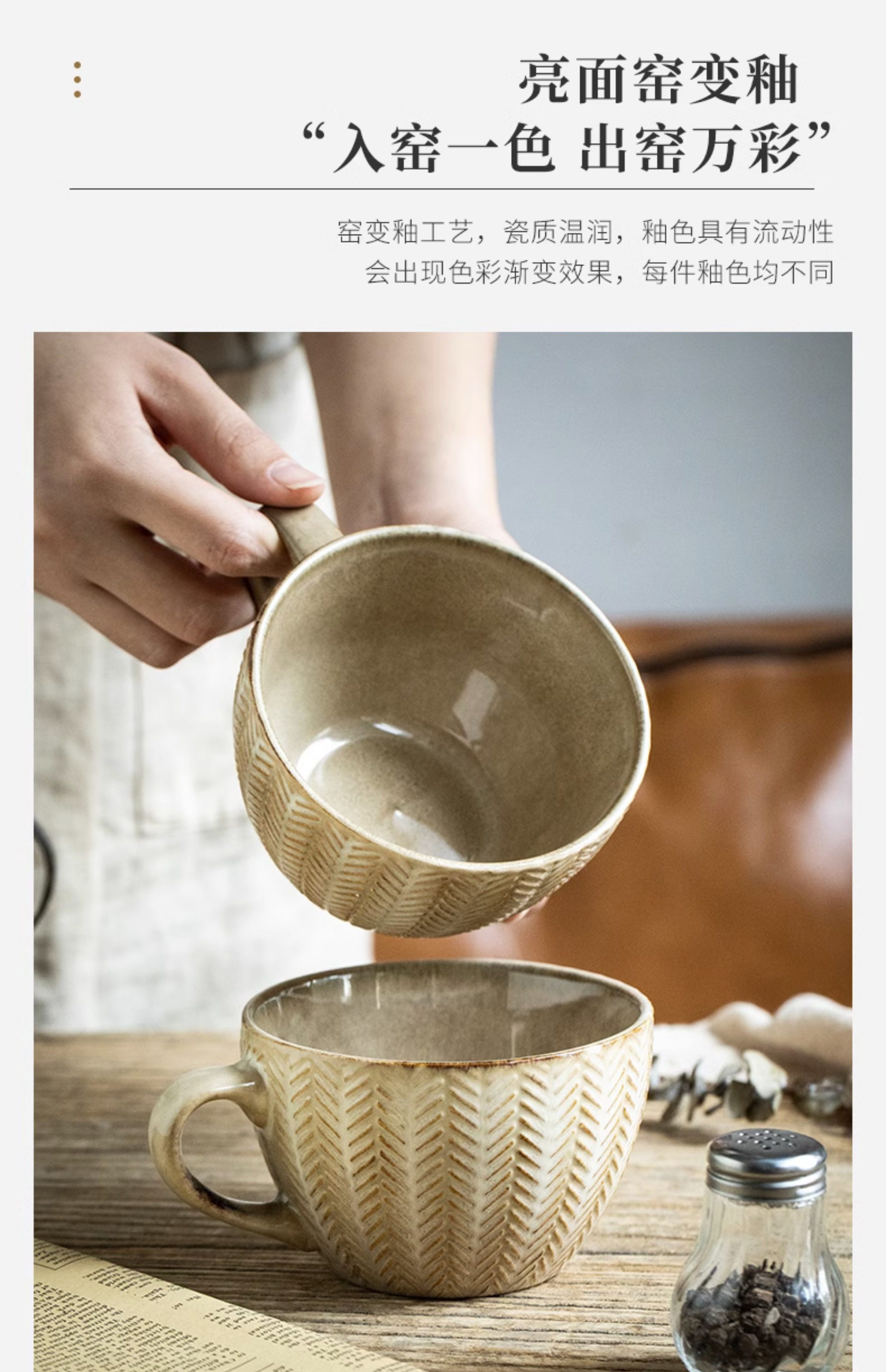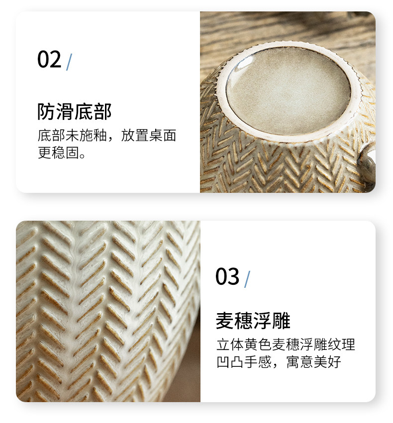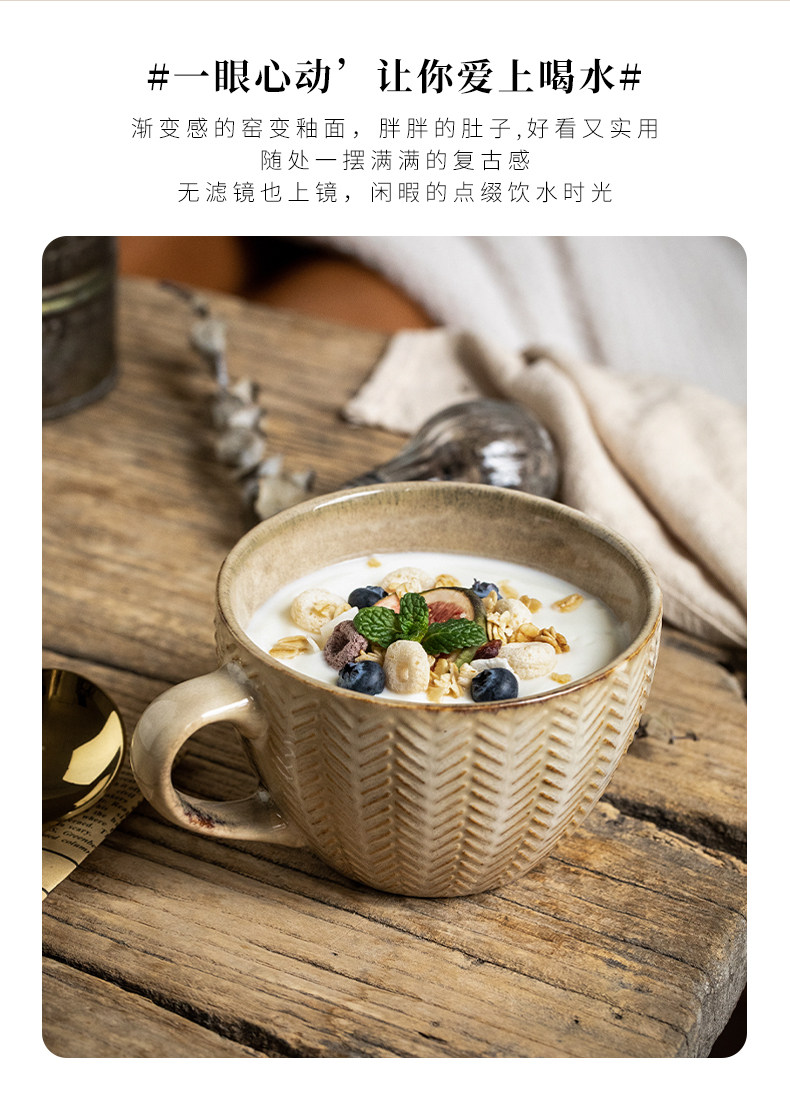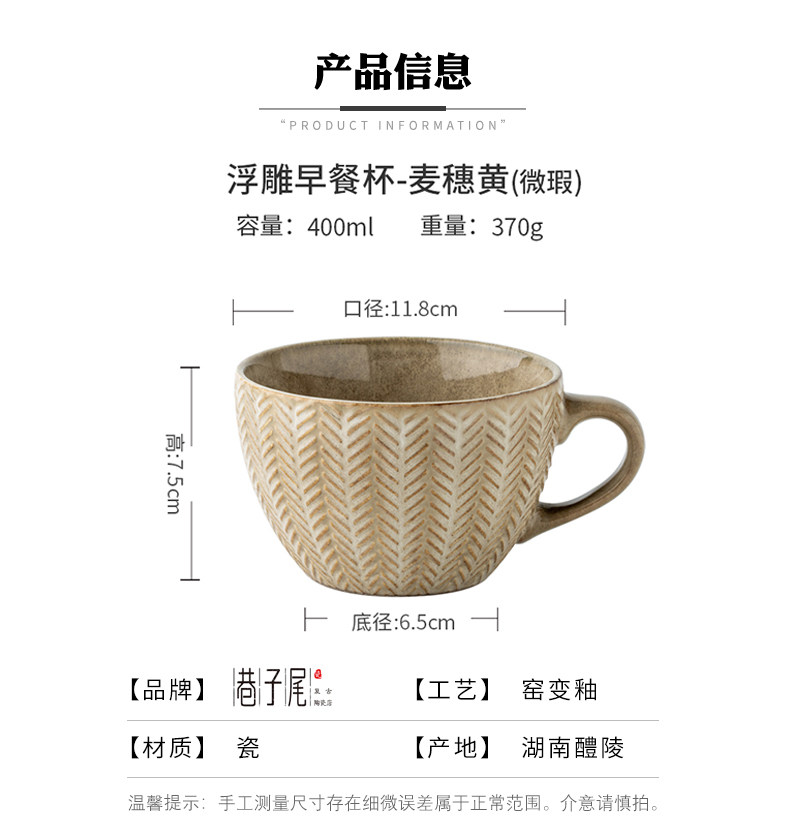 BX62巷子尾〖一见钟情的麦穗杯子〗复古浮雕早餐杯窑变马克杯水杯