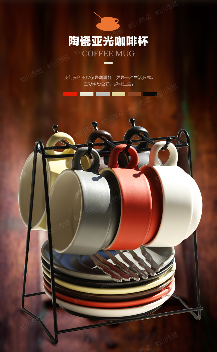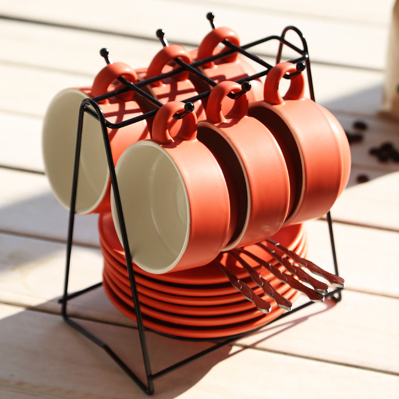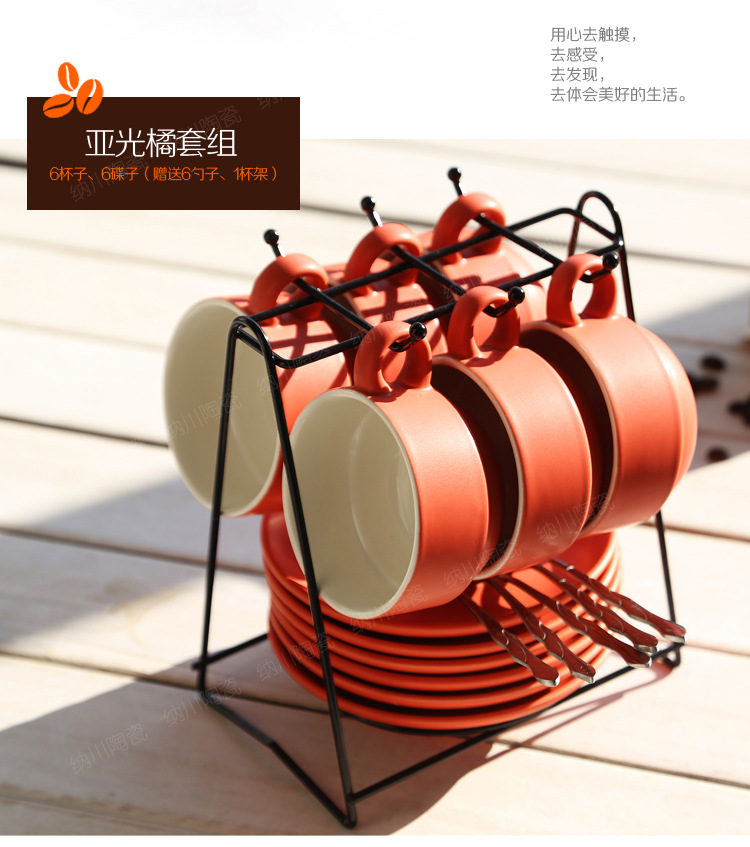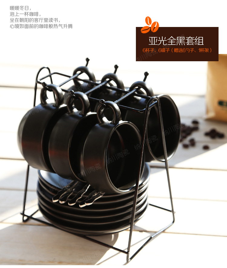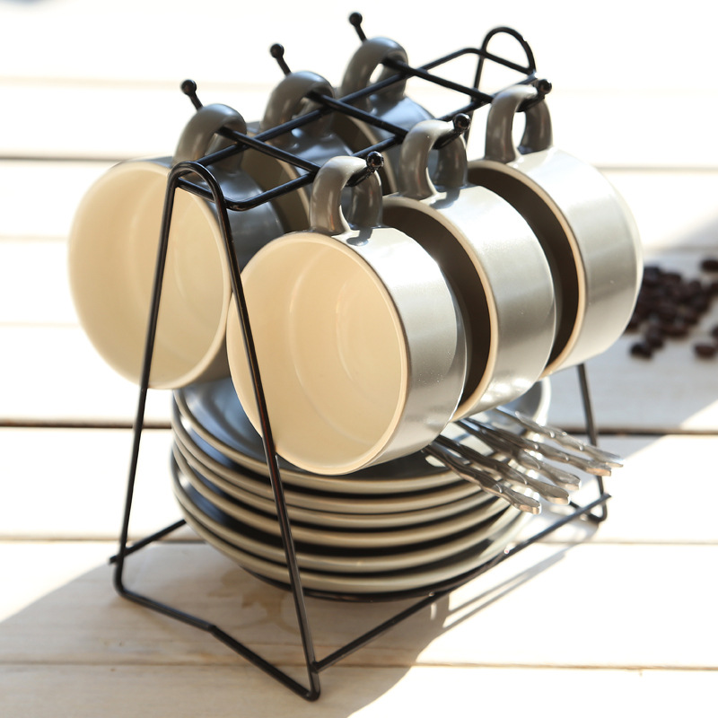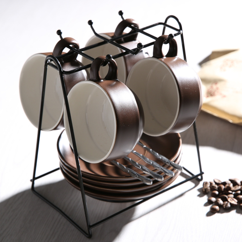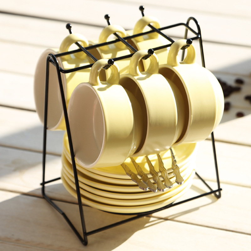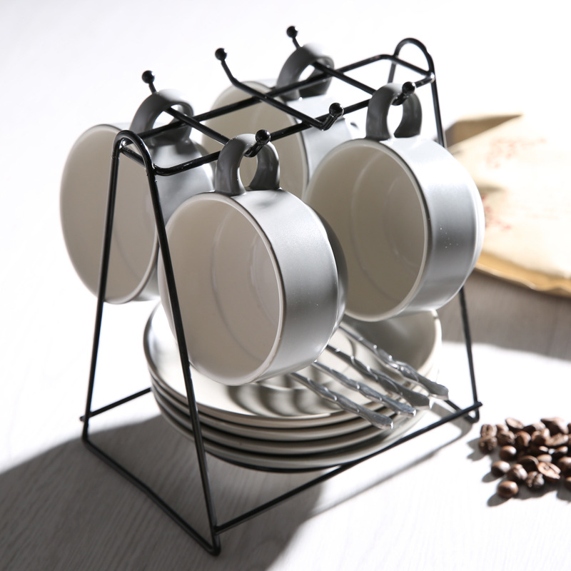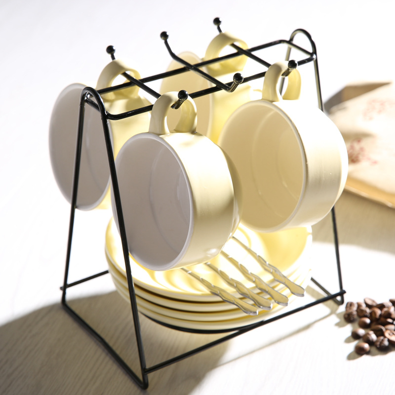 简约创意欧式陶瓷咖啡杯带碟勺套装 收纳杯架骨瓷办公马克水杯子