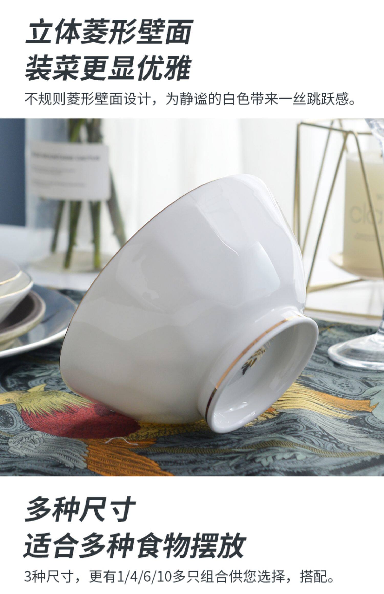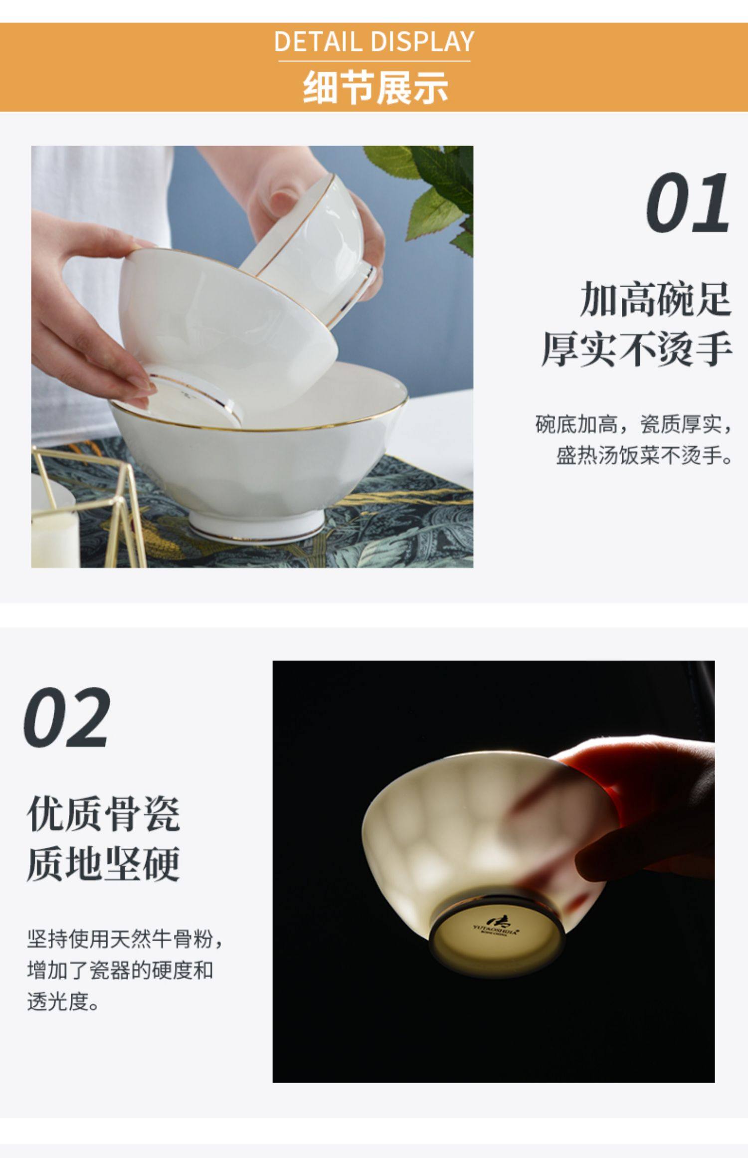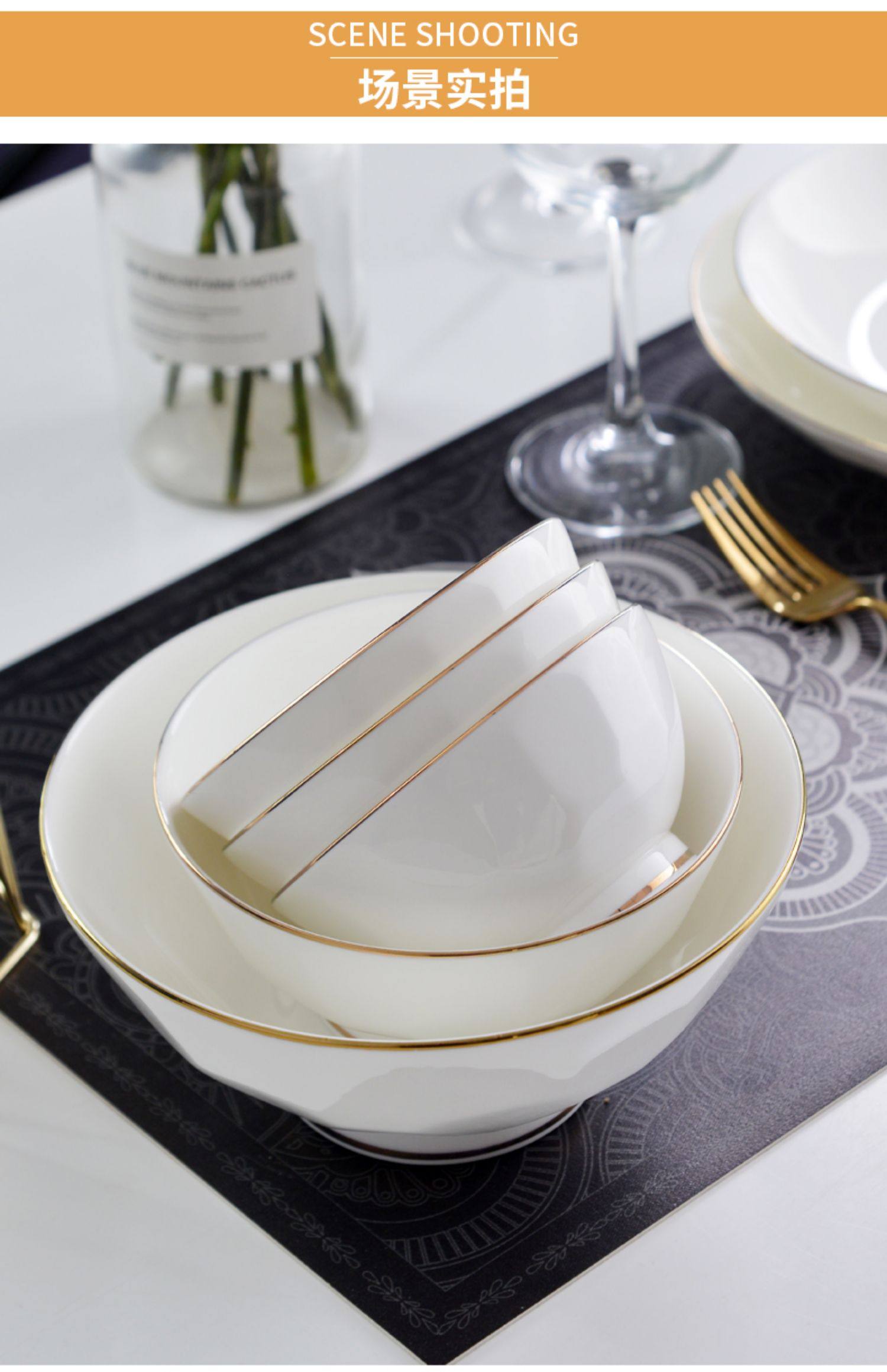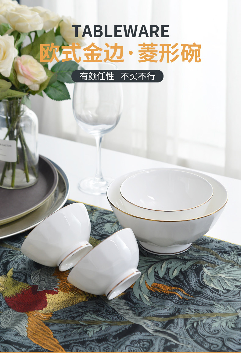 IYR7唐山骨质瓷碗欧式金边小饭碗家用小汤碗陶瓷小碗甜品碗水果沙