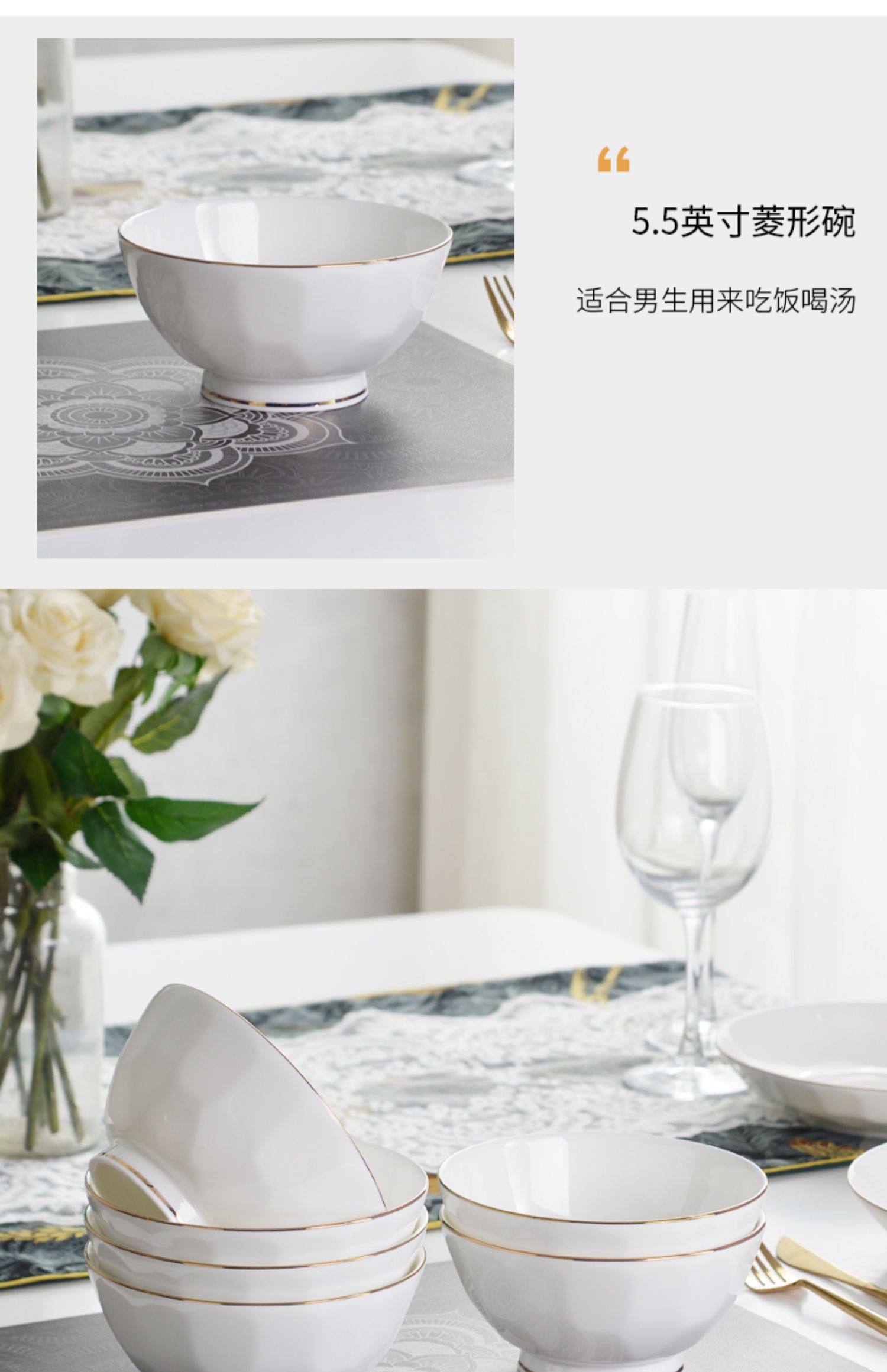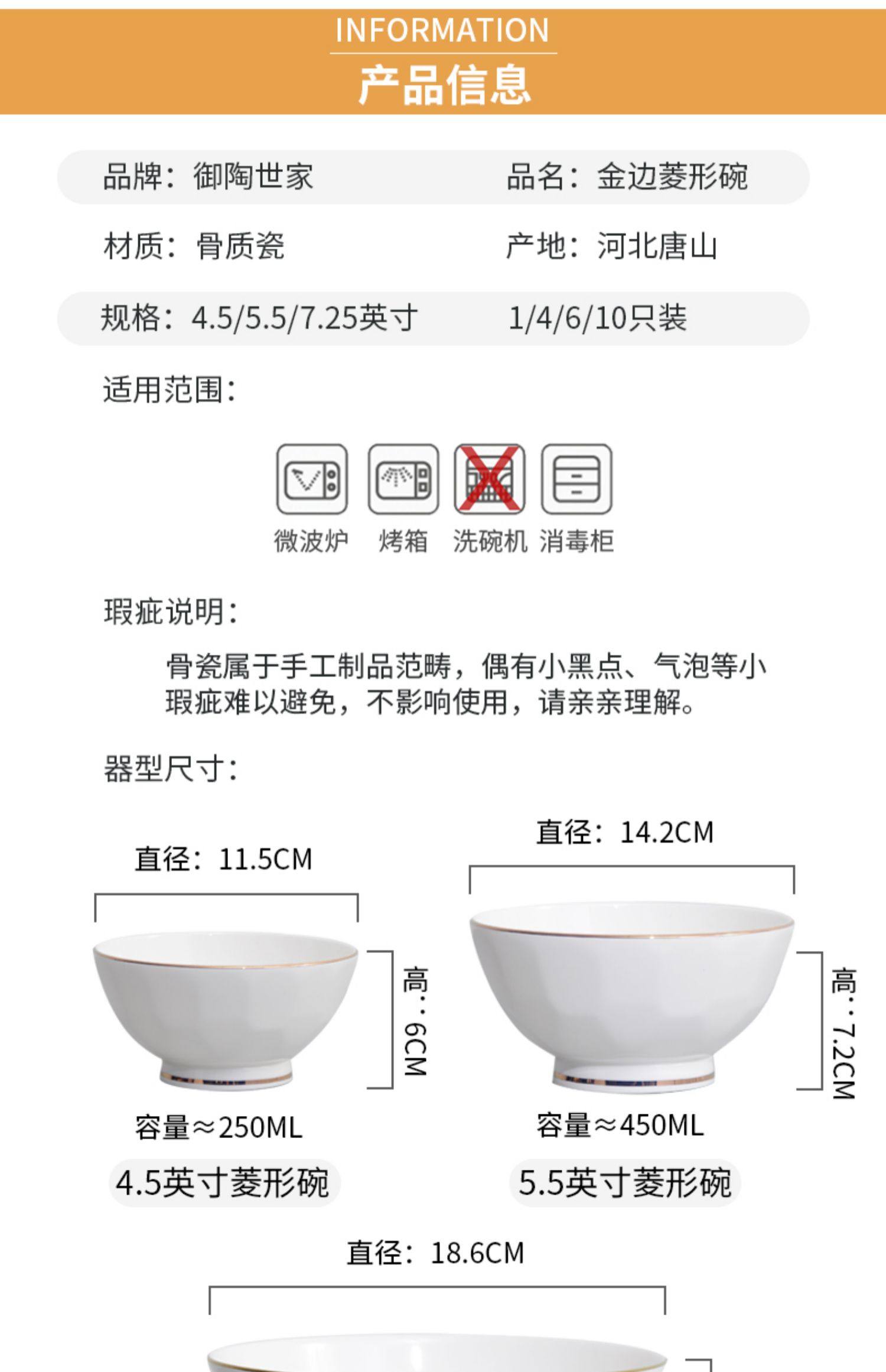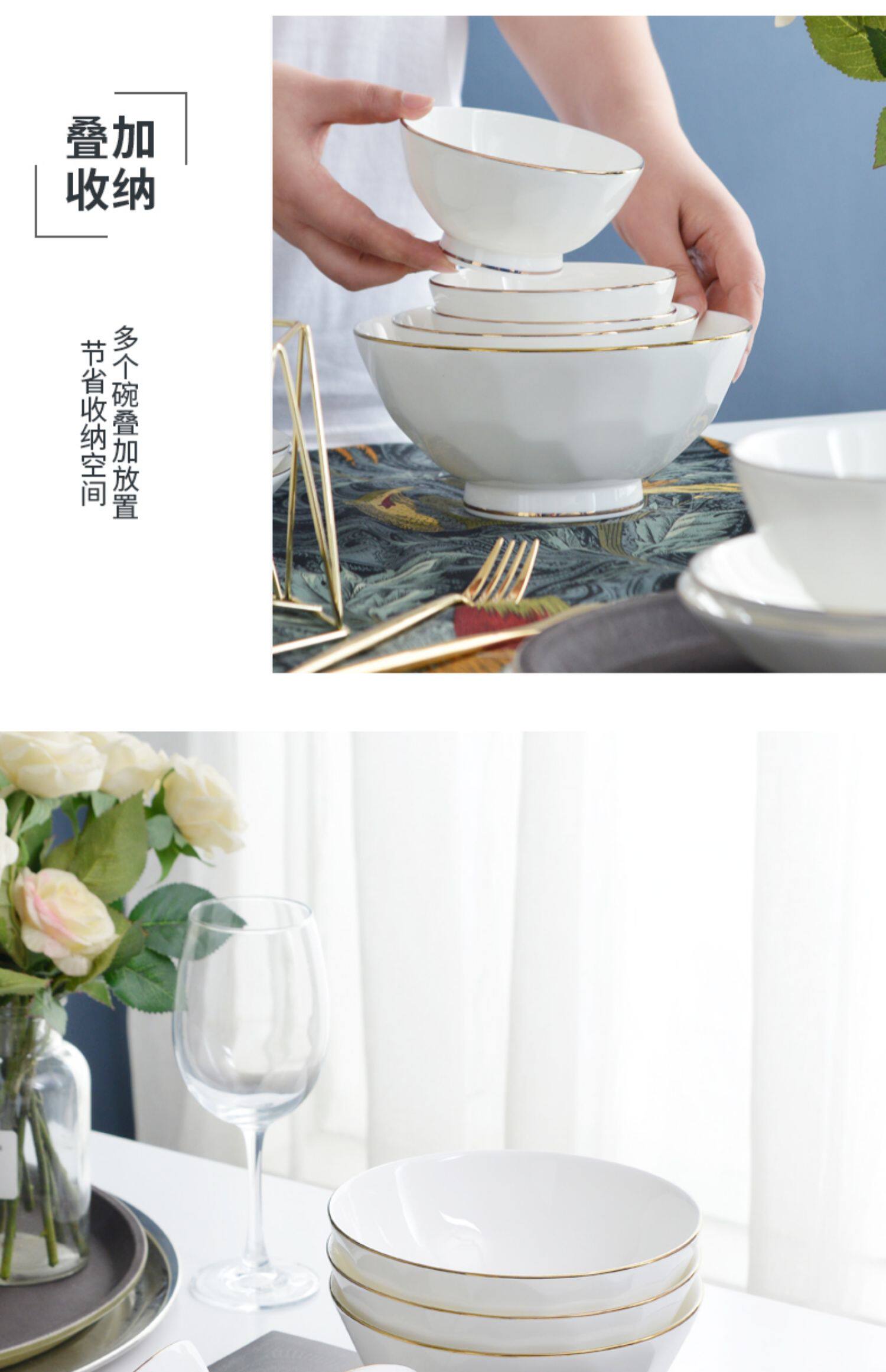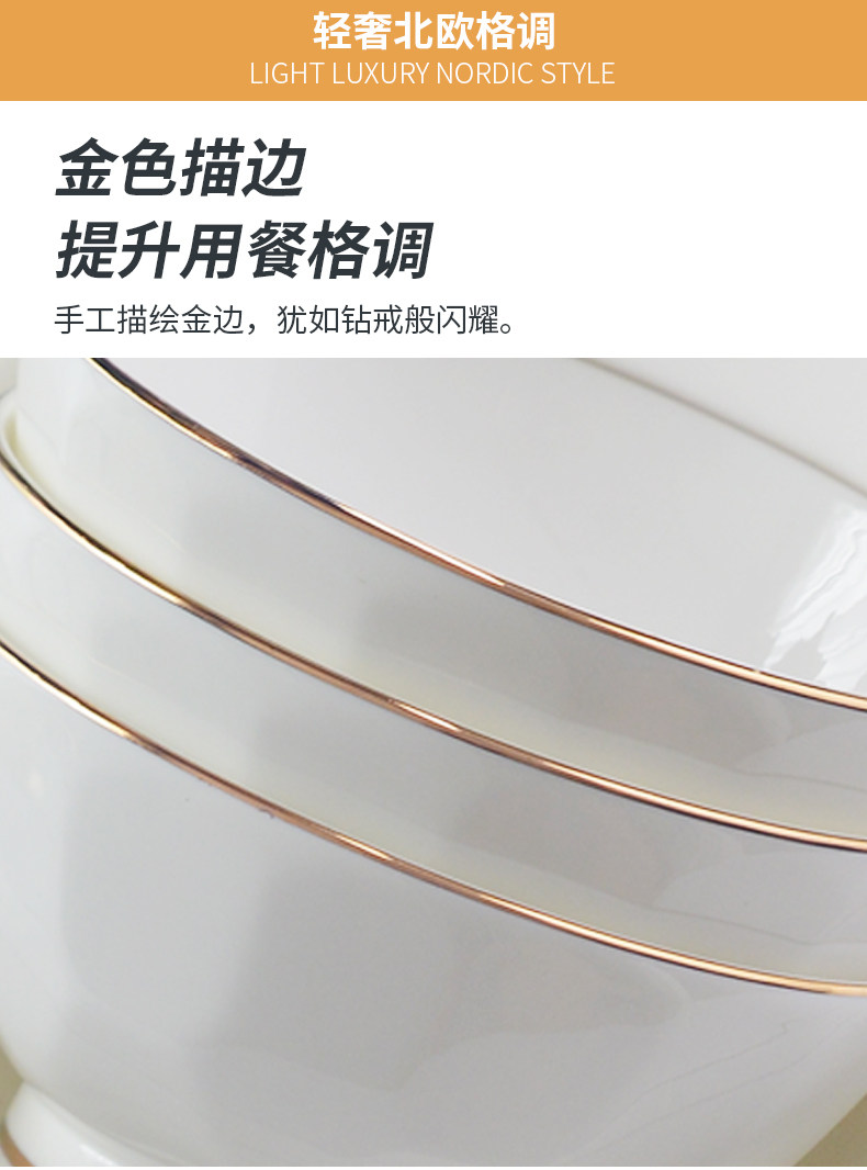 IYR7唐山骨质瓷碗欧式金边小饭碗家用小汤碗陶瓷小碗甜品碗水果沙