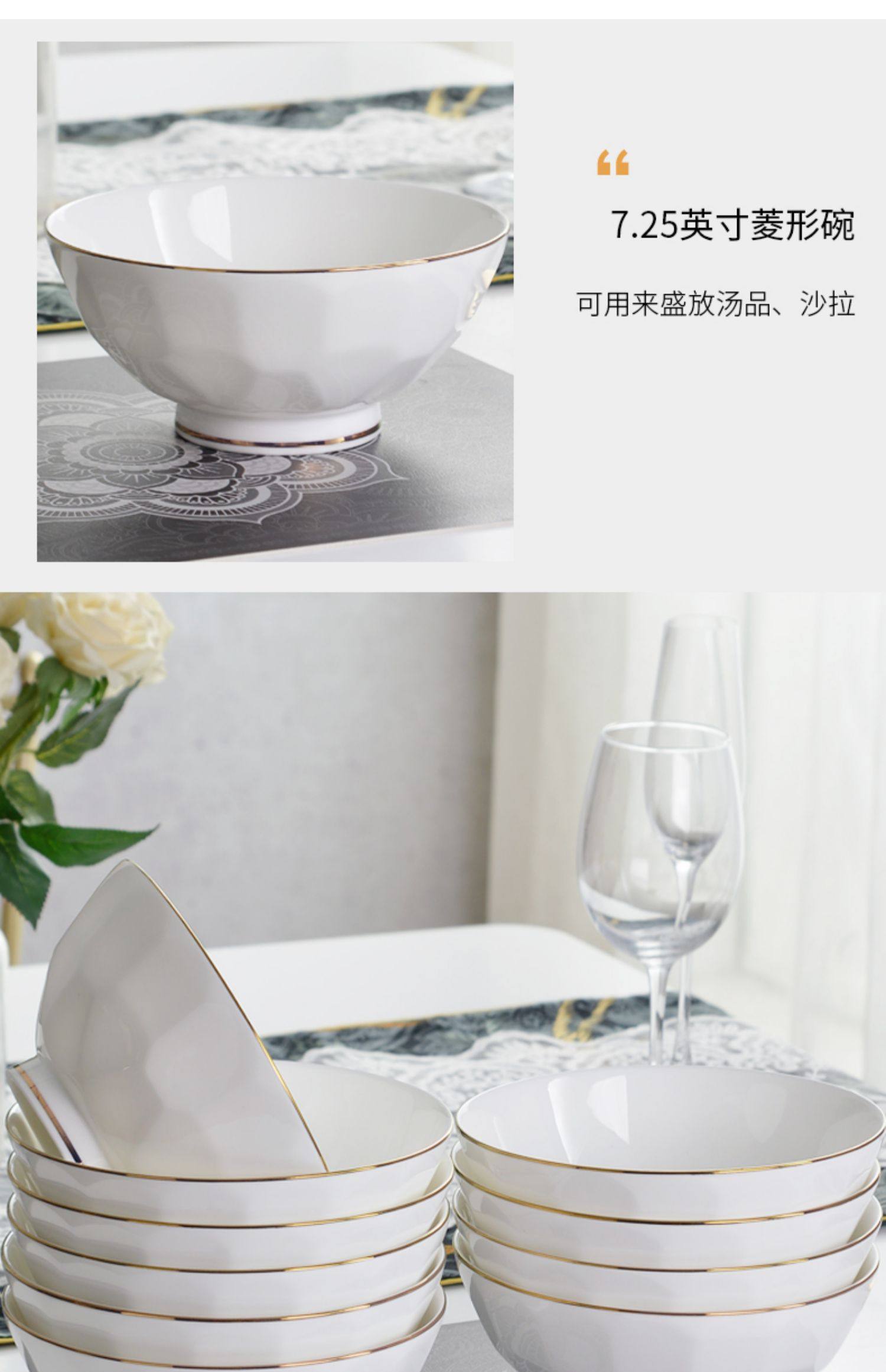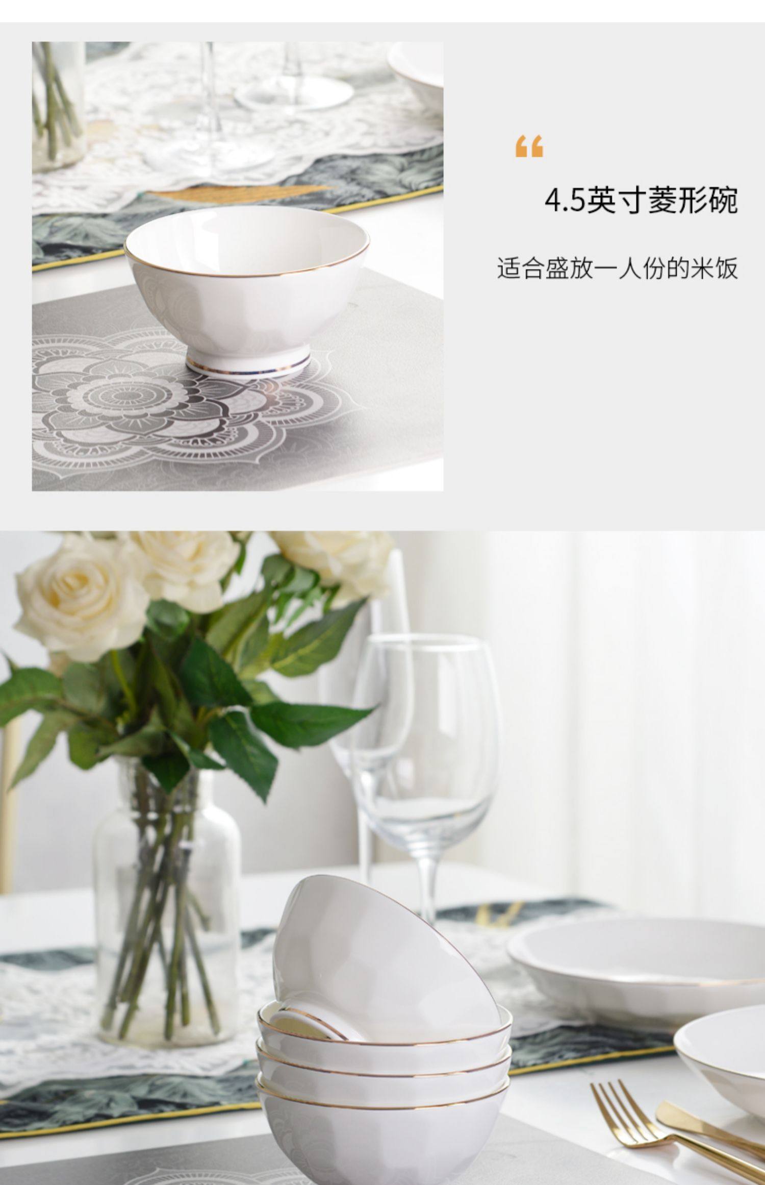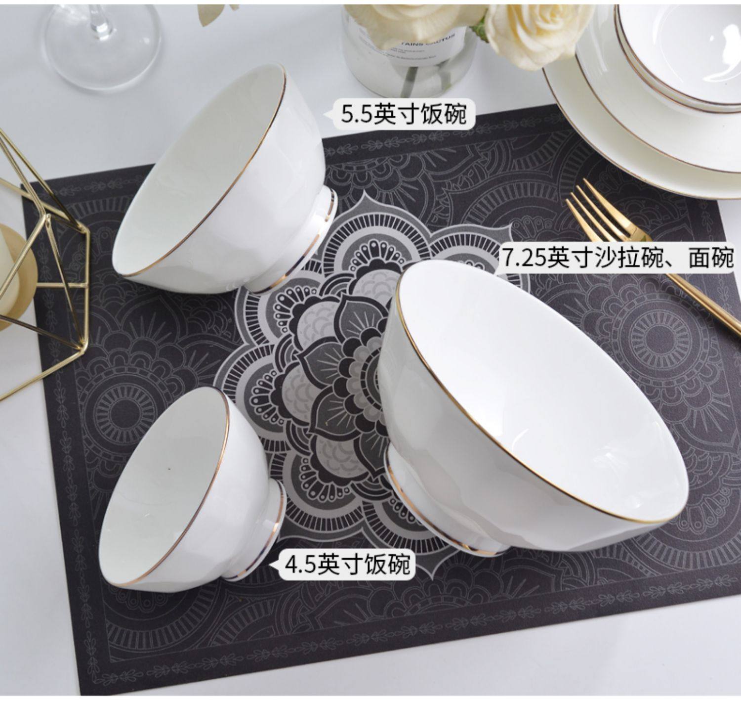 IYR7唐山骨质瓷碗欧式金边小饭碗家用小汤碗陶瓷小碗甜品碗水果沙