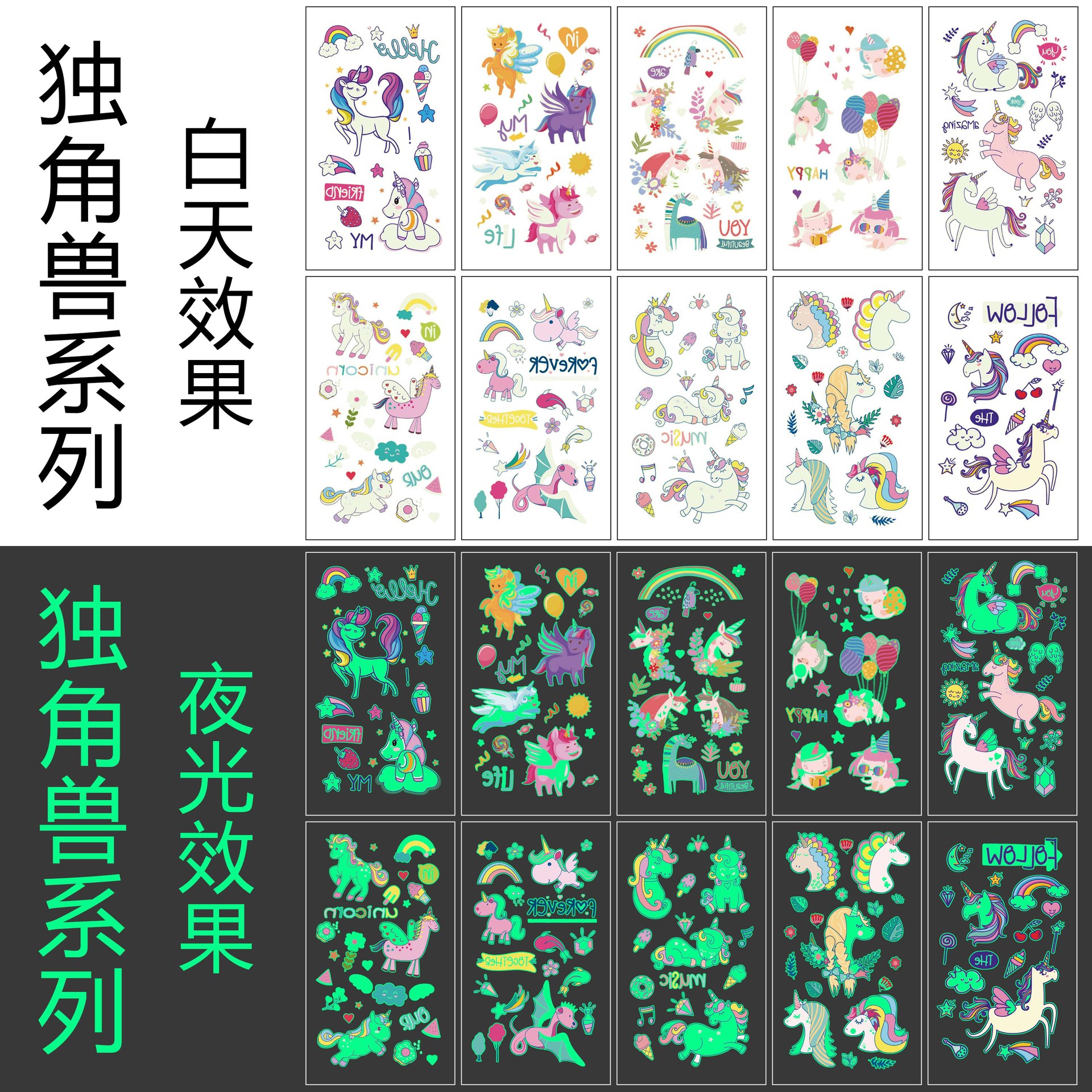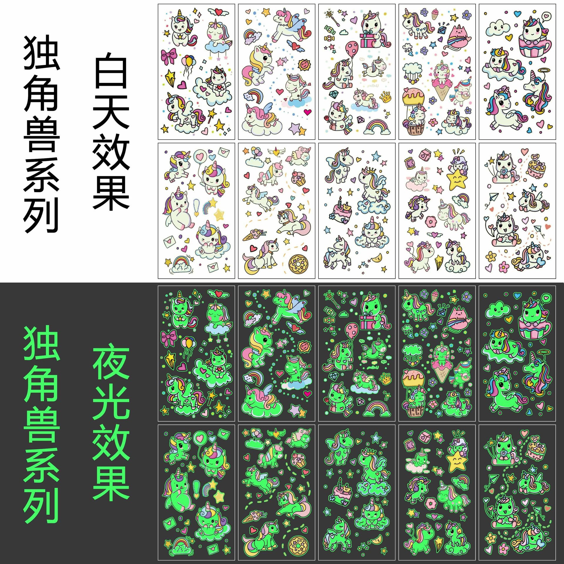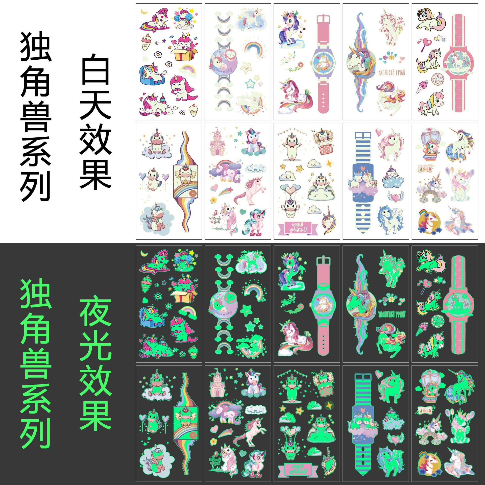 跨境货源卡通夜光纹身贴儿童可爱独角兽美人鱼恐龙临时贴纸批发