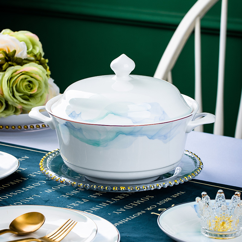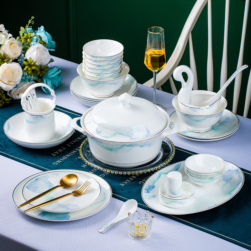 景德镇高端骨瓷餐具家用陶瓷碗饭碗碗碟套装缥缈简约碗盘批发送礼