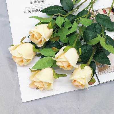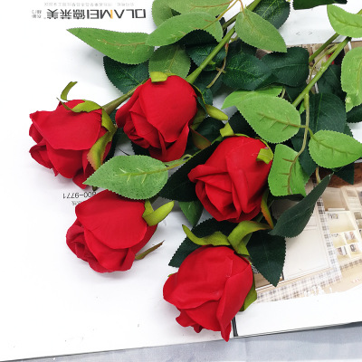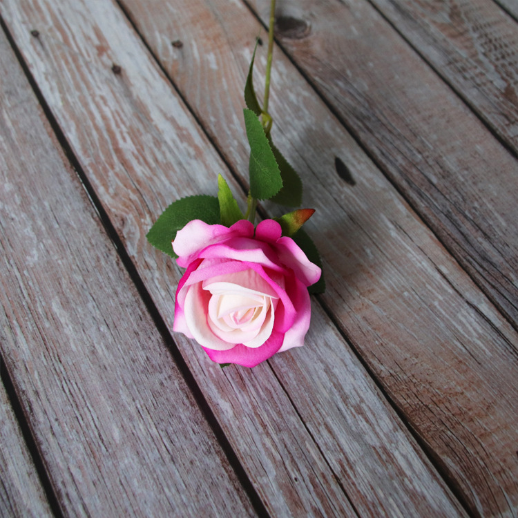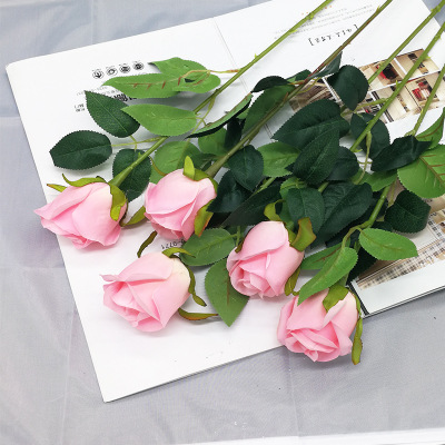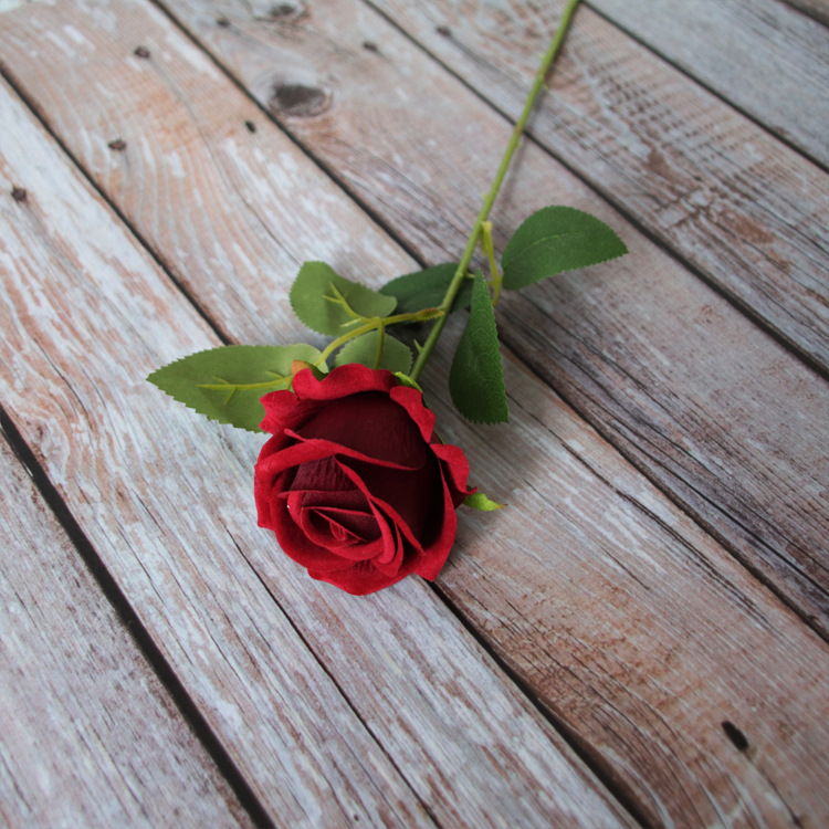 仿真玫瑰花单枝绒布玫瑰情人节礼物婚庆用花家居装饰玫瑰花