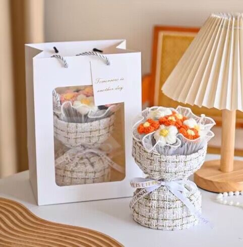 7朵毛线针织花束仿真泡芙花小香风手捧花束布艺针织花花束批发