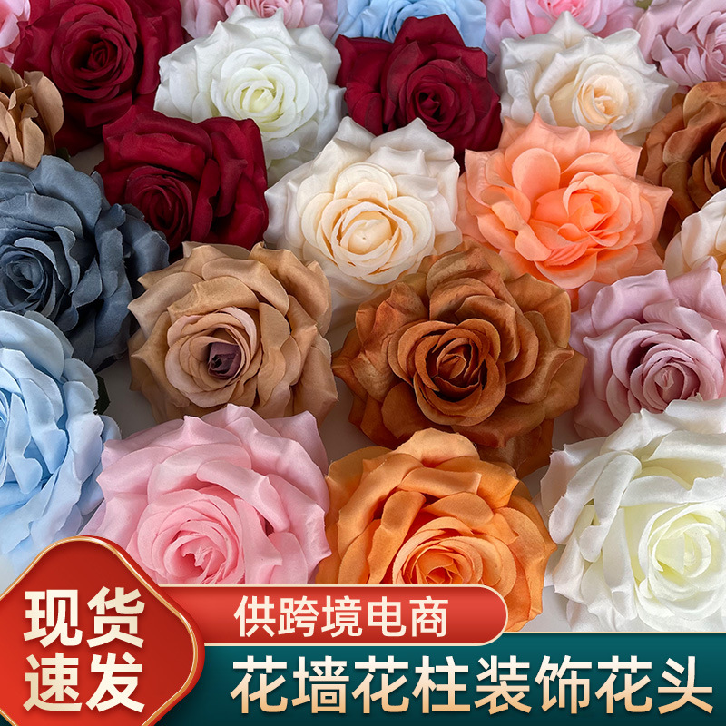 10cm仿真玫瑰花头背景墙拱门diy手工花材婚车跨境红色仿真花头