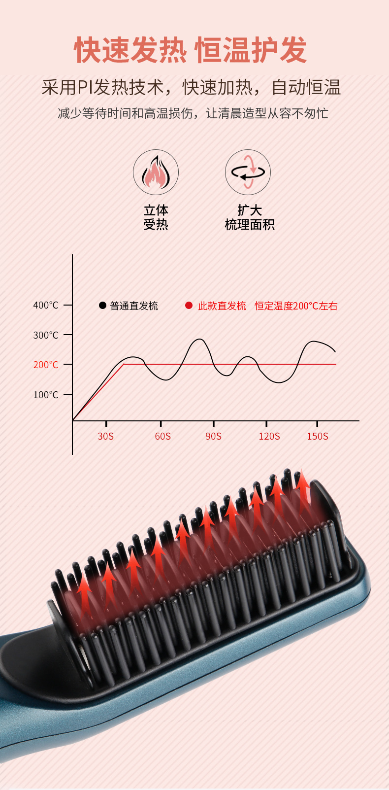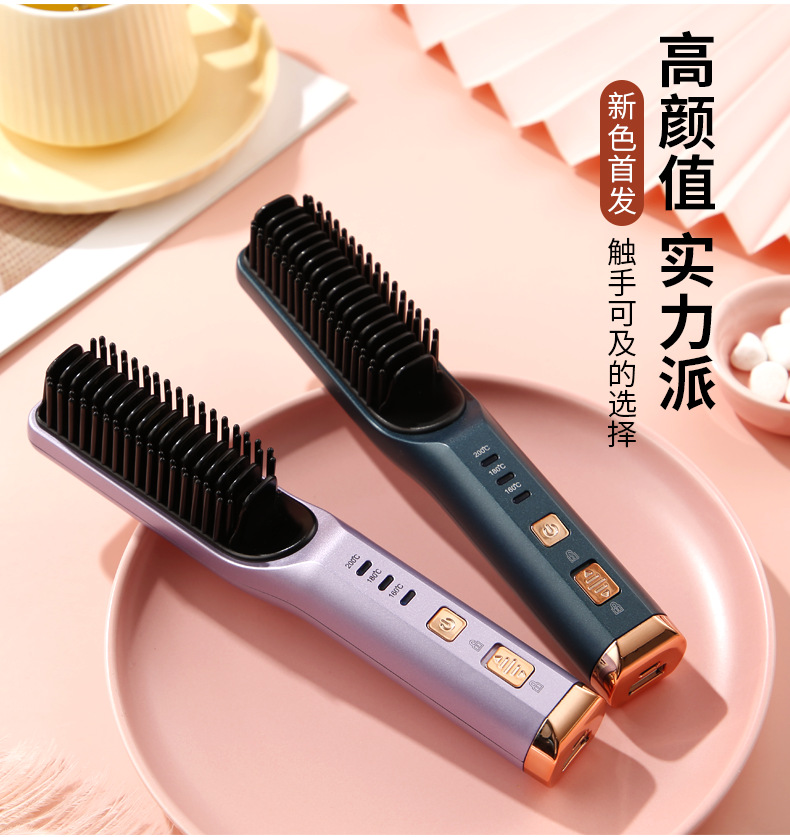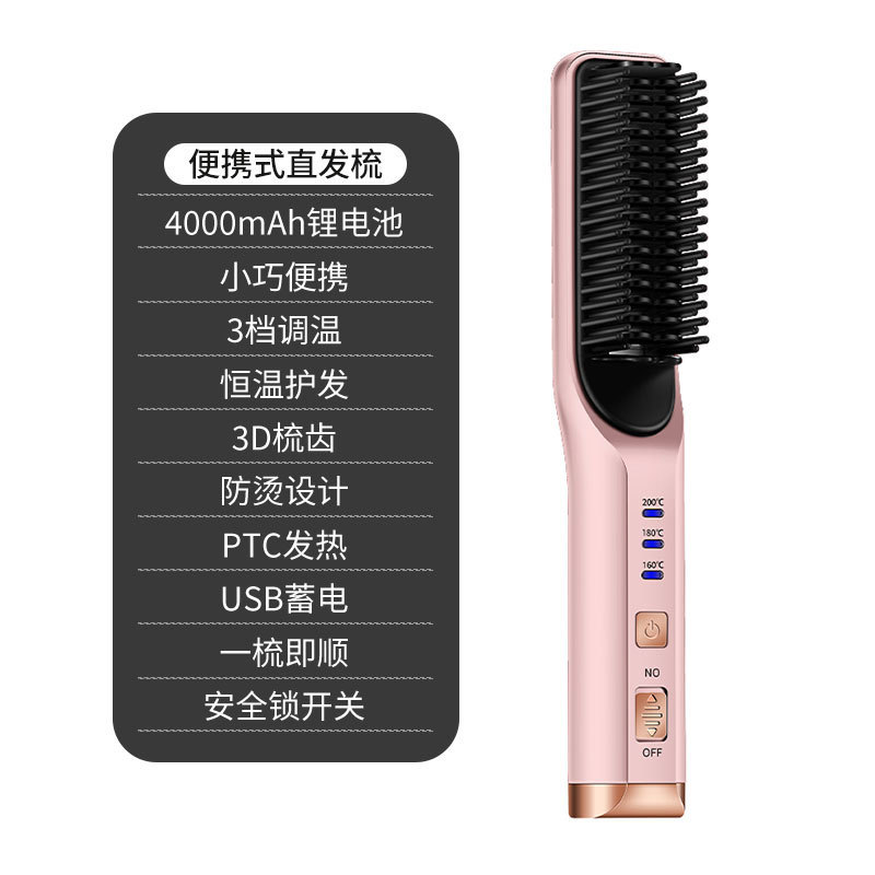 厂家直销跨境专供新款直发器usb充电直发梳迷你便携家用直发棒