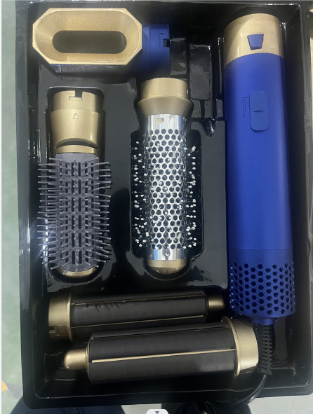 亚马逊跨境卷发棒五合一热风梳吹风梳卷发器直发梳吹风机自动吸发