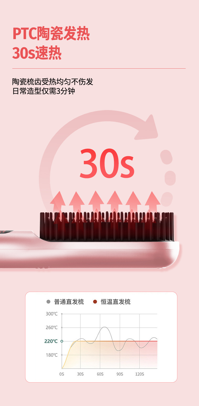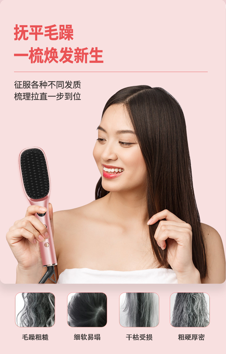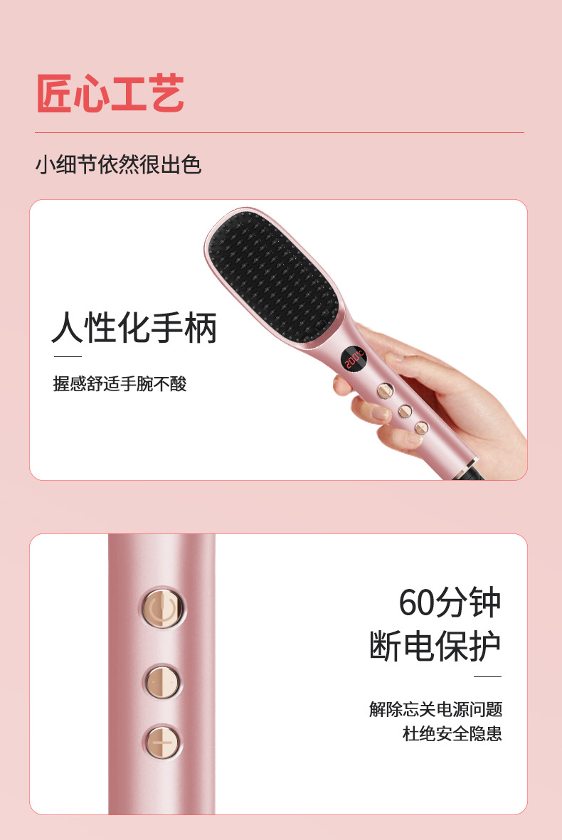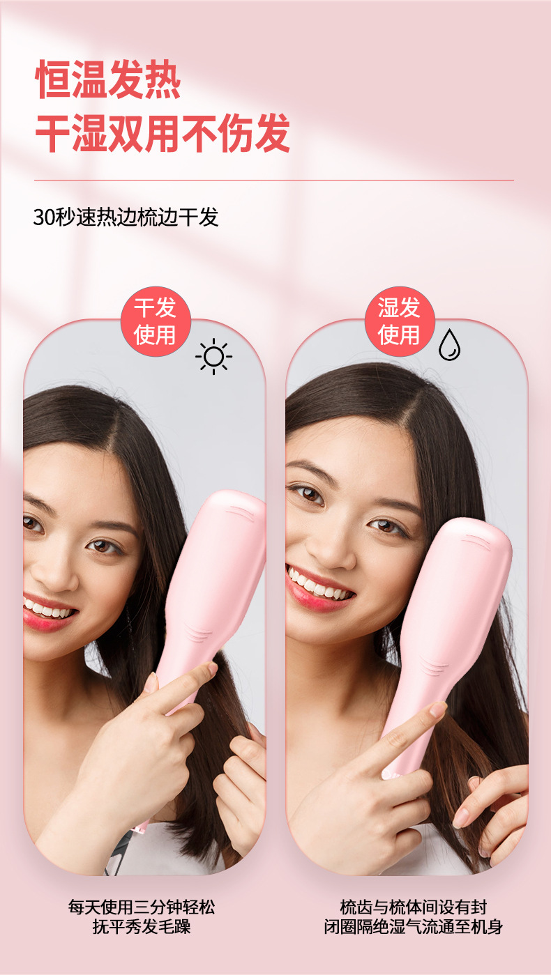 新款等离子不伤发家用造型梳子护发拉直蓬松神器液晶显示直发梳