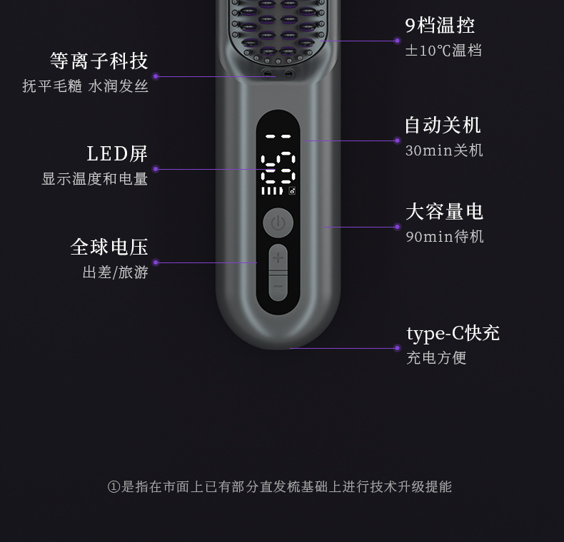 Lowra rouge罗拉无线直发梳负离子不伤发便携电梳子直板夹防静电