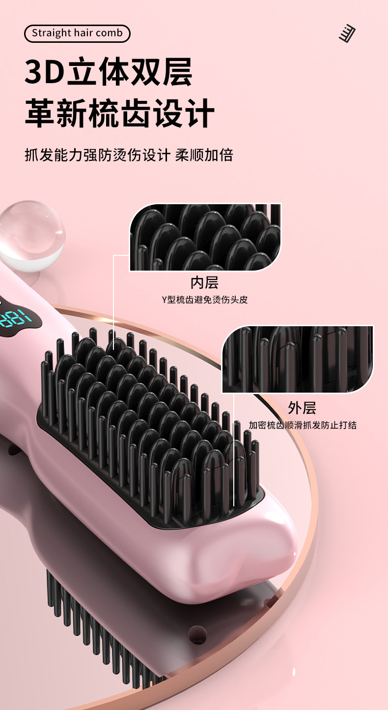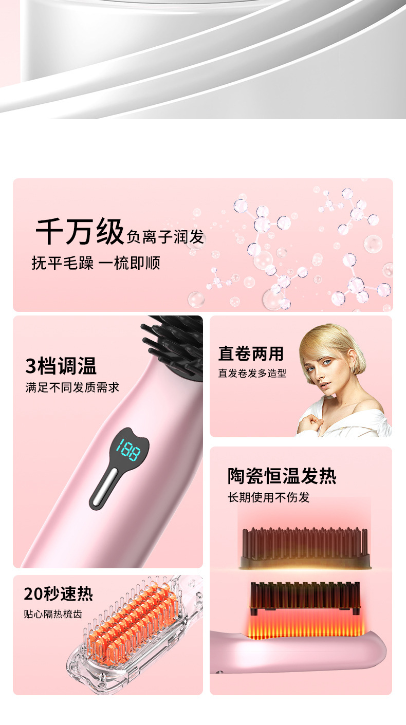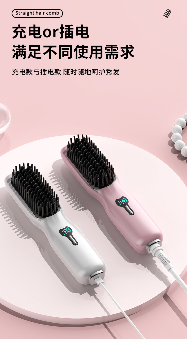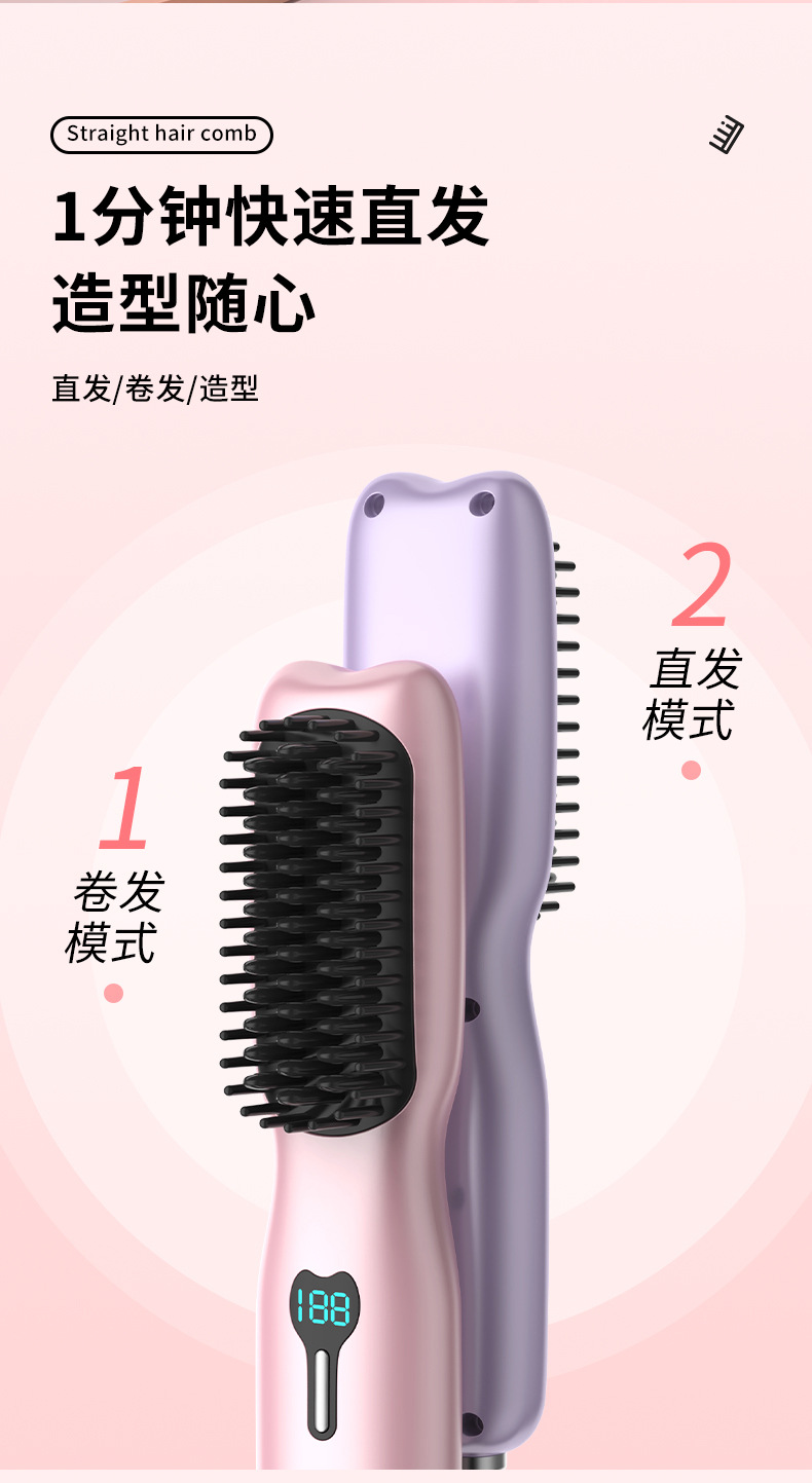 小型便携直发梳负离子不伤发 家用女生电卷发棒两用直发神器批发