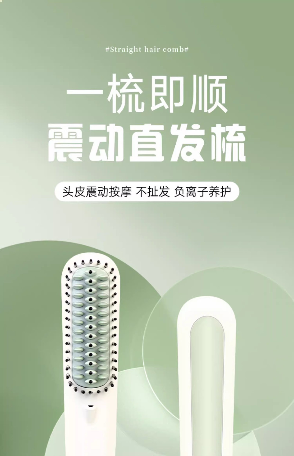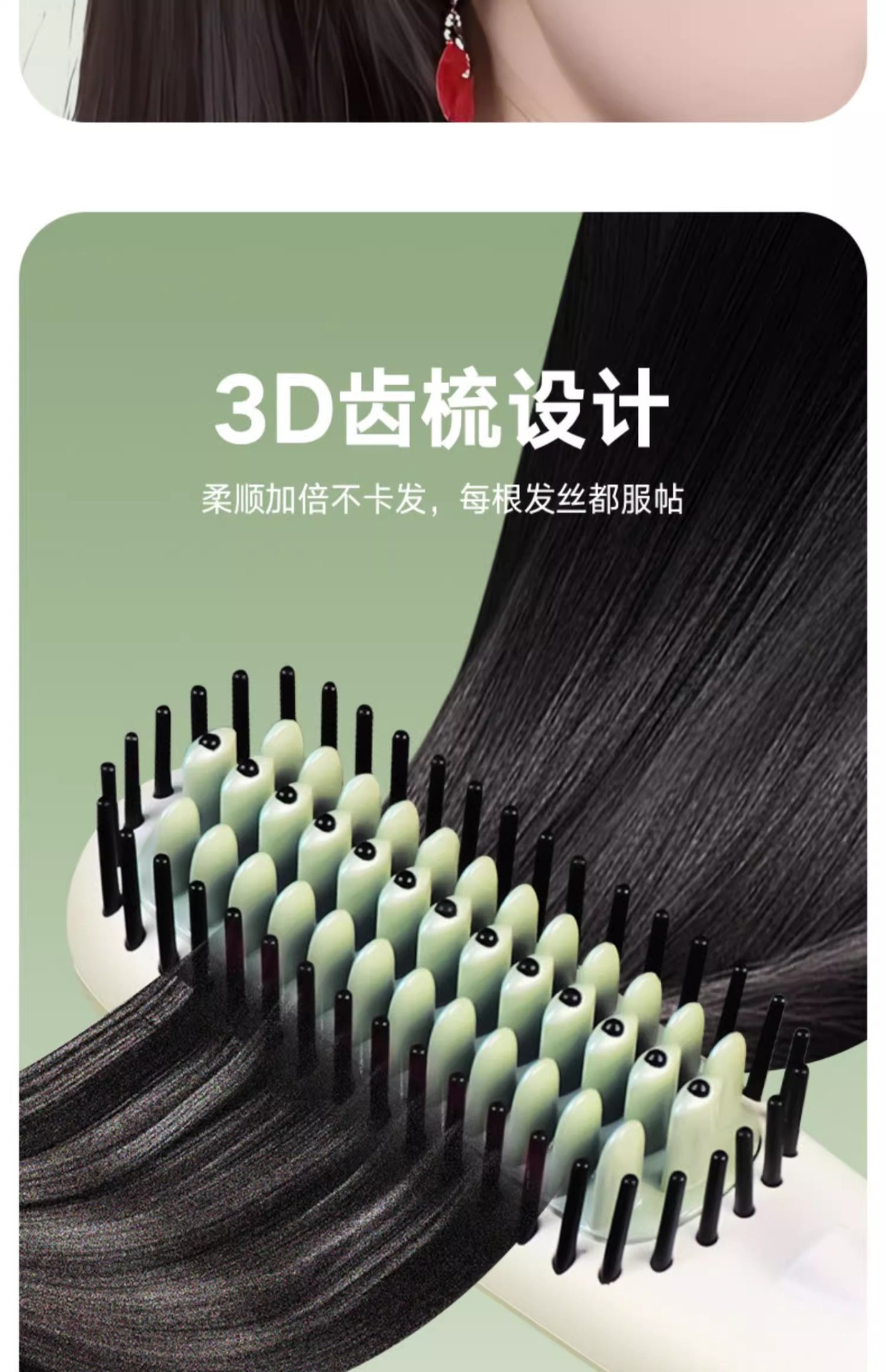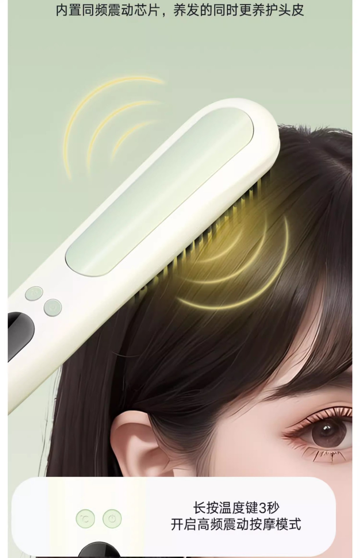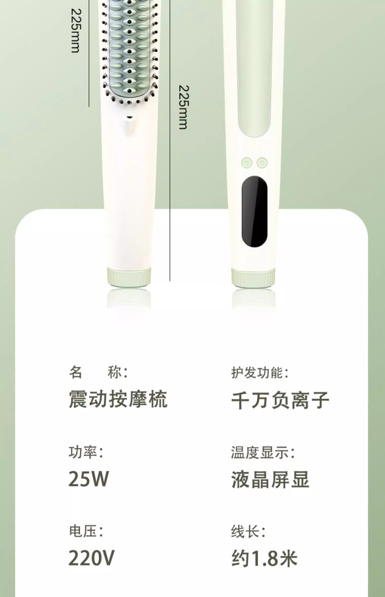 迷你便携震动按摩梳负离子直发梳三档控温懒人卷发棒直发器