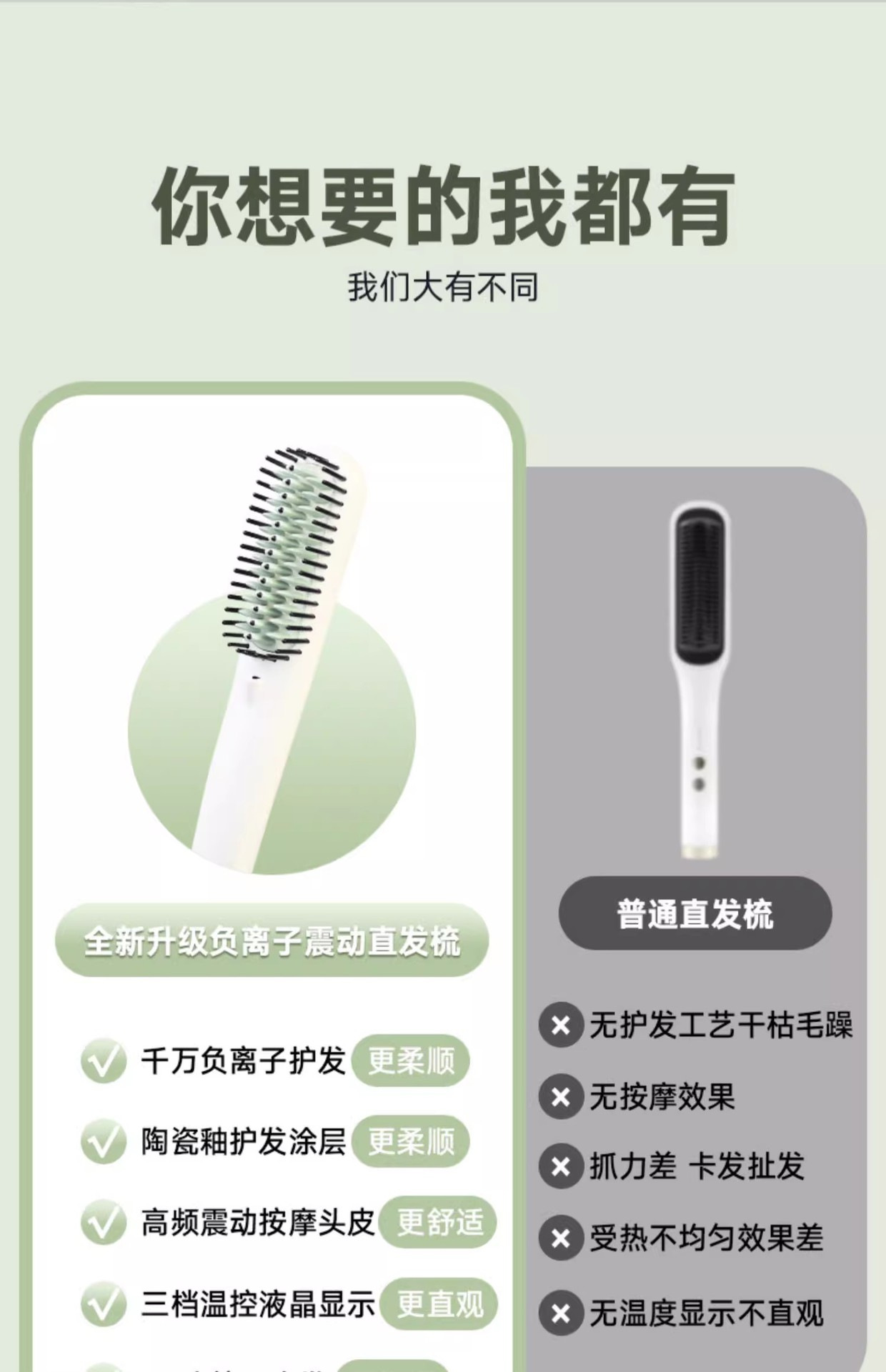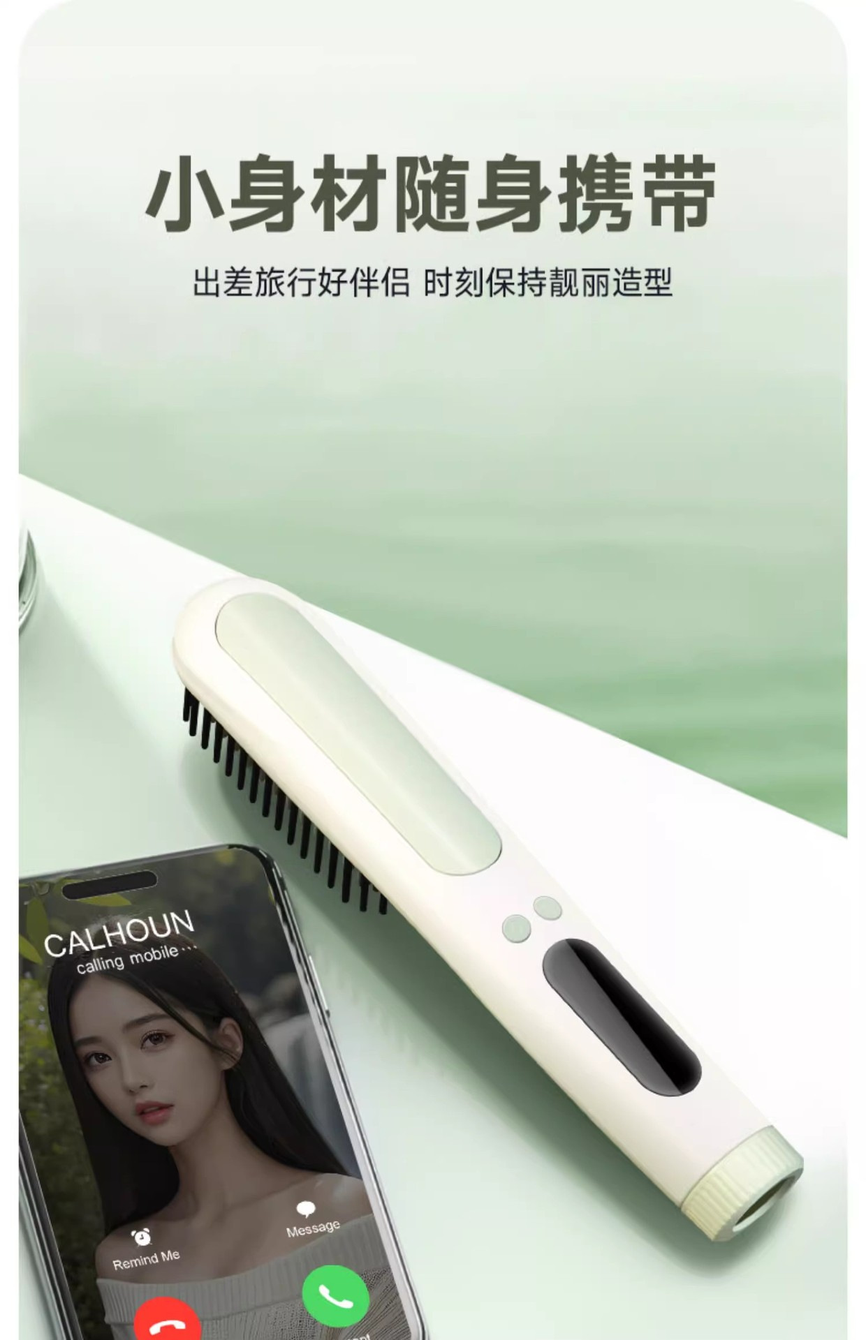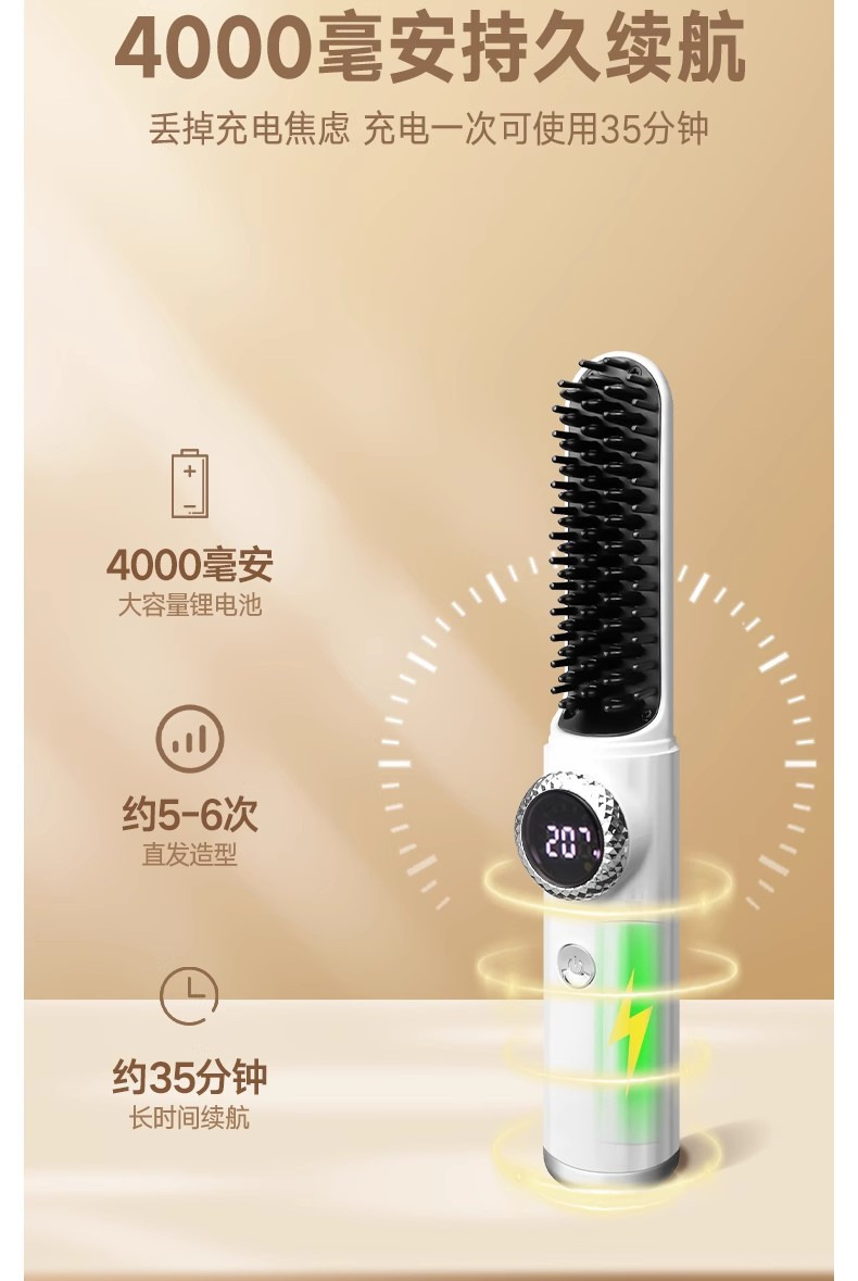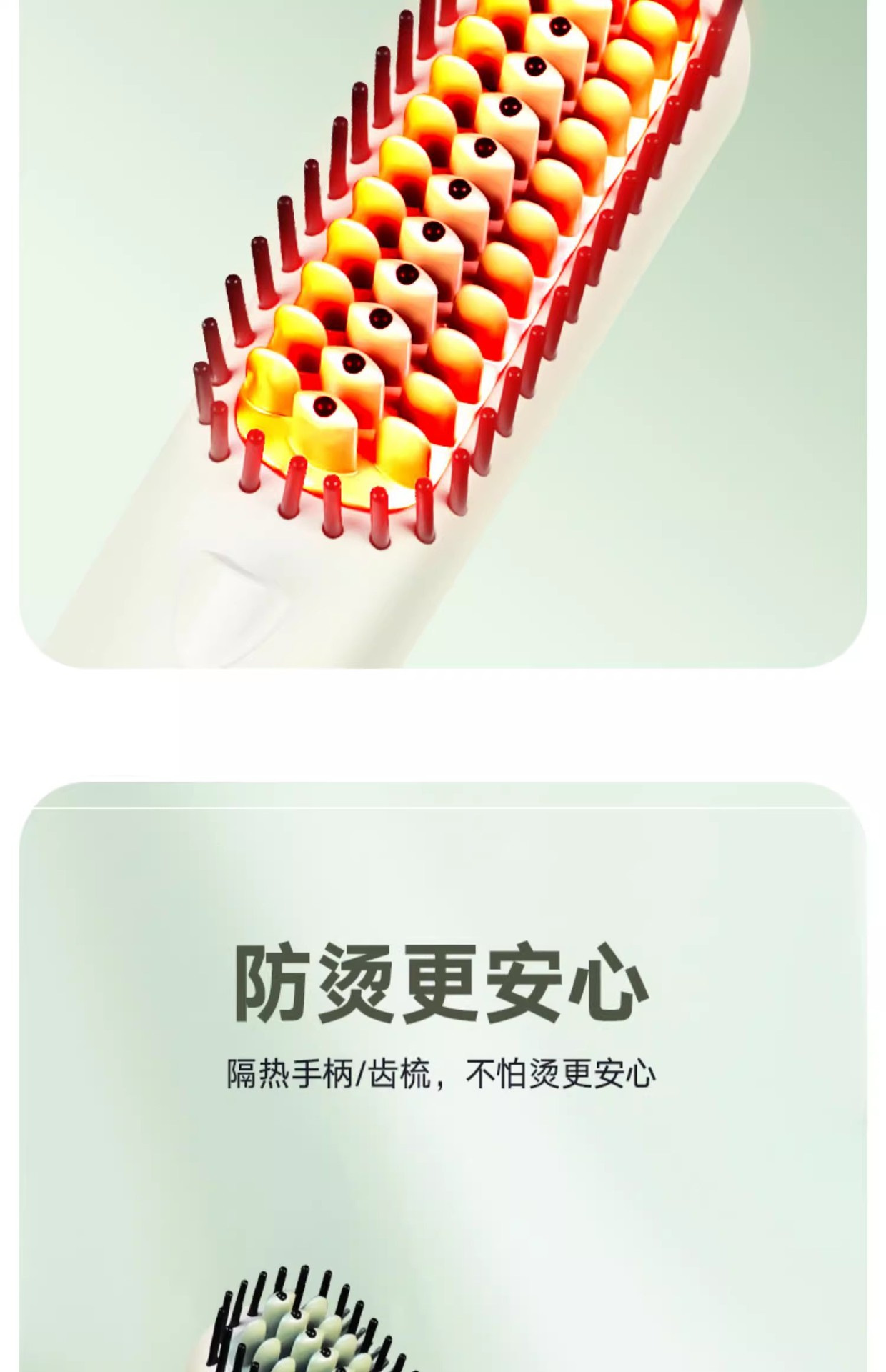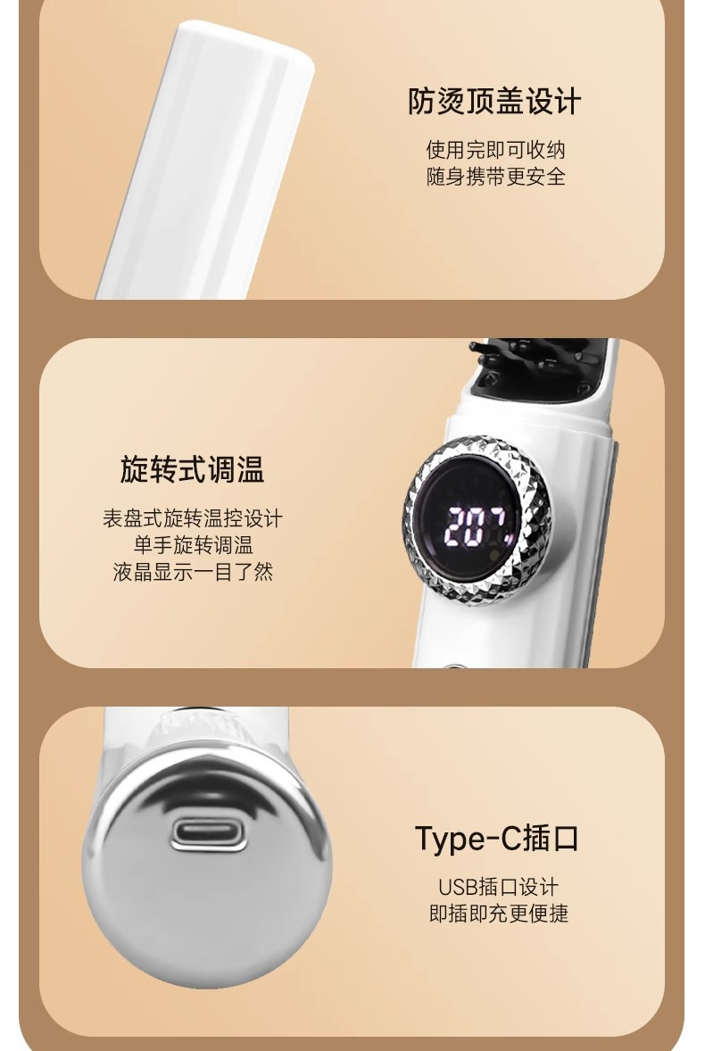 迷你便携震动按摩梳负离子直发梳三档控温懒人卷发棒直发器