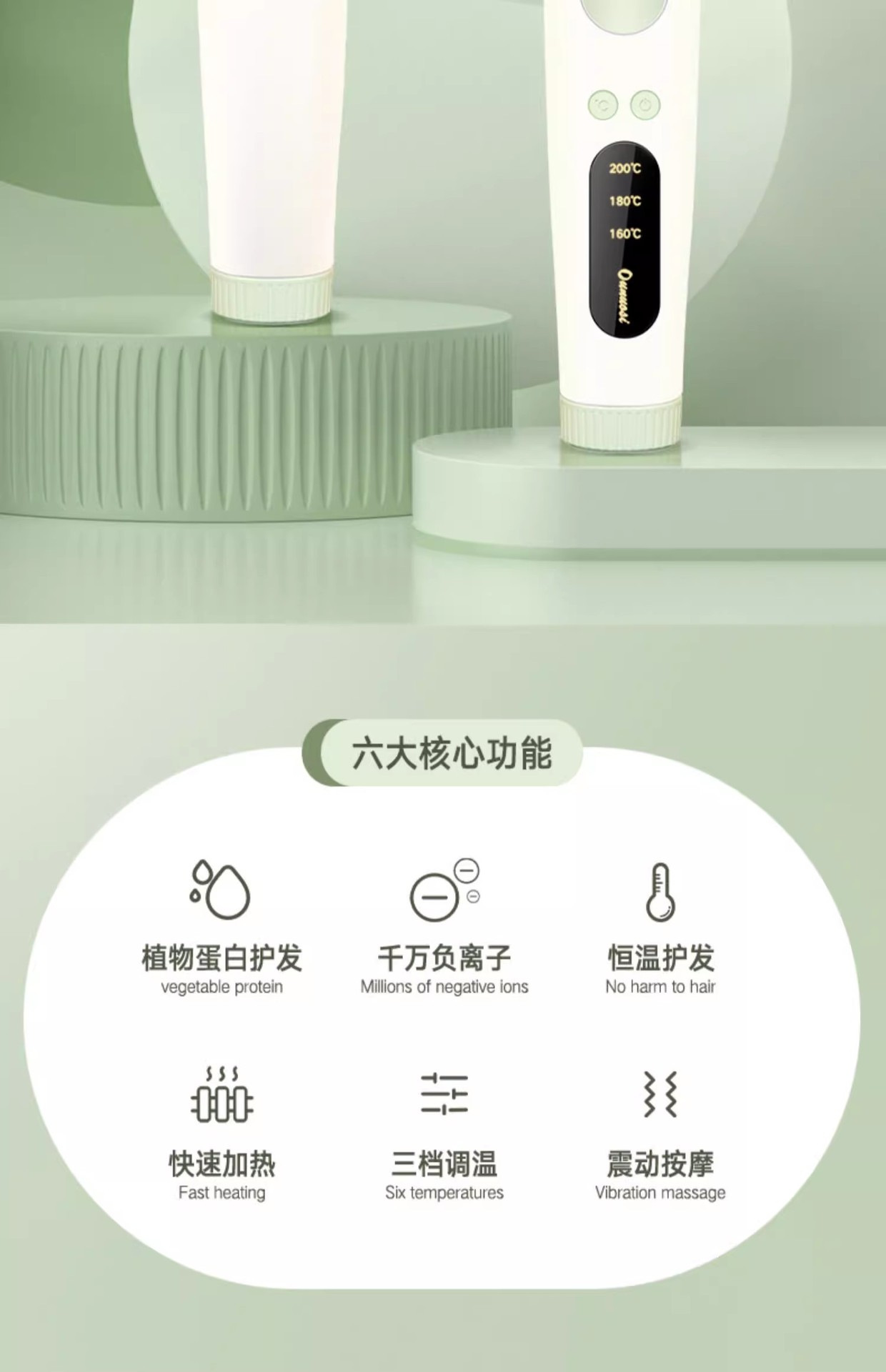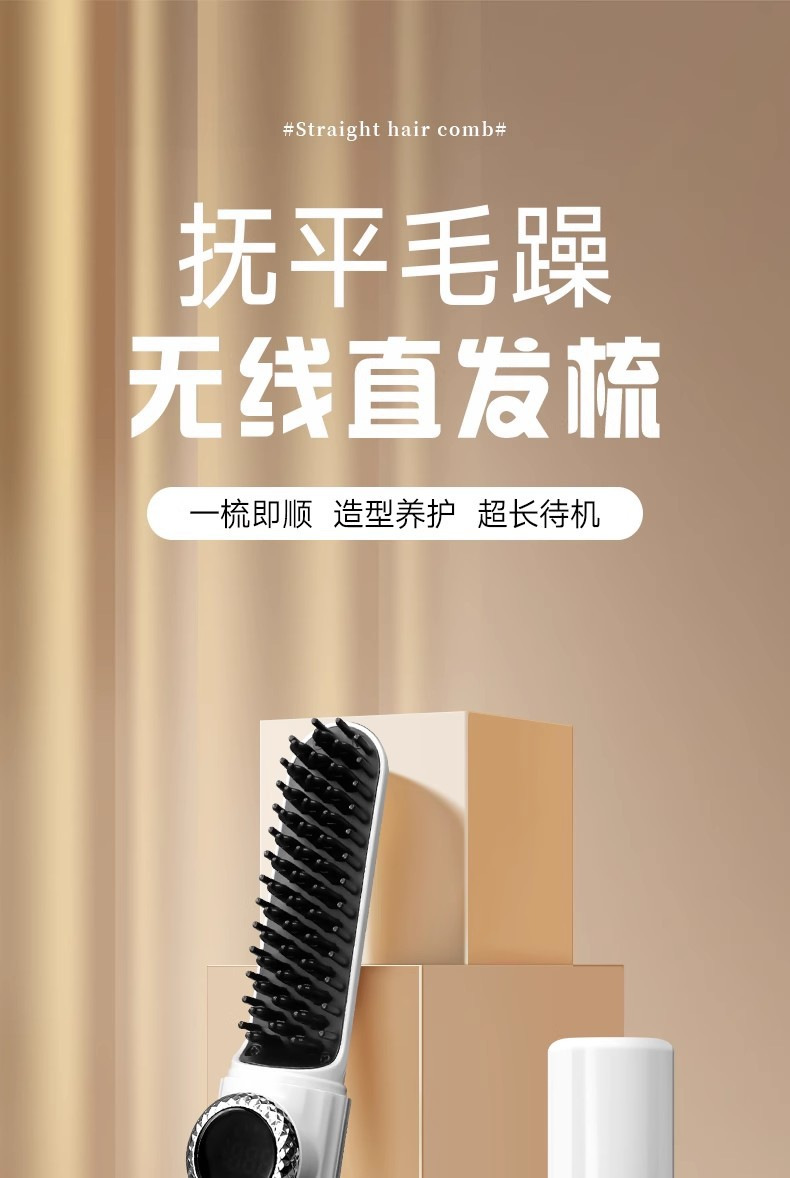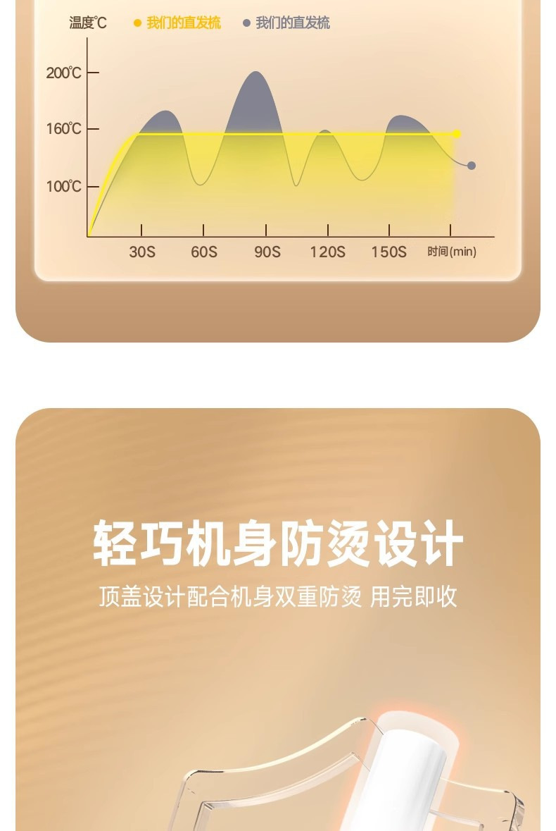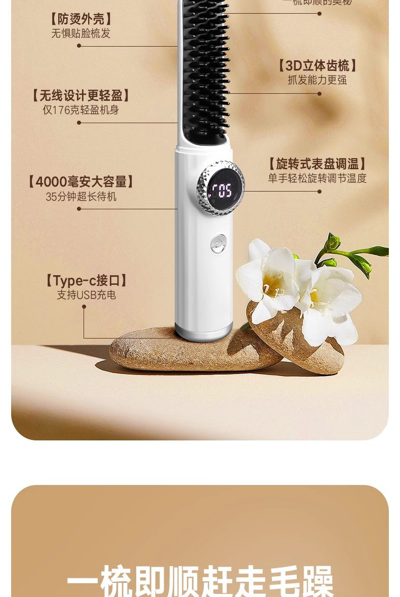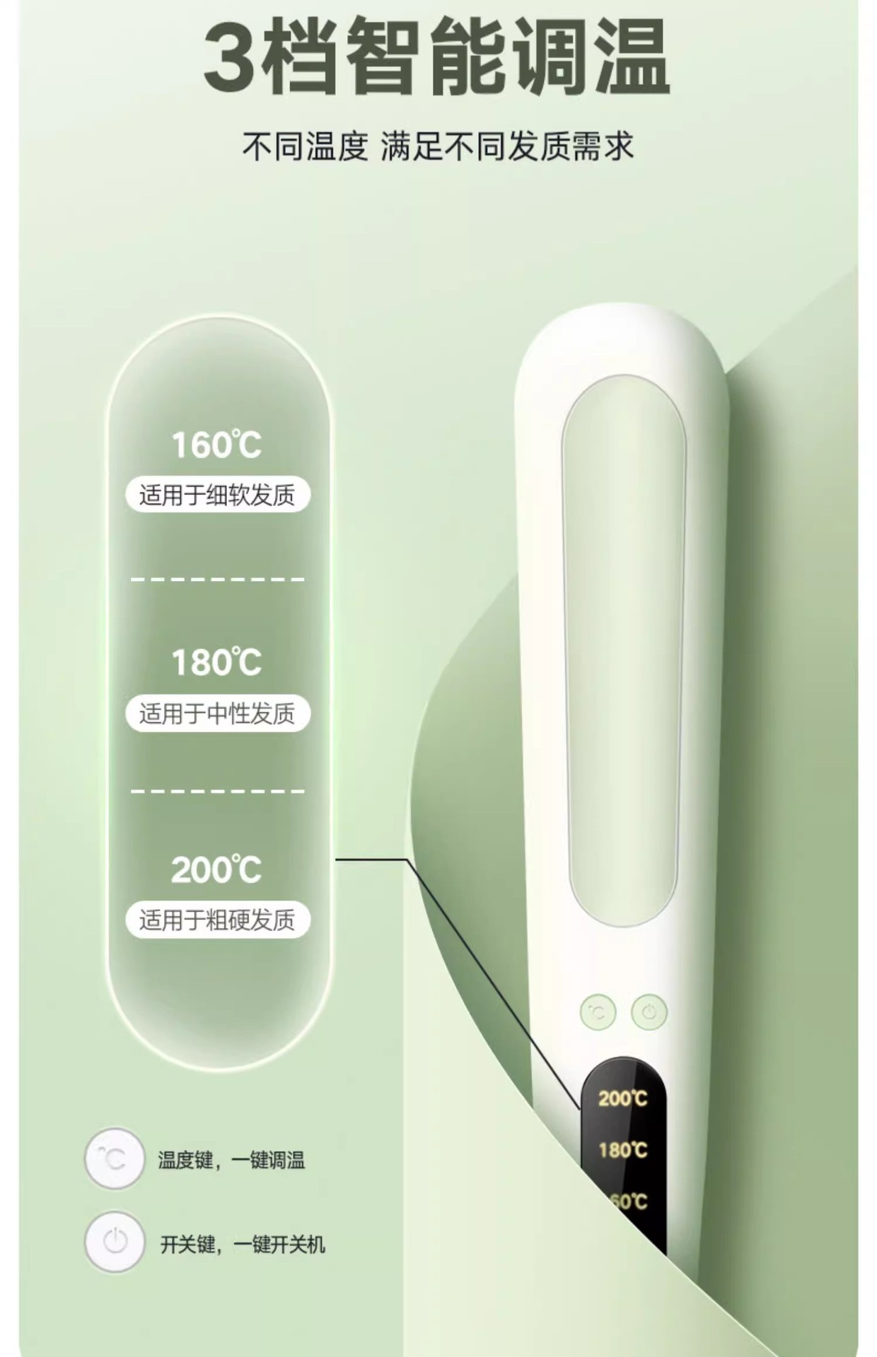 迷你便携震动按摩梳负离子直发梳三档控温懒人卷发棒直发器