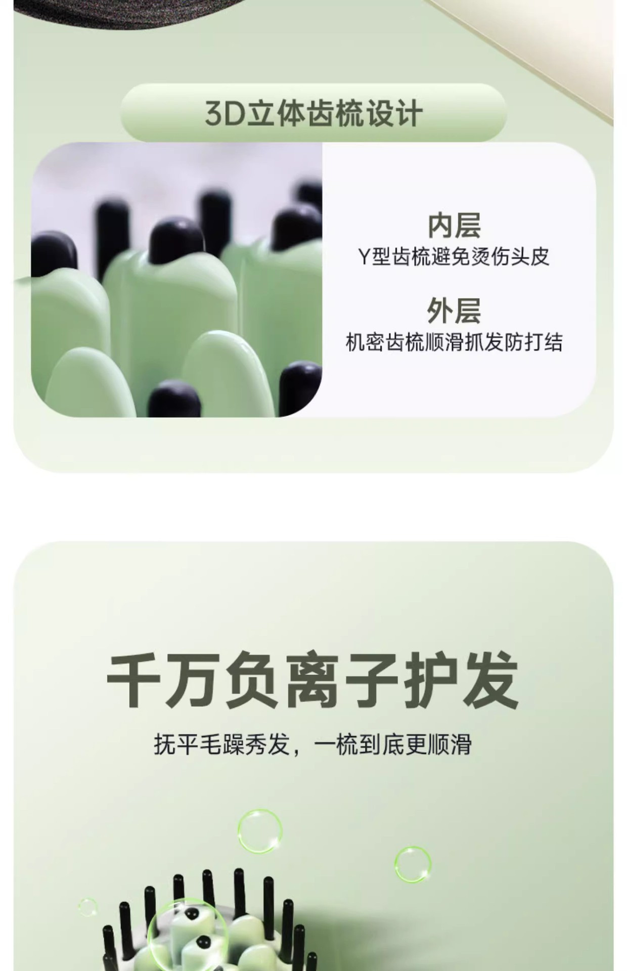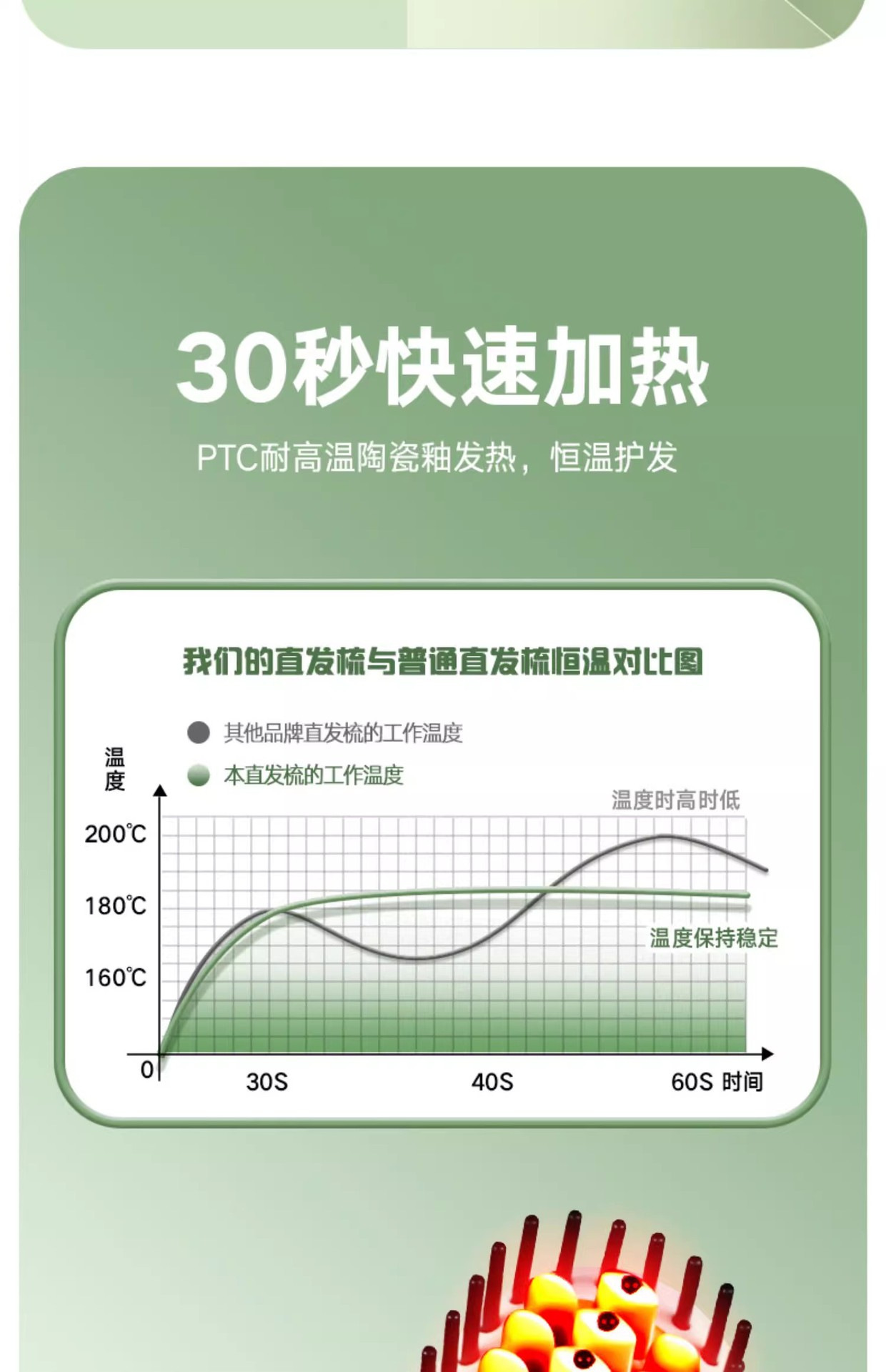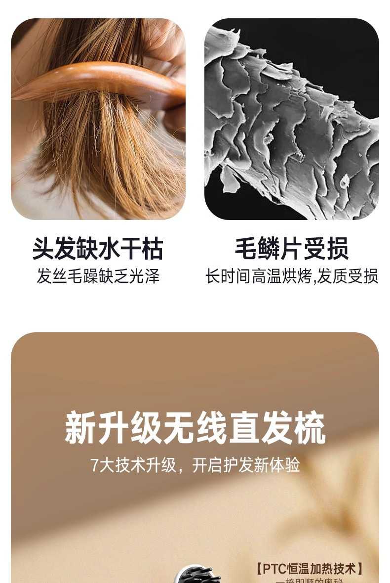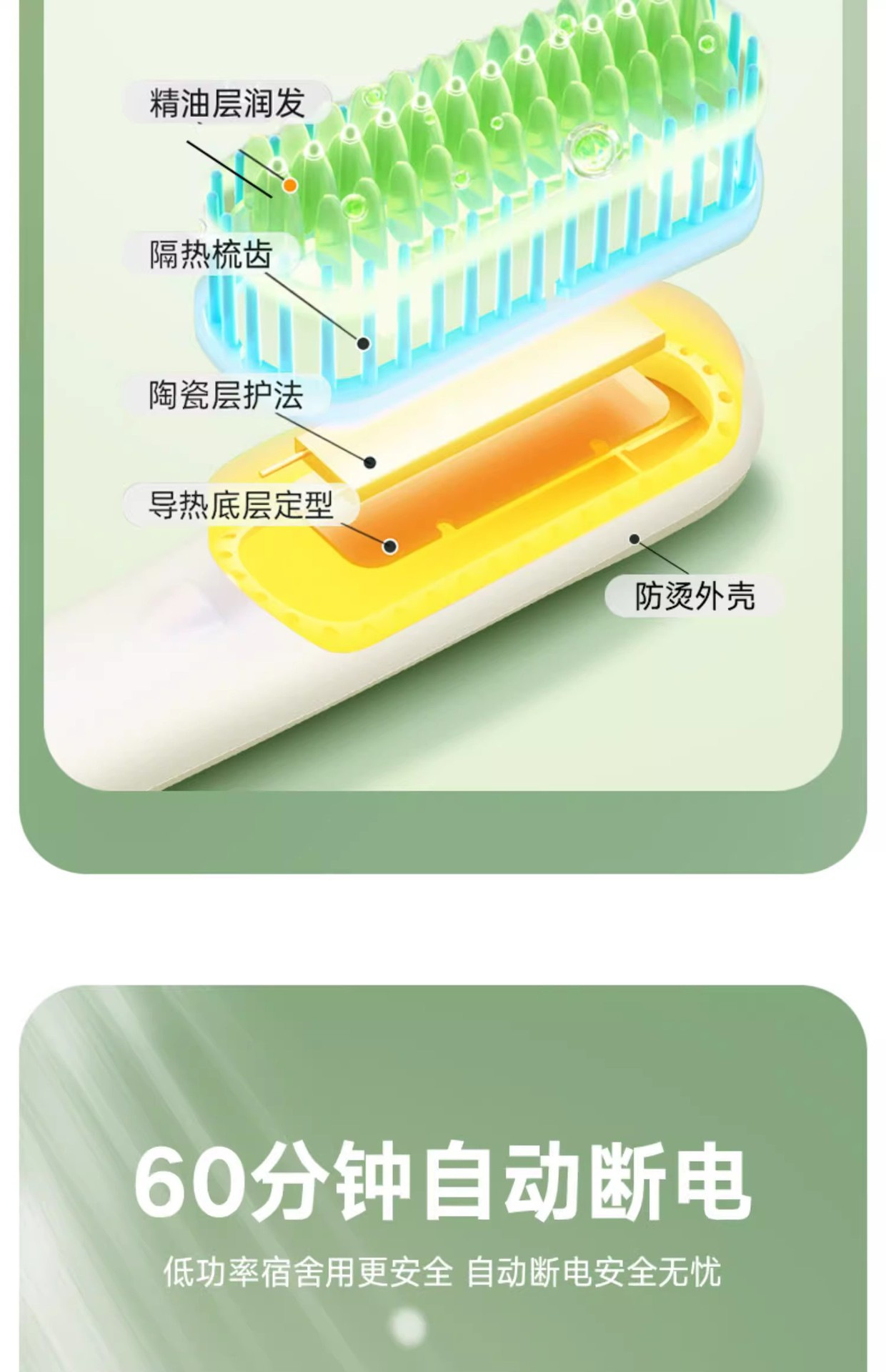 迷你便携震动按摩梳负离子直发梳三档控温懒人卷发棒直发器